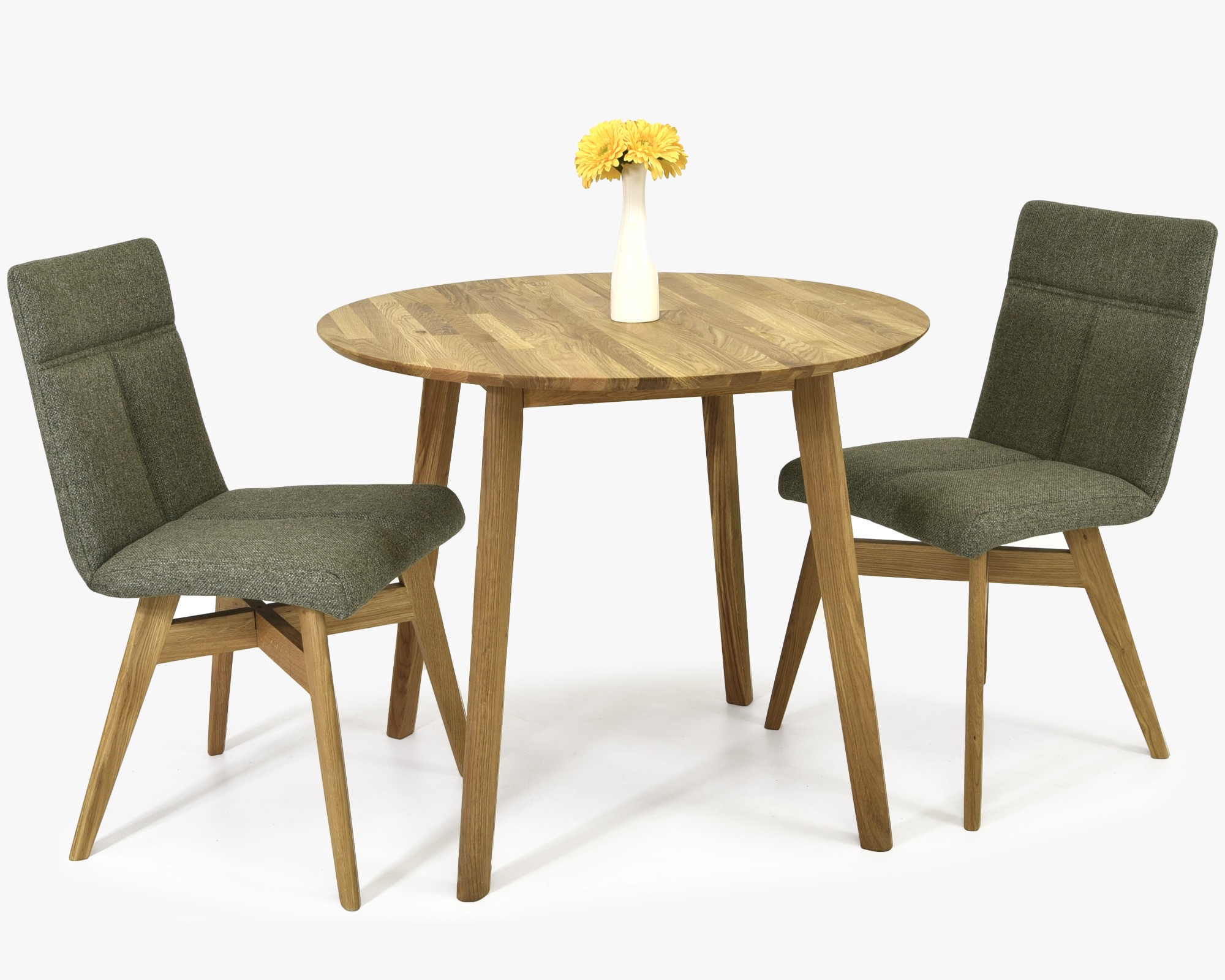 Von der hohen Stabilität überzeugen Sie sich durch die Tischplatte mit einer Stärke von bis zu 2 cm und die robusten Tischbeine. Der Esstisch hat eine schöne Platte aus natürlichem Eichenholz. Der runde Tisch Tomas ist ideal für kleinere Räume, die Tischplatte hat einen Durchmesser von 90 cm. Ein Vorteil ist die stabile Konstruktion. Lassen Sie sich von unserem Angebot an Eichenstühlen inspirieren und gestalten Sie Ihren Essbereich einheitlich eingerichtet!