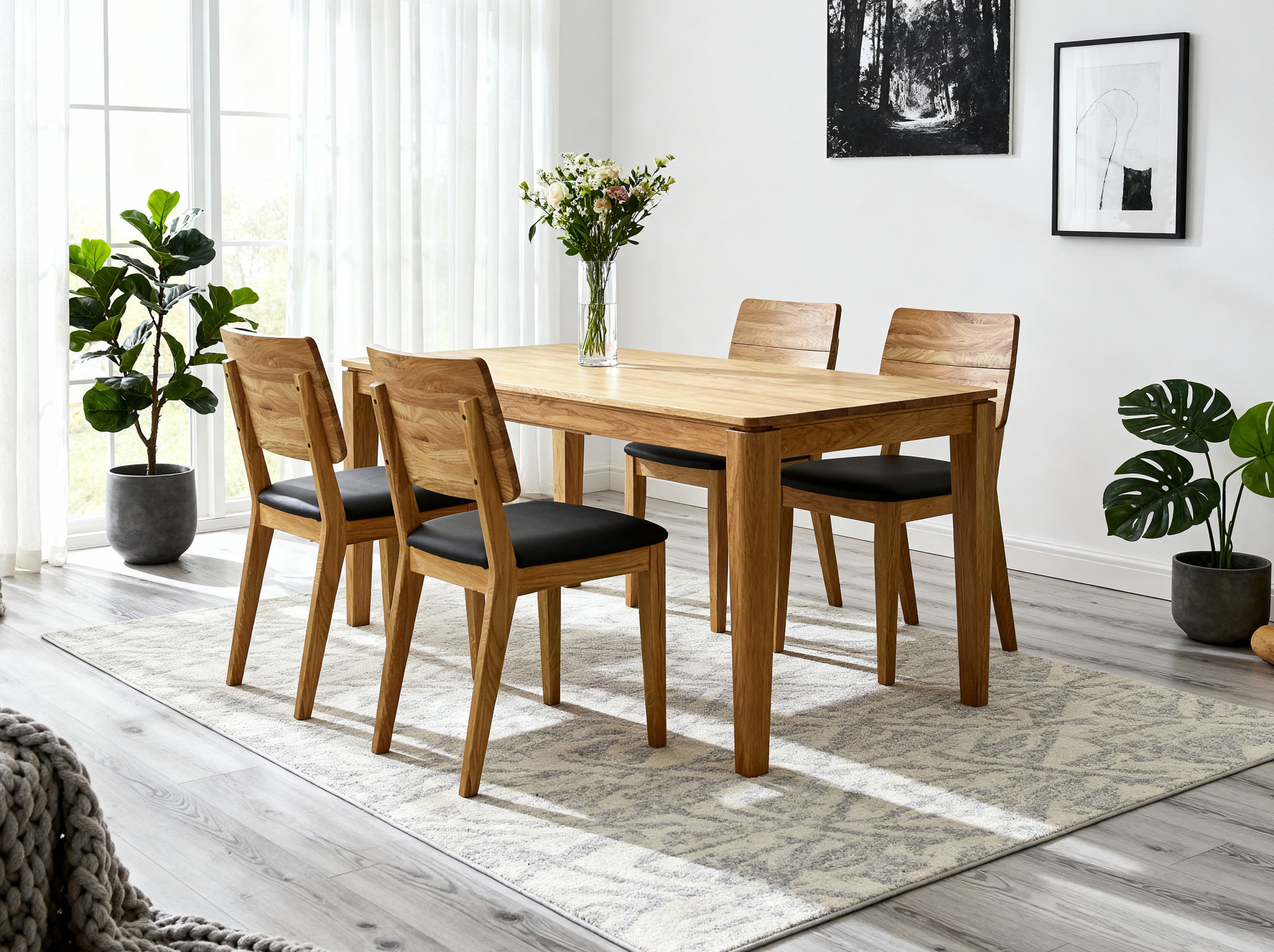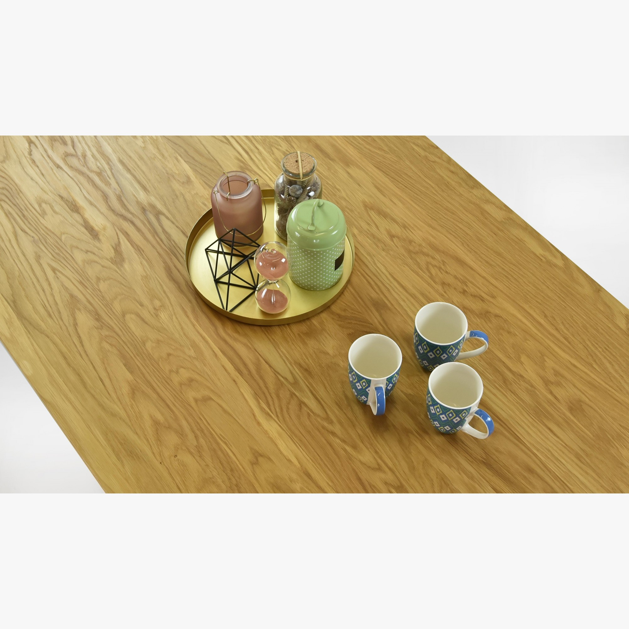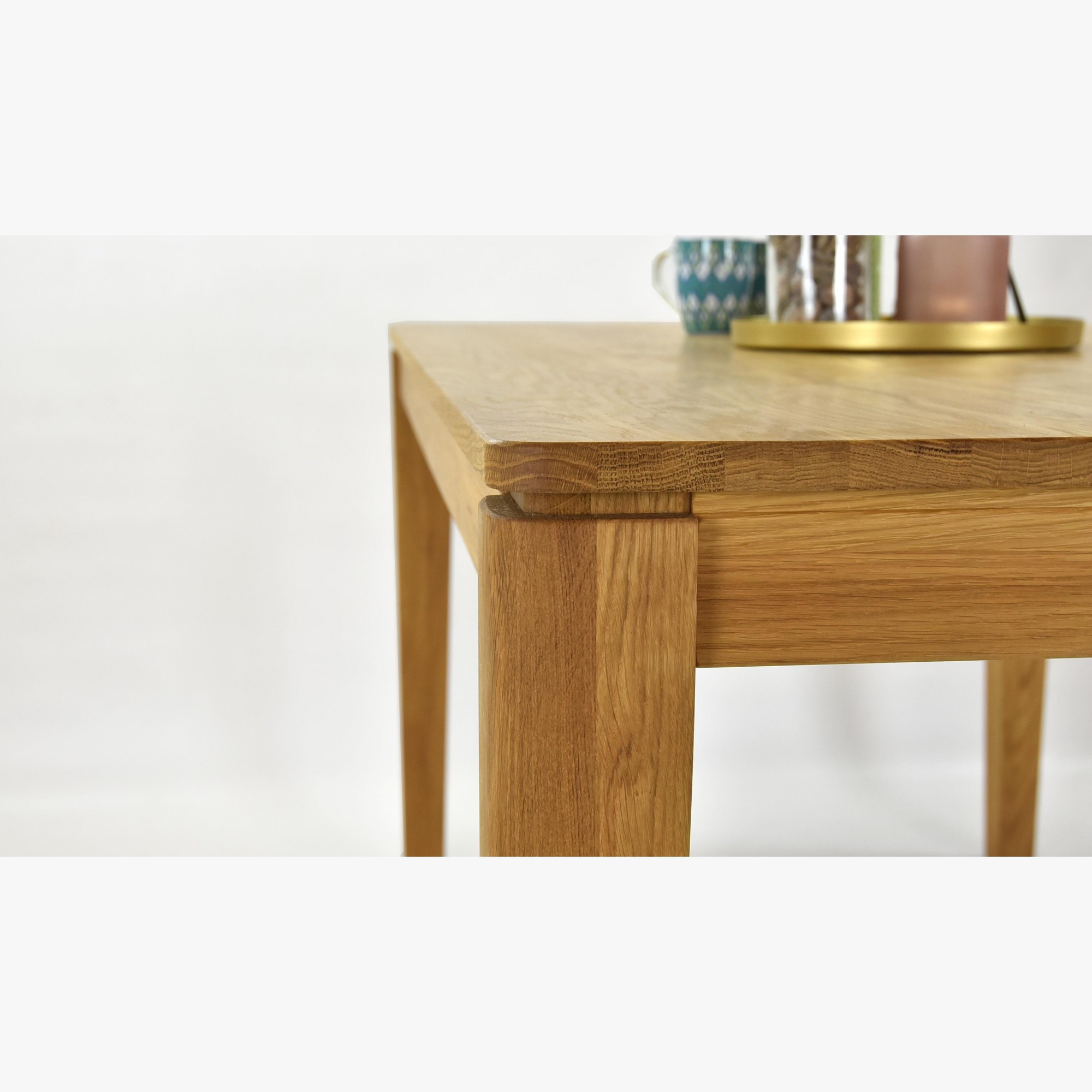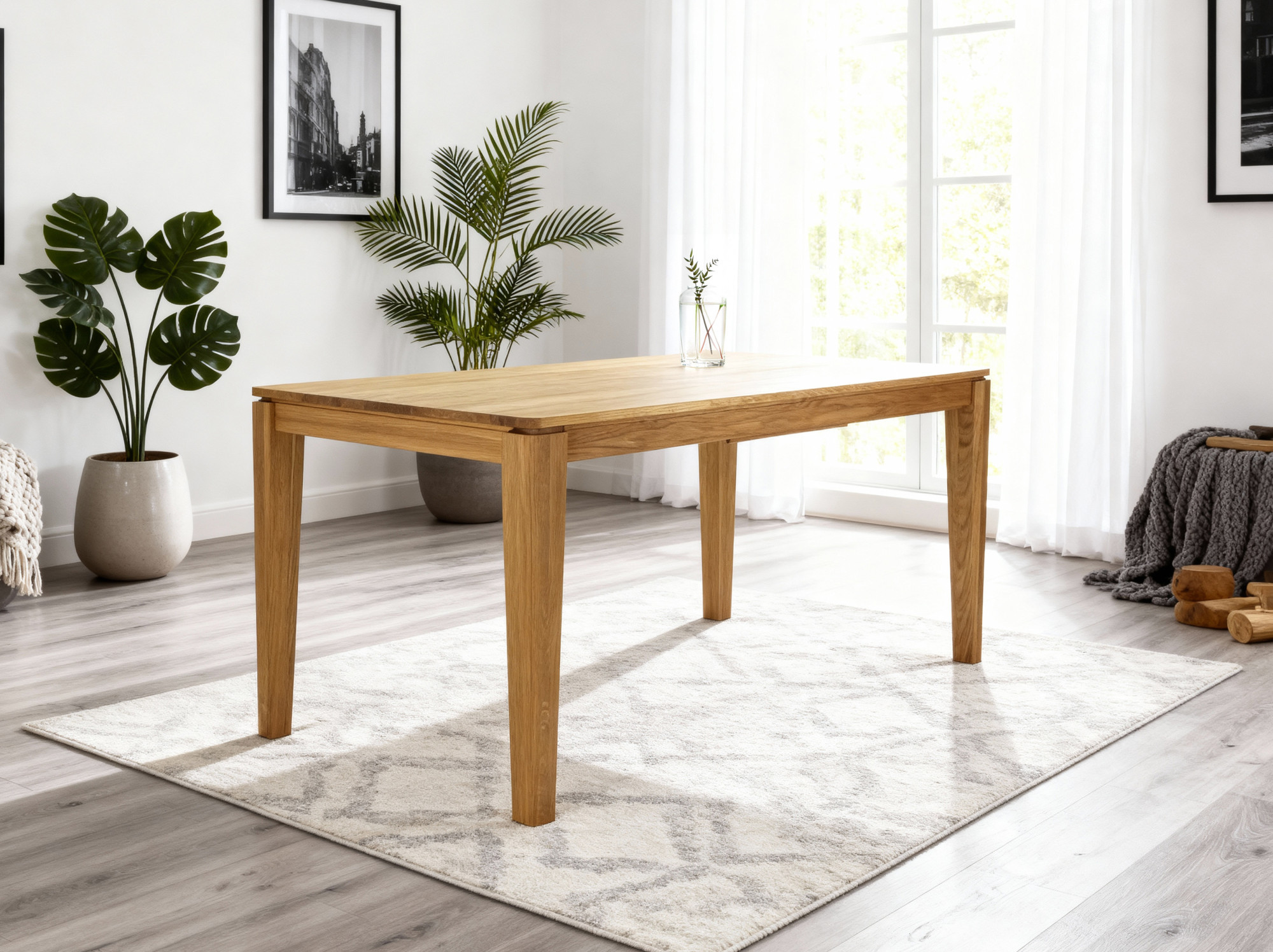- Material: 100% massives Eichenholz (Platte, Rahmen und Beine)