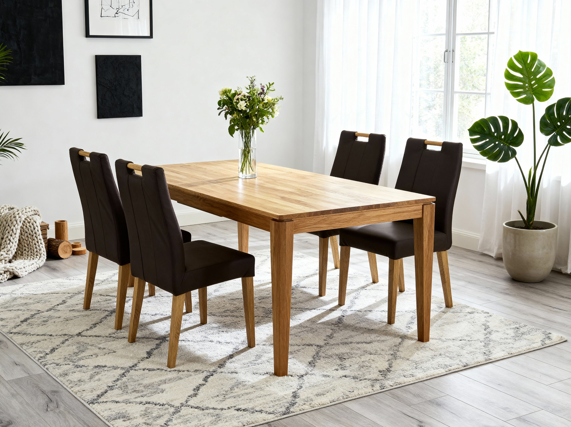 * Auf dem Bild Eichentisch Houston 160 XL und Esszimmer- Stuhl Almondo