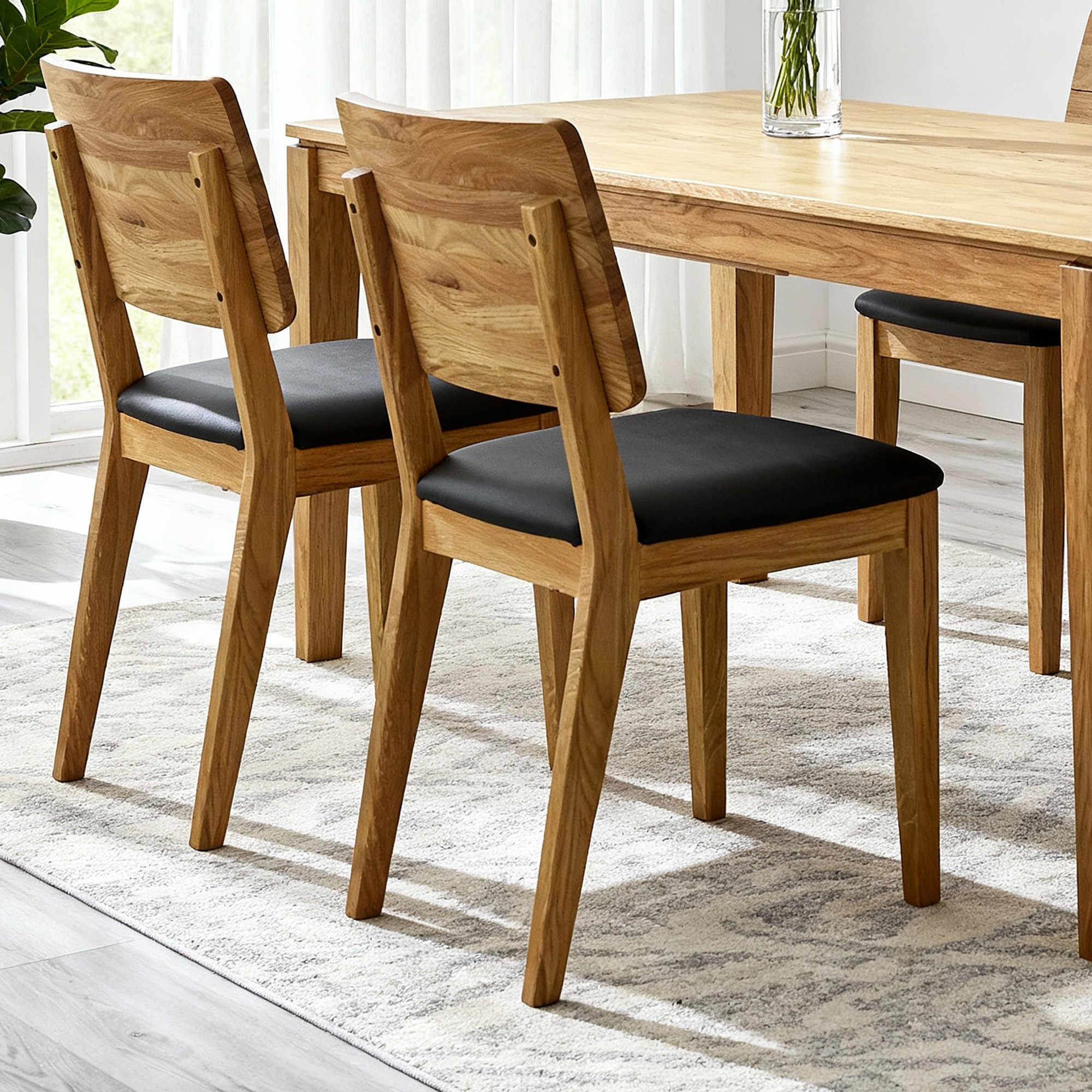 * Auf dem Bild Eichentisch Houston 160 XL und Esszimmer- Stuhl Bergen in dunkel schwarzem Leder