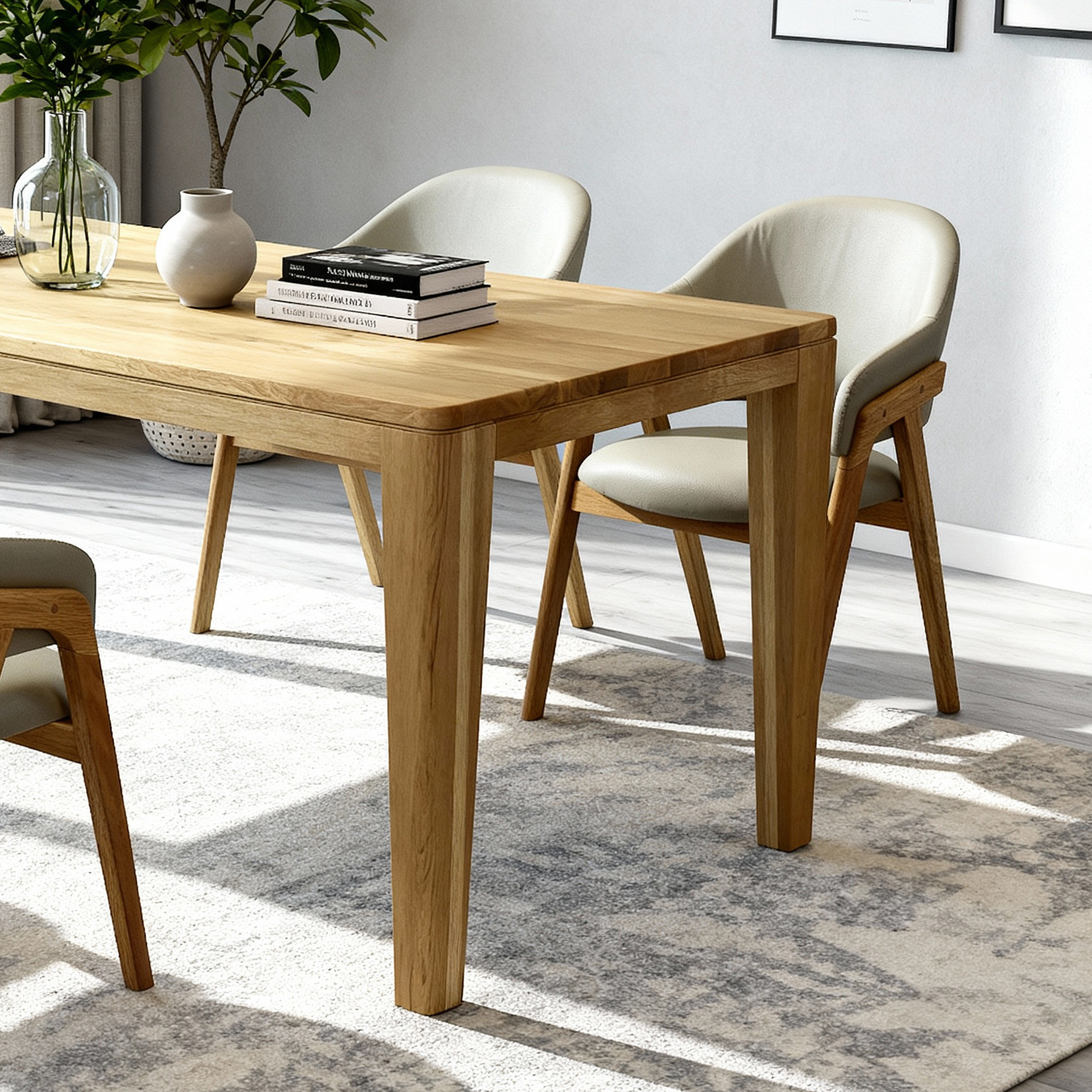 * auf dem Bild der Eichen-Tisch York in der Größe 180 x 90 und Stuhl Modell Beny