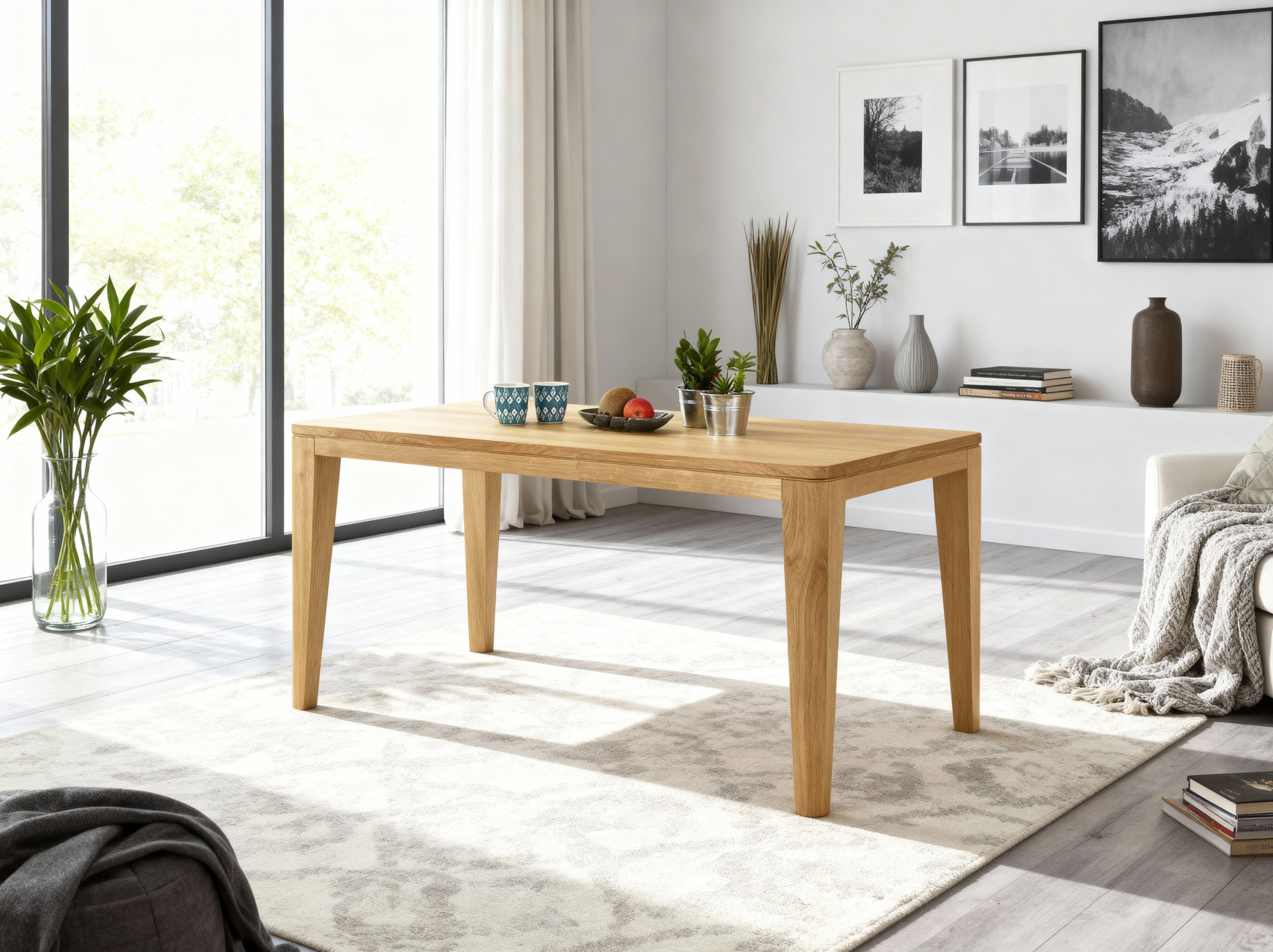 * auf dem Bild der Eichen-Tisch York in der Größe 180 x 90 und Stuhl Modell Arco