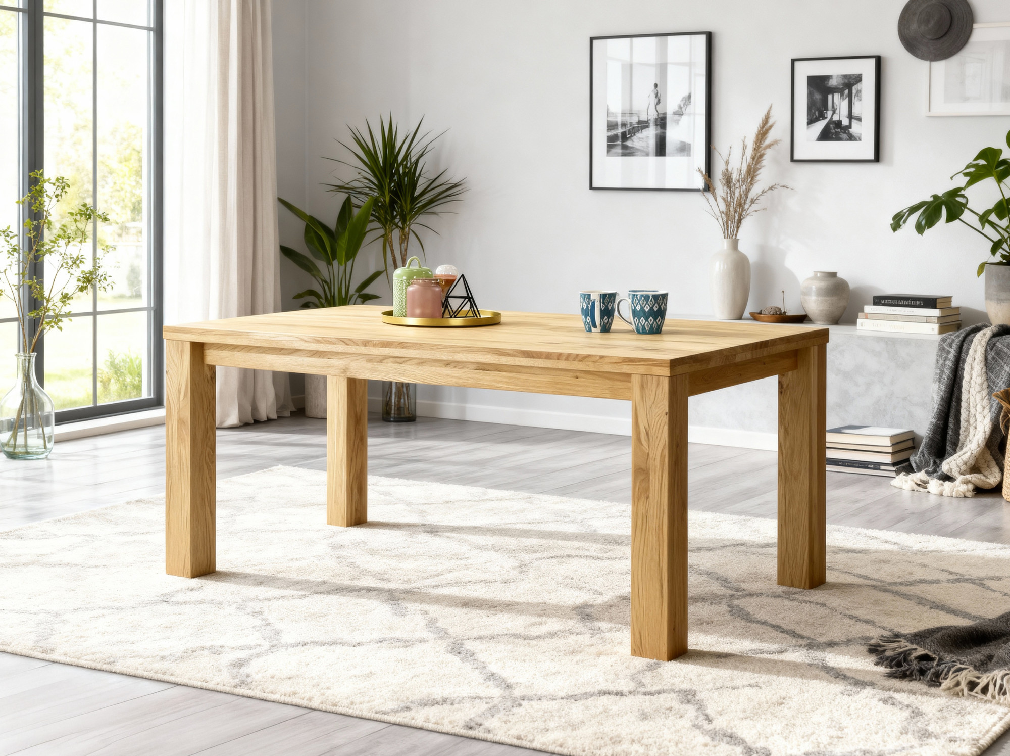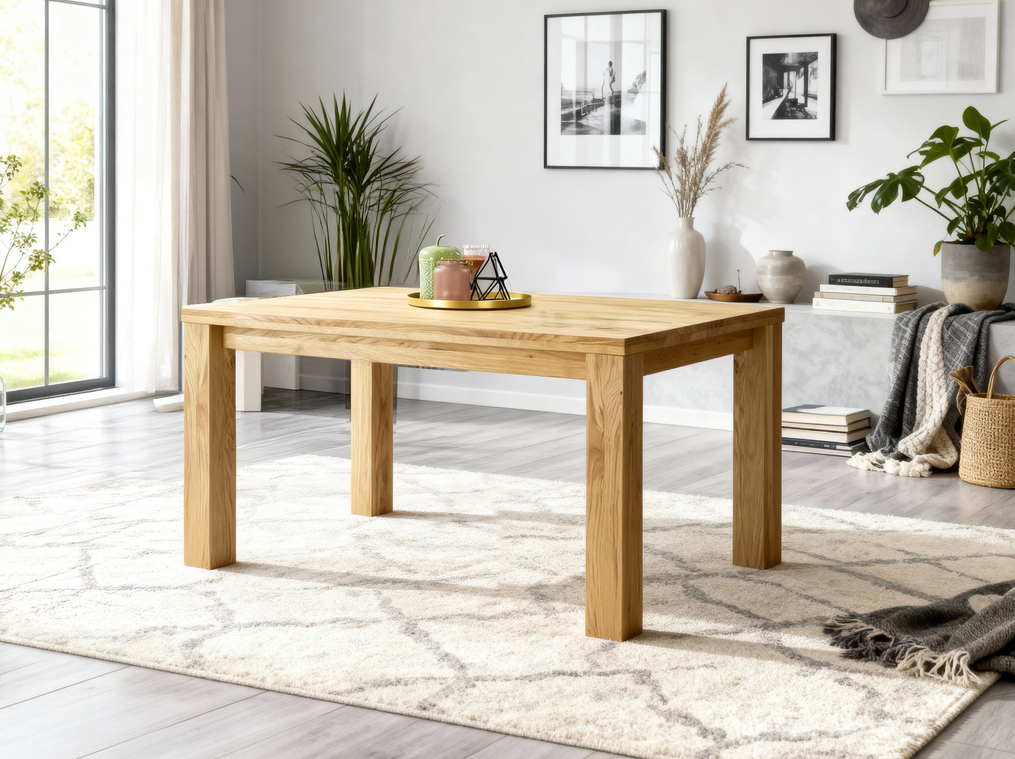 - Warum sollte man Eichenholz wählen? Massives Eichenholz gehört zu den hochwertigsten und widerstandsfähigsten Materialien für Möbel. Es zeichnet sich durch eine schöne natürliche Maserung, hohe Härte und lange Lebensdauer aus. Ein Tisch aus Eichenmassivholz ist eine Investition für Generationen.