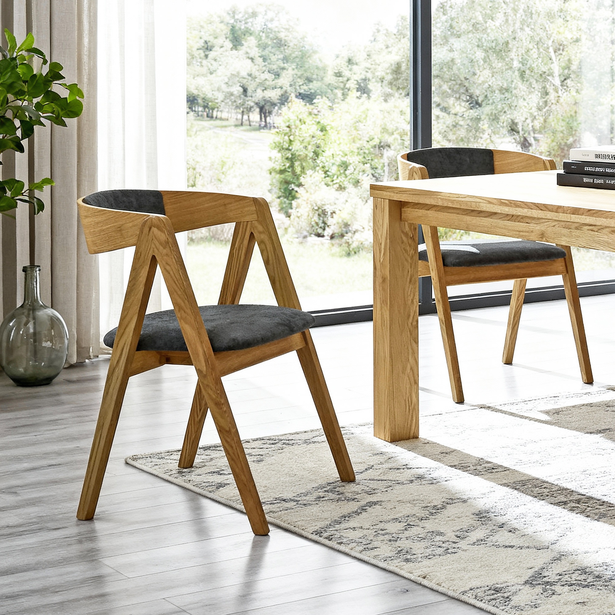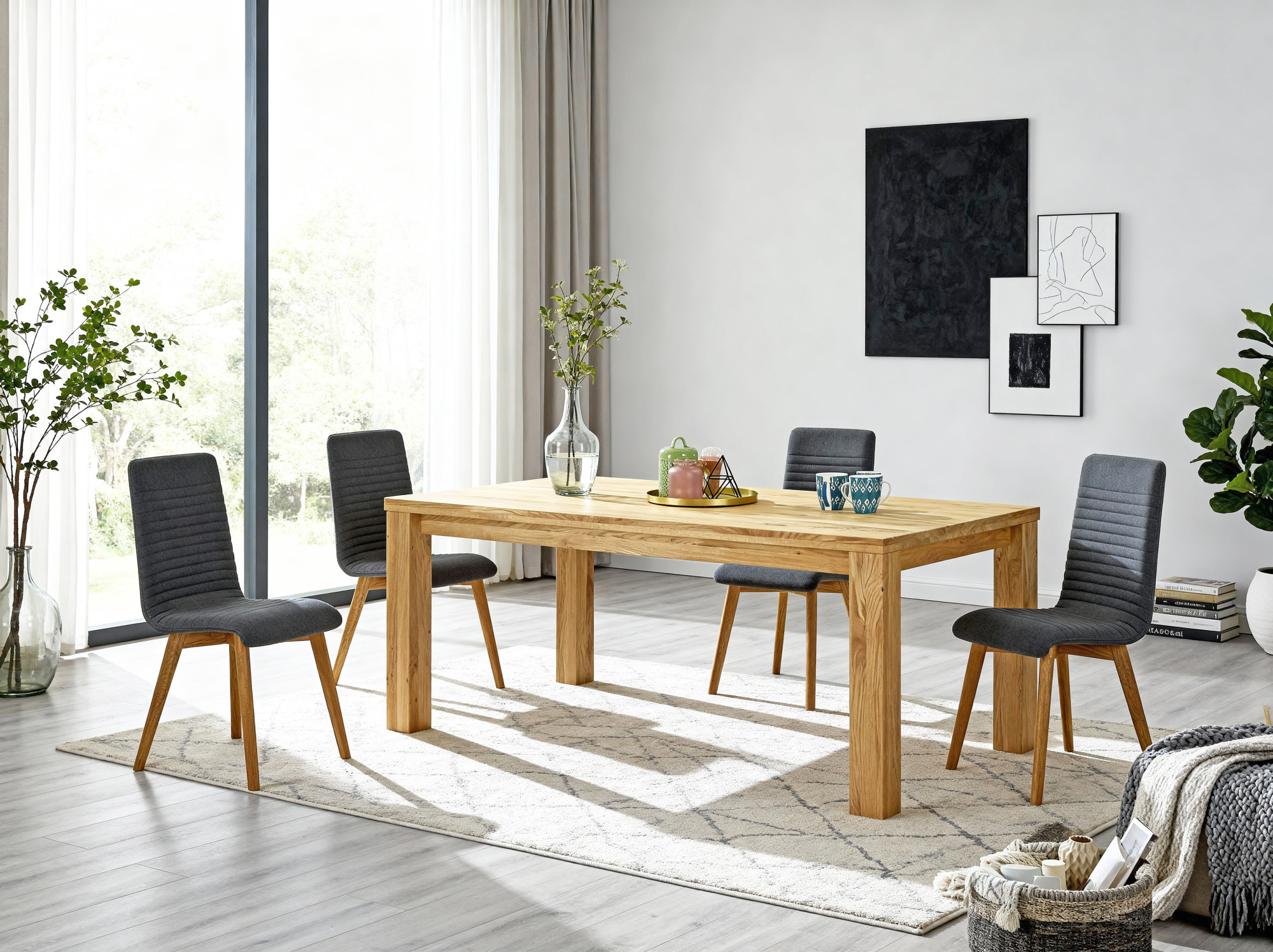 * Im Bild der Eichen Tisch Bratislava und der Esszimmer Sessel Maja in dunkelgrauem Stoff