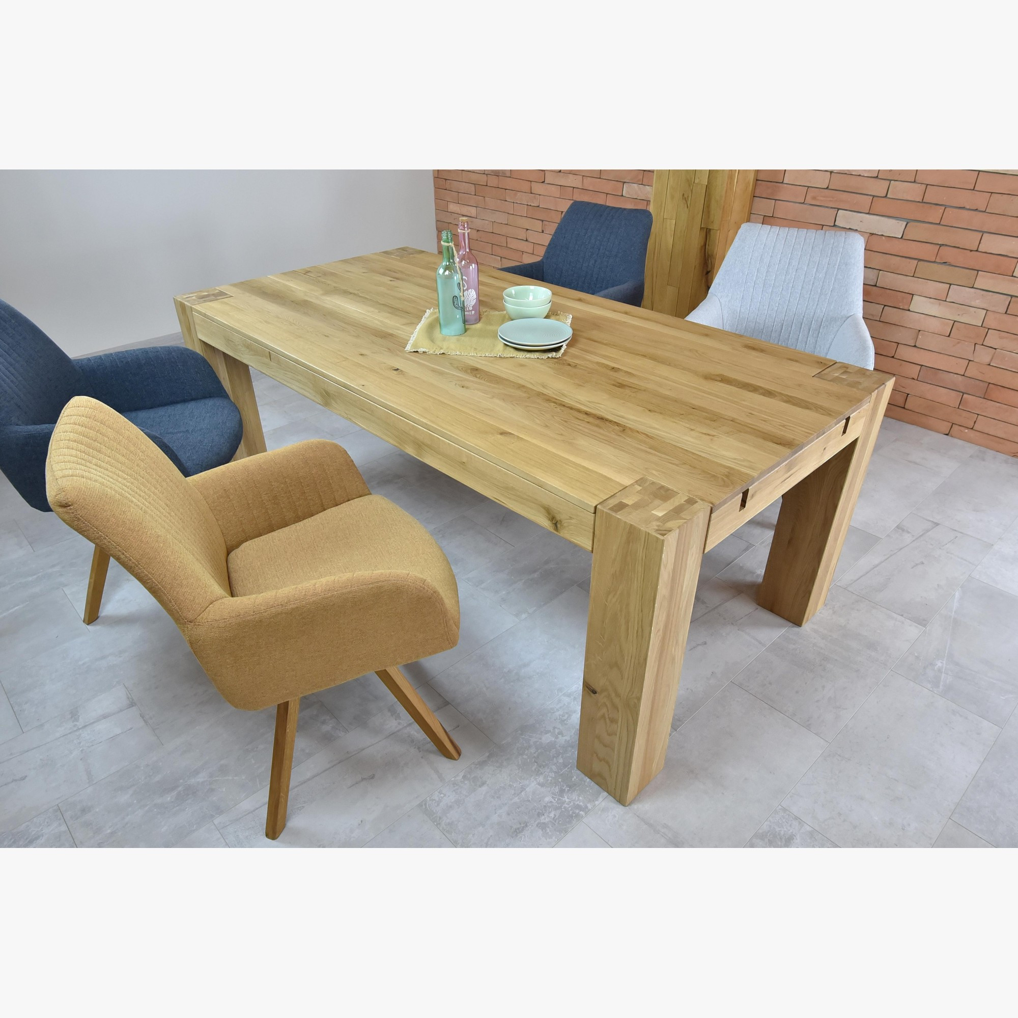 Der Tisch besteht aus reinem massivem Eichenholz und wurde mit Öl und Wachs einer renommierten Marke oberflächenbehandelt. Diese Behandlung schützt die Oberfläche vor kleinen Kratzern, bewahrt gleichzeitig jedoch die Schönheit der natürlichen Holzmaserung. Sichtbare Astlöcher sind kein Mangel, sondern ein bewusstes Designelement, das den natürlichen Charakter des Möbelstücks unterstreicht. Der massive Eichenholzesstisch George II ist somit nicht nur praktisch, sondern auch ein ästhetisch ausdrucksstarkes Element der Einrichtung. Dank sorgfältiger Verarbeitung, Naturmaterial und elegantem Aussehen bietet er ein hervorragendes Preis-Leistungs-Verhältnis für jeden, der solides Möbel aus natürlichem Holz sucht.