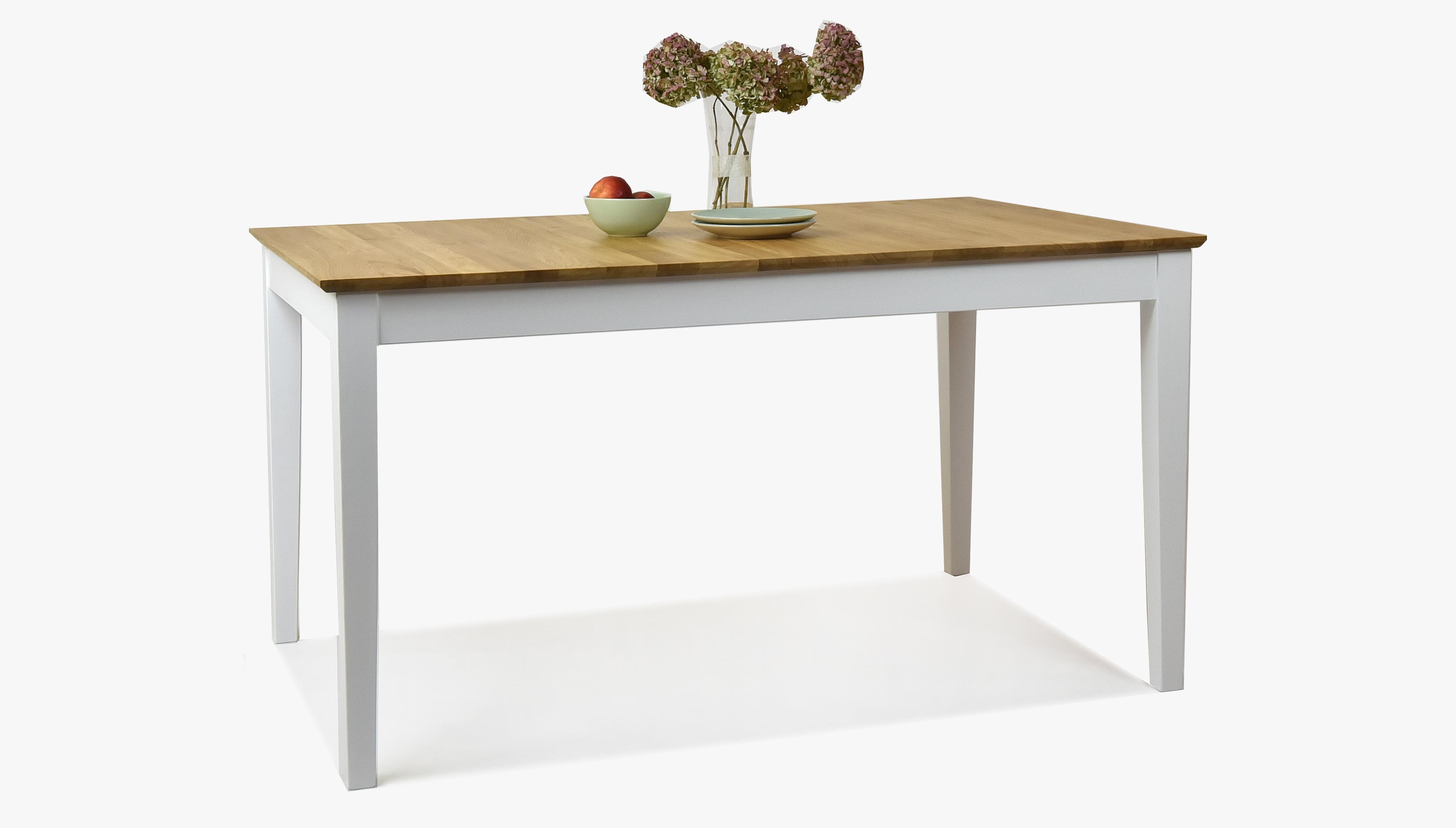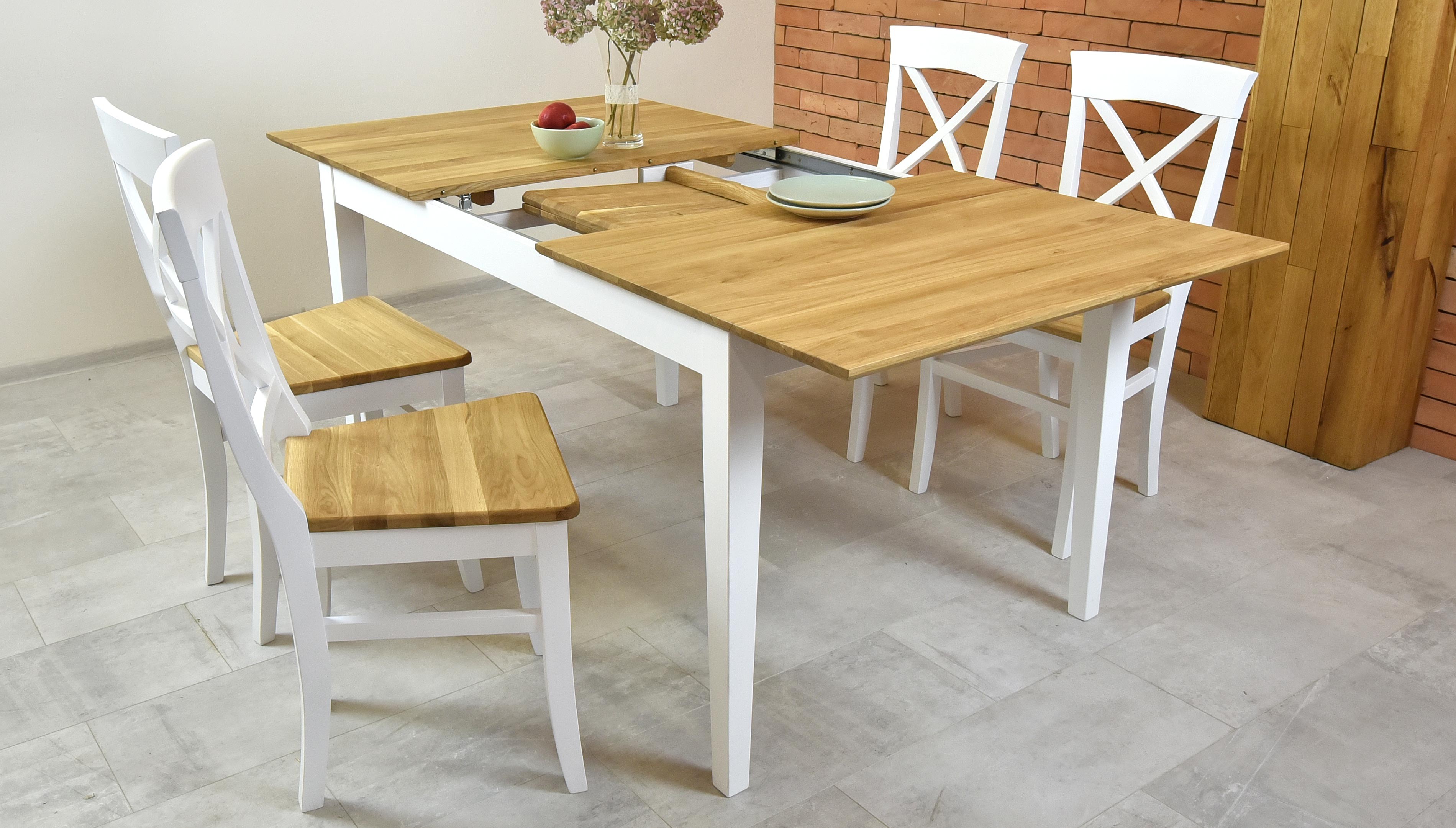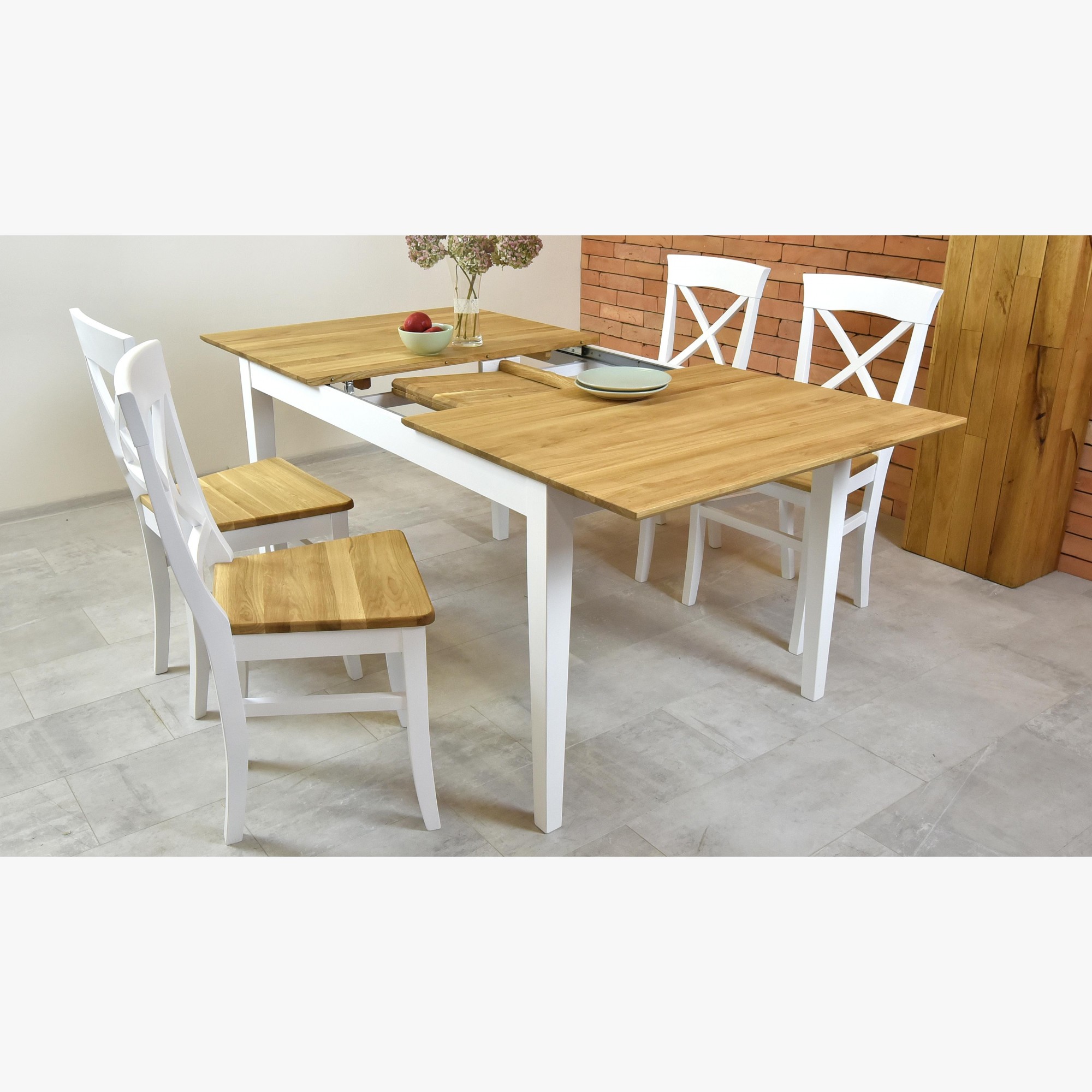 Massiver Esstisch Eiche + weiß ausziehbar, Tomino