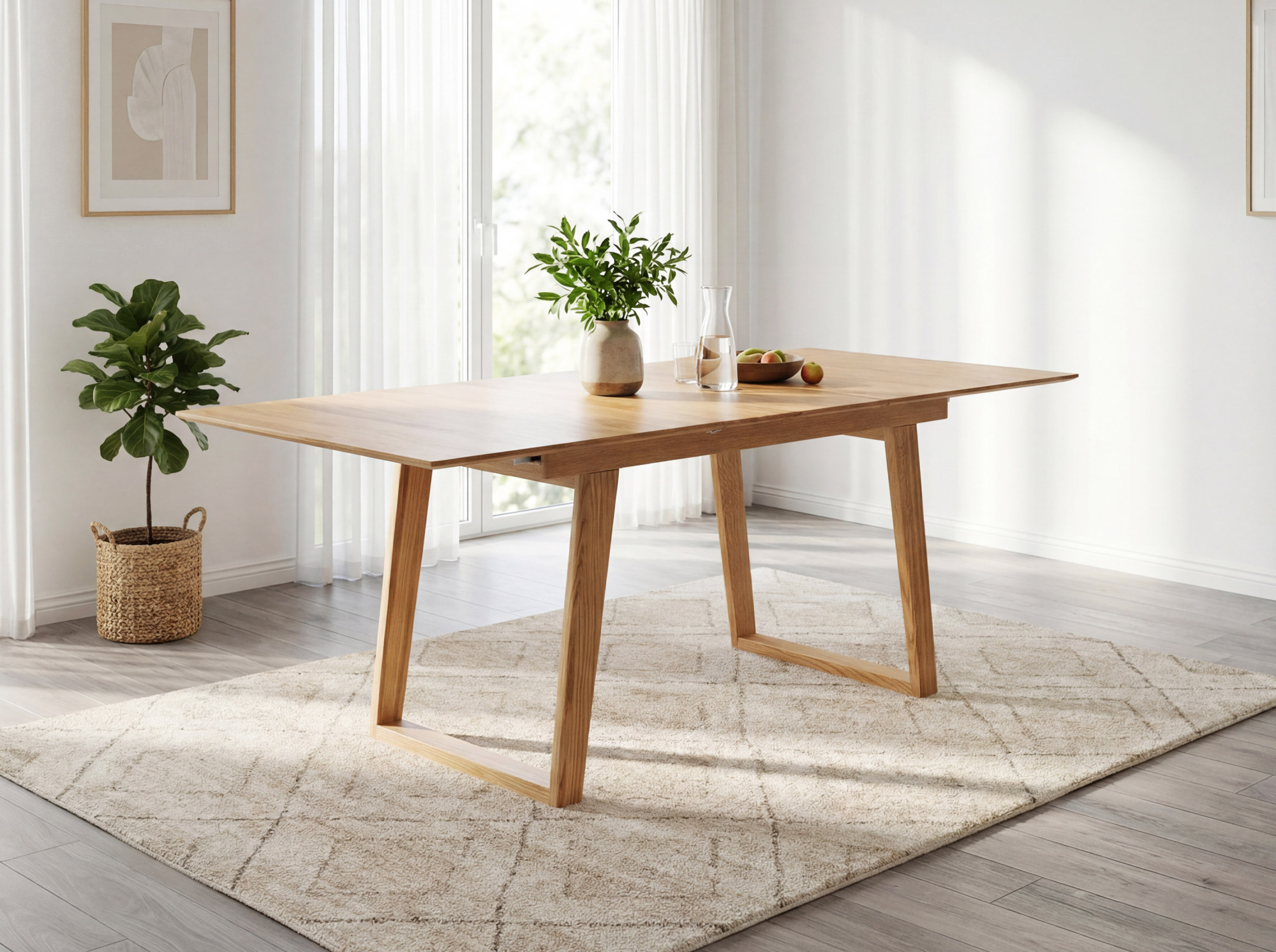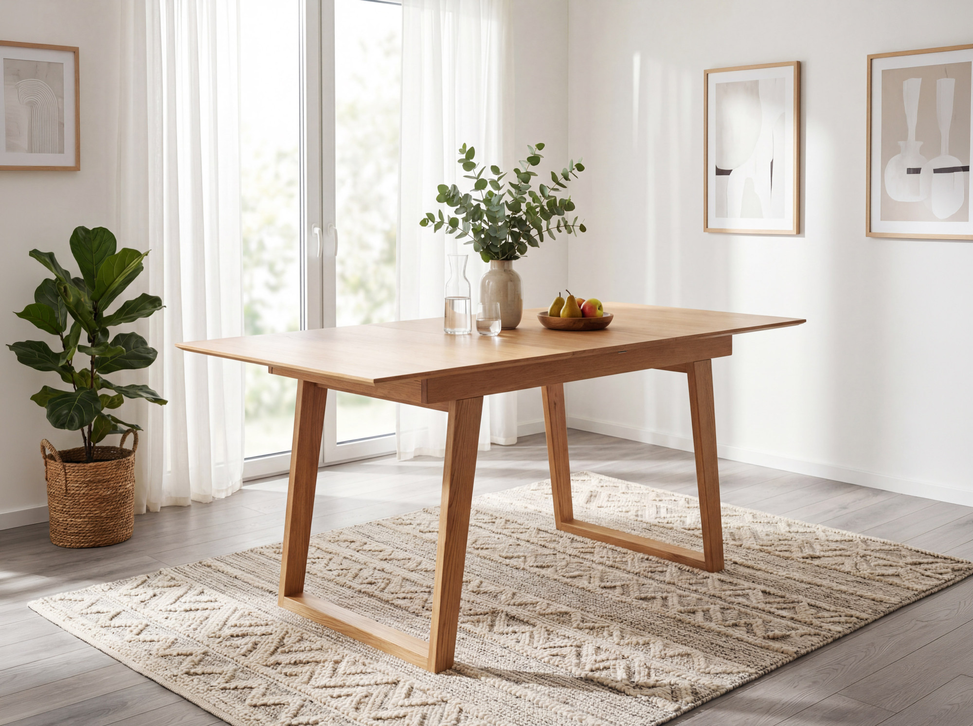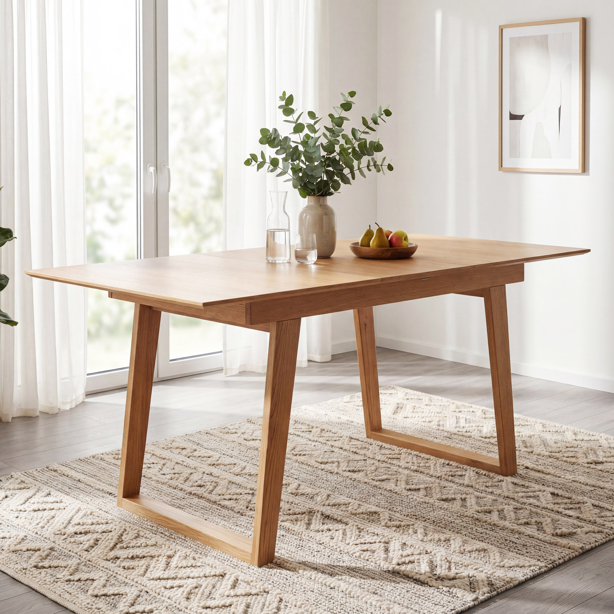 Ausziehbarer Esstisch Rouen aus massivem Eichenholz 150 x 90 cm, ausgezogen 200 x 90 cm