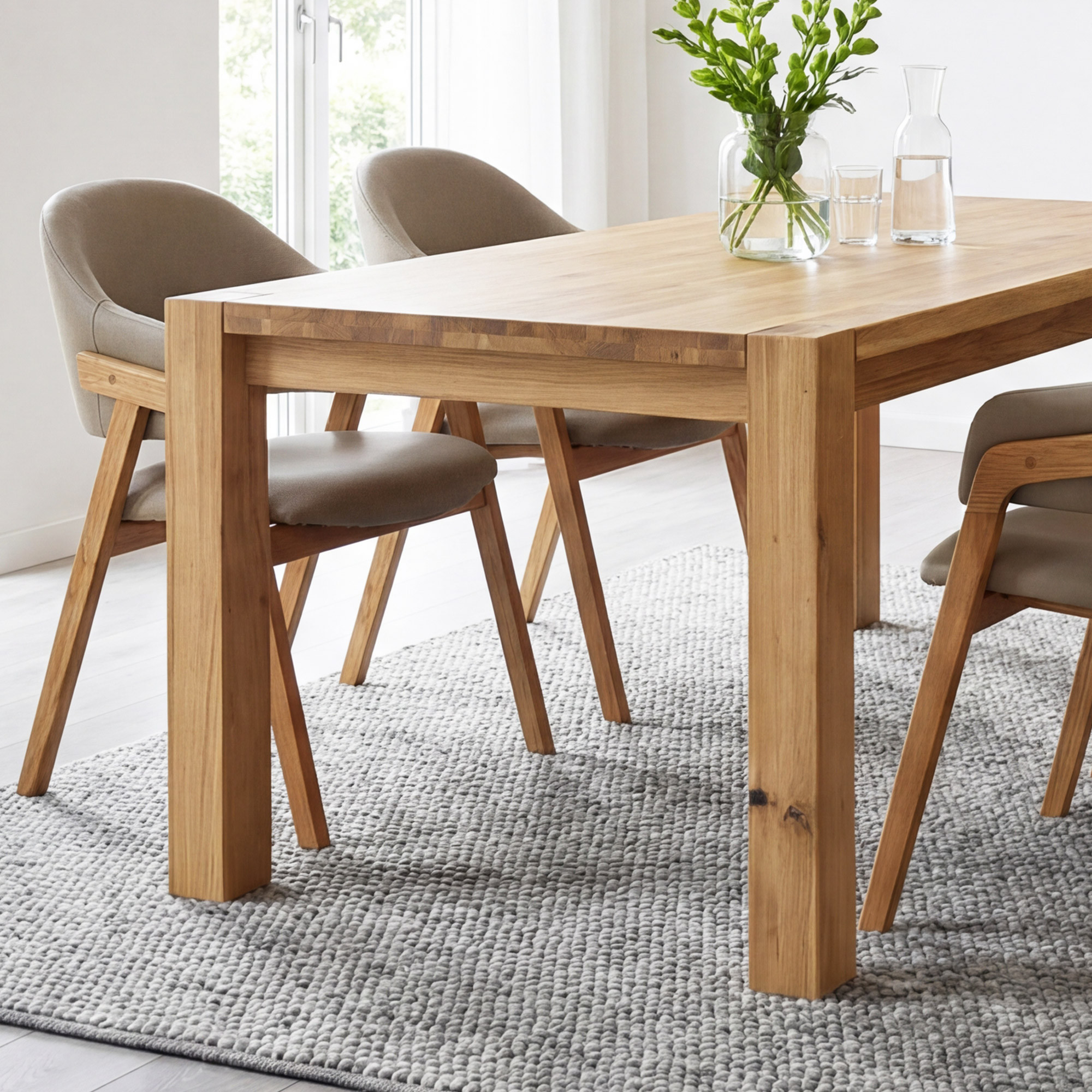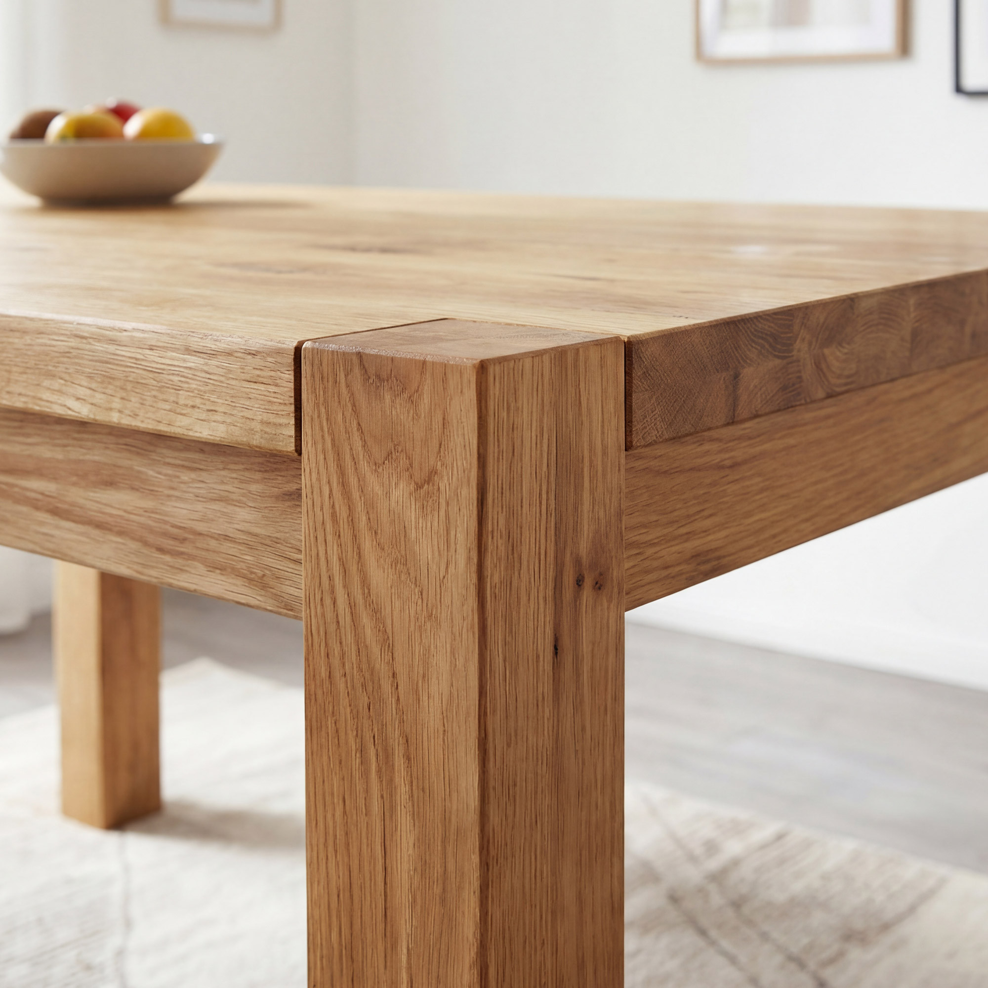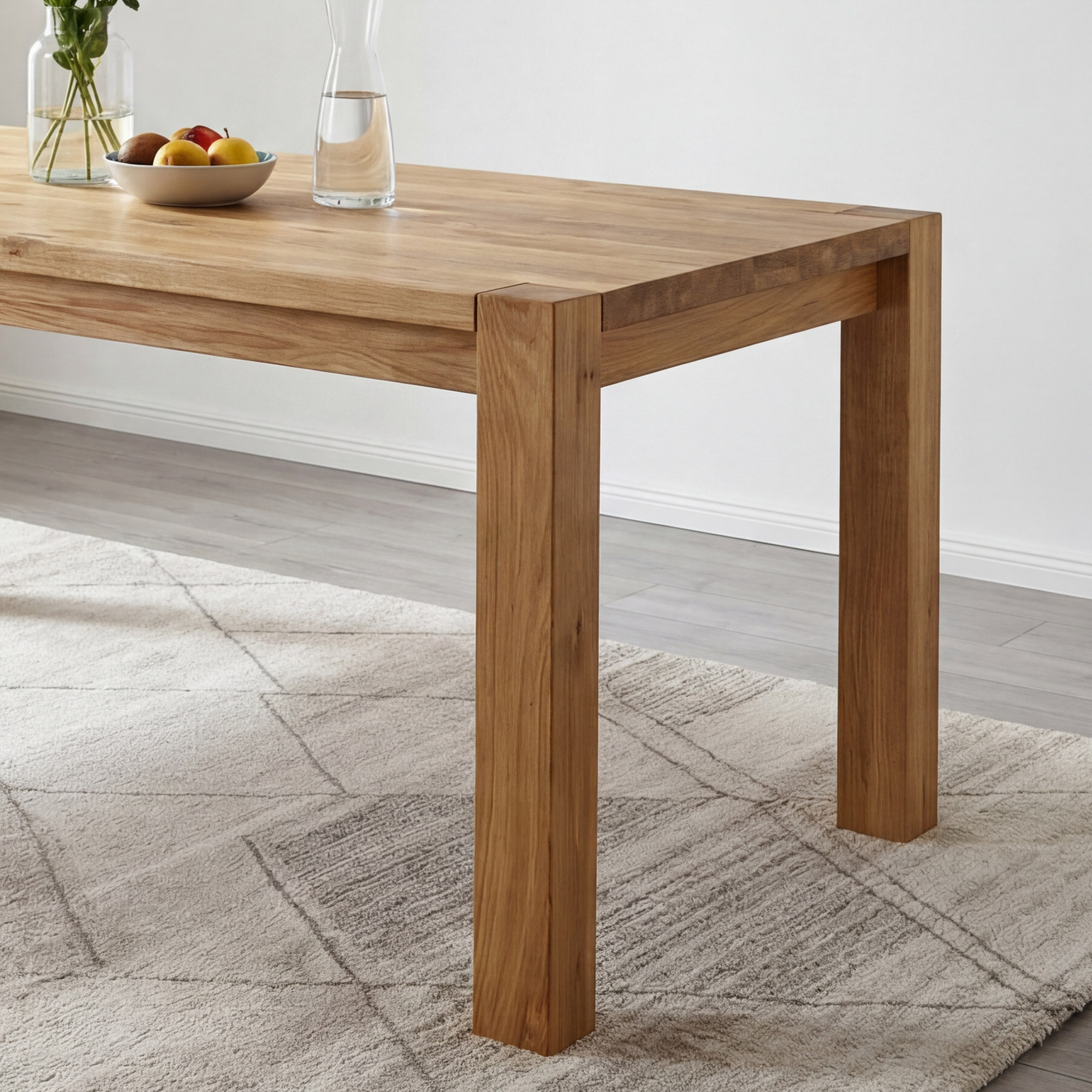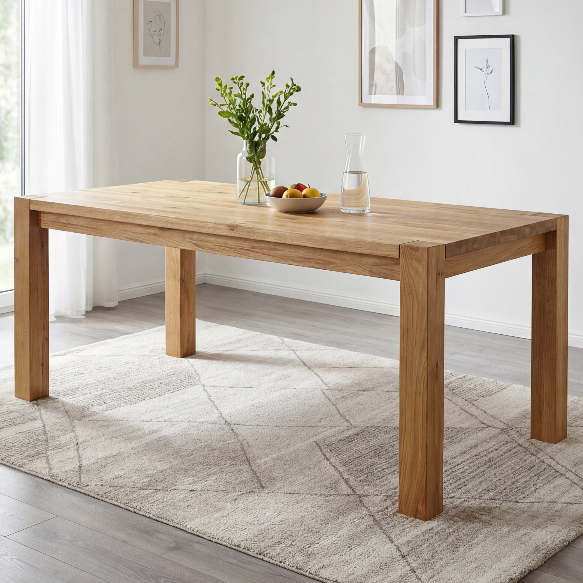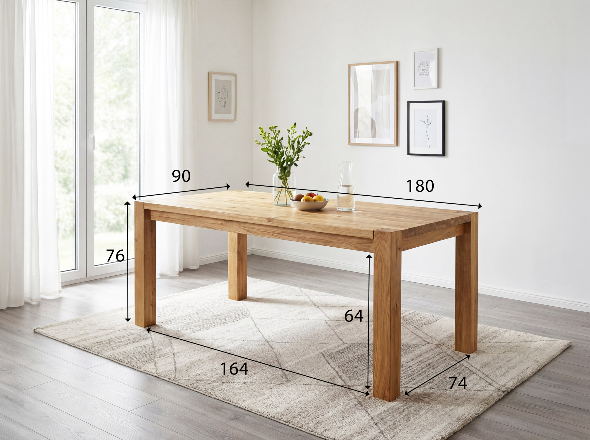 Die Tischkonstruktion besticht durch außergewöhnliche Robustheit – massive Tischbeine mit einem Querschnitt von 8 x 8 cm garantieren maximale Stabilität auch bei voller Belegung. Die Plattenstärke beträgt 2 cm, an den Rändern bis zu 4 cm, was dem Tisch ein massives und repräsentatives Aussehen verleiht. Die Tischhöhe von 76 cm (Höhe vom Boden bis zur Unterkante 64 cm) ist ideal für bequemes Essen. Massives Eichenholz ist ein hartes Holz, das widerstandsfähig gegen Rillen und Kratzer ist, weshalb dieser Tisch eine Qualitätsgarantie für Generationen ist. Der Tisch wird zerlegt geliefert mit einer einfachen Anleitung – der Aufbau gelingt schnell und ohne Spezialwerkzeug.