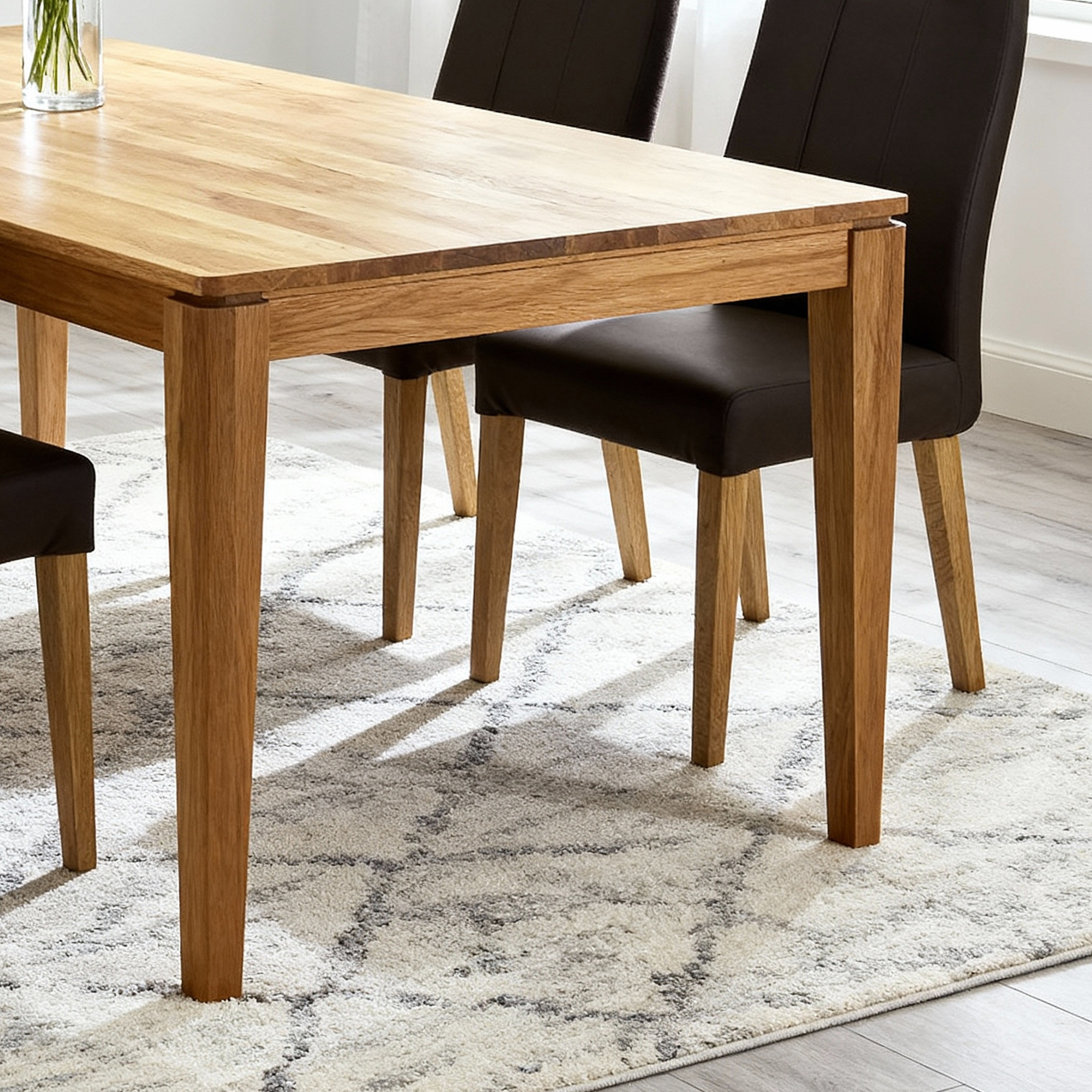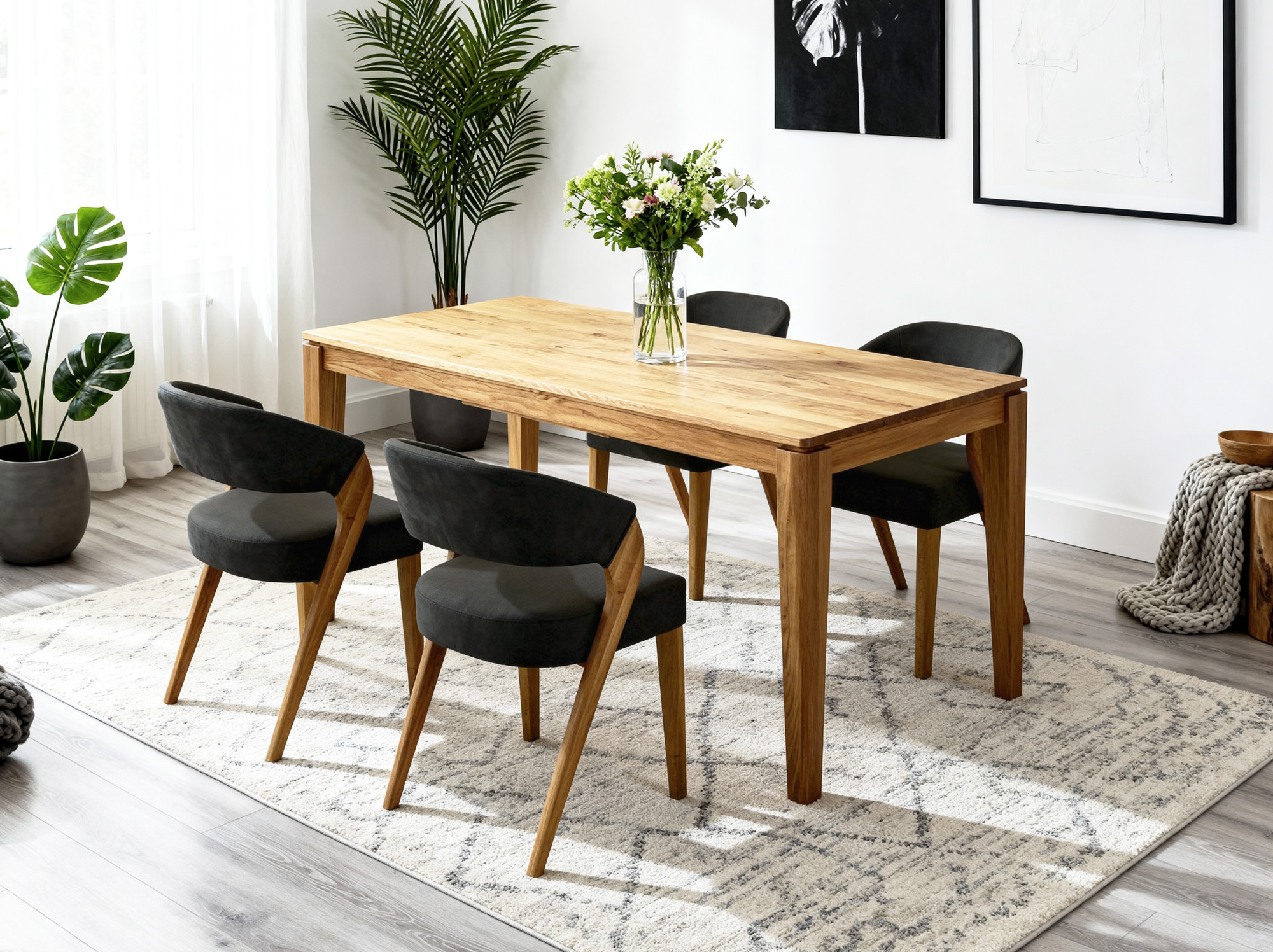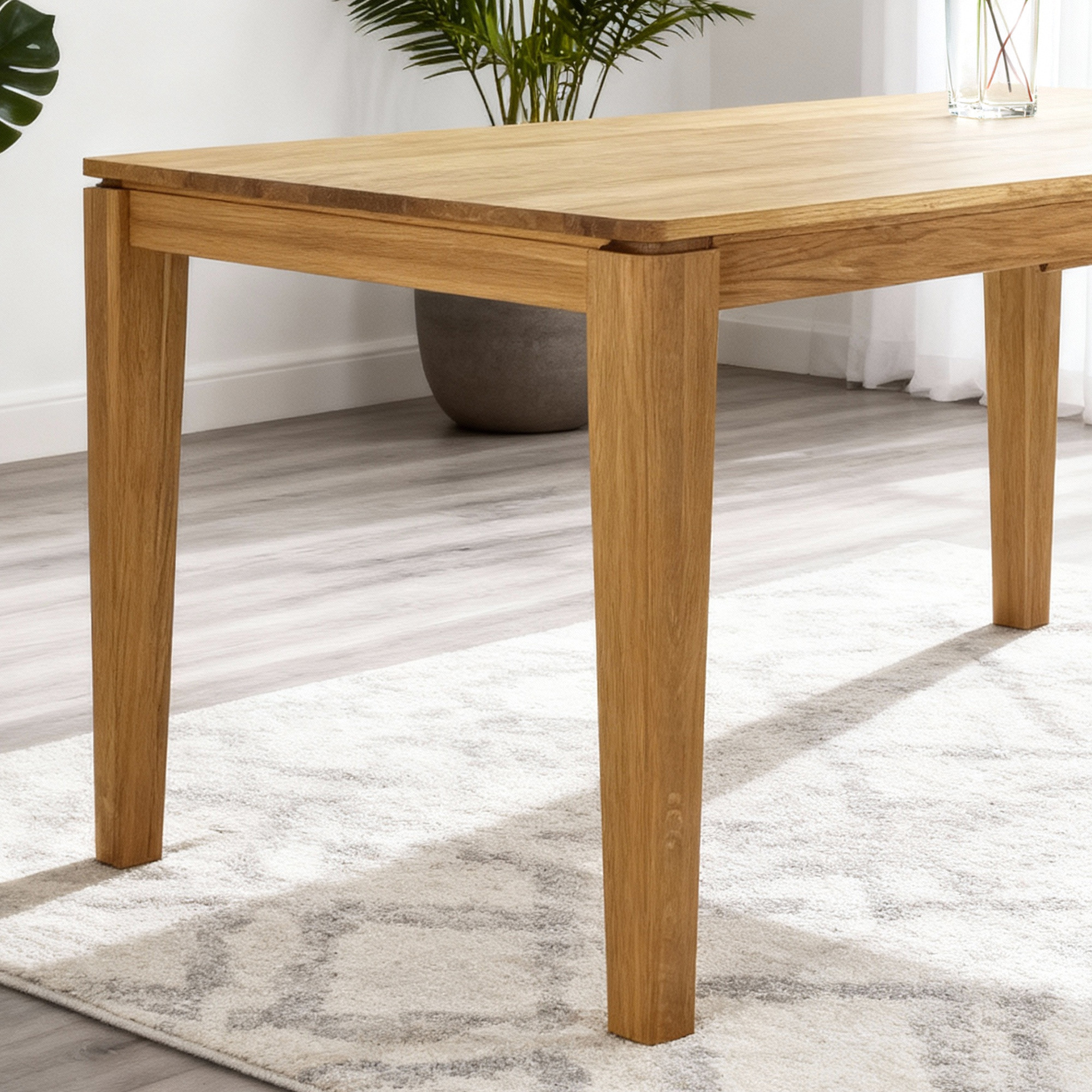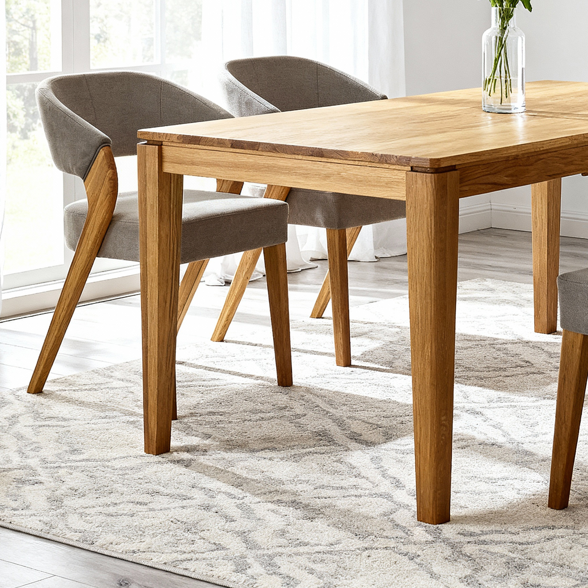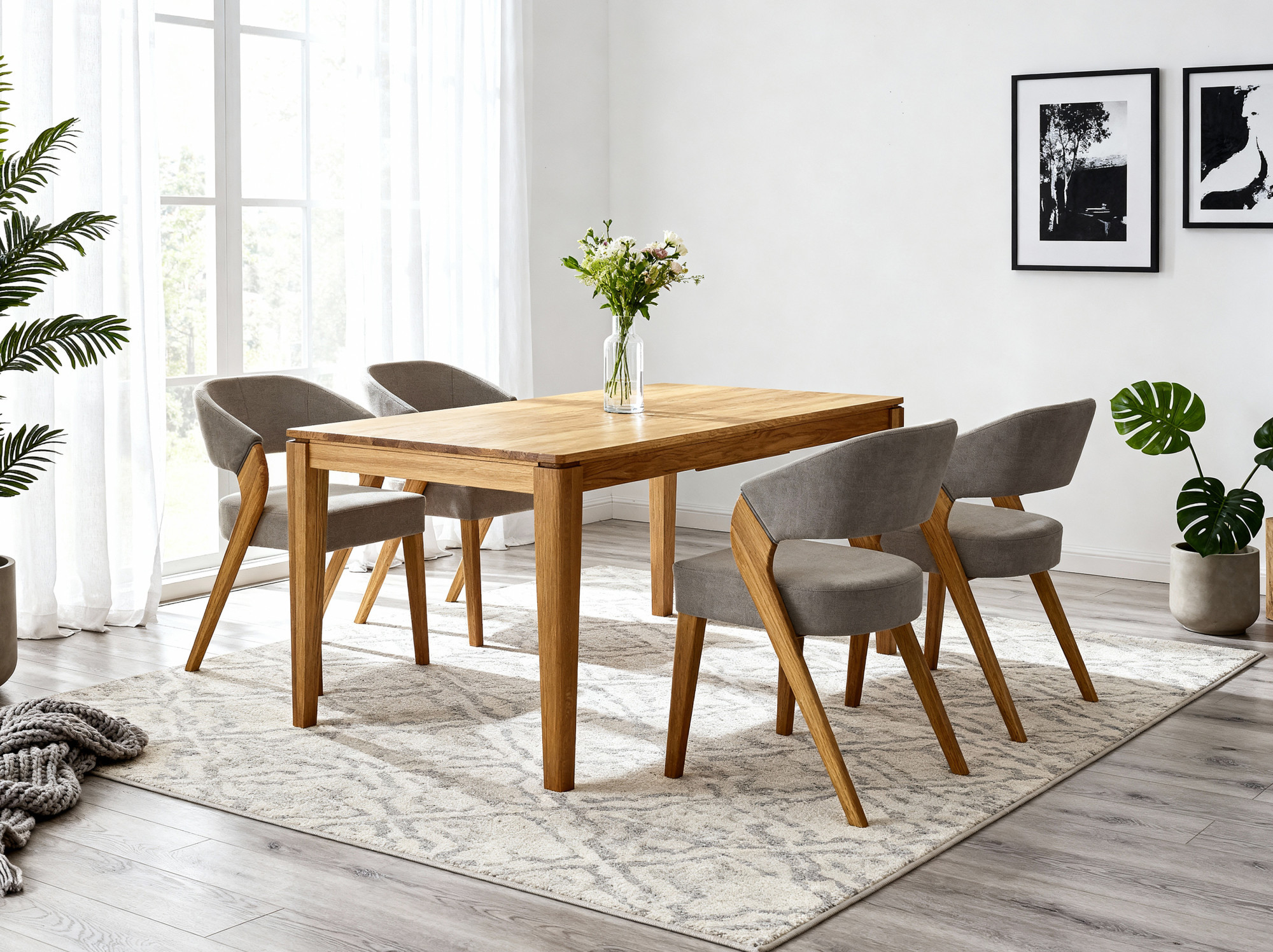 Suchen Sie einen hochwertigen ausziehbaren Esstisch aus massivem Eichenholz, der Generationen überdauert? Unser Eichenholz-Tisch Houston in der Grundlänge von 140 x 90 cm ist die ideale Lösung für moderne Haushalte. Ausgezogen bietet er komfortablen Platz bis zu 190 x 90 cm und fasst bequem bis zu 8 Gäste. Der gesamte Tisch besteht aus 100% massivem Eichenholz – einschließlich der Tischplatte, des Rahmens und der kräftigen Beine. Die Oberflächenbehandlung mit natürlichem, ökologischem Öl betont die natürliche Schönheit des Holzes und sorgt für lange Haltbarkeit. Das Ausziehen des Tisches erfolgt manuell und dauert nur wenige Sekunden, wobei Sicherheitsgriffe ein unbeabsichtigtes Ausziehen verhindern.