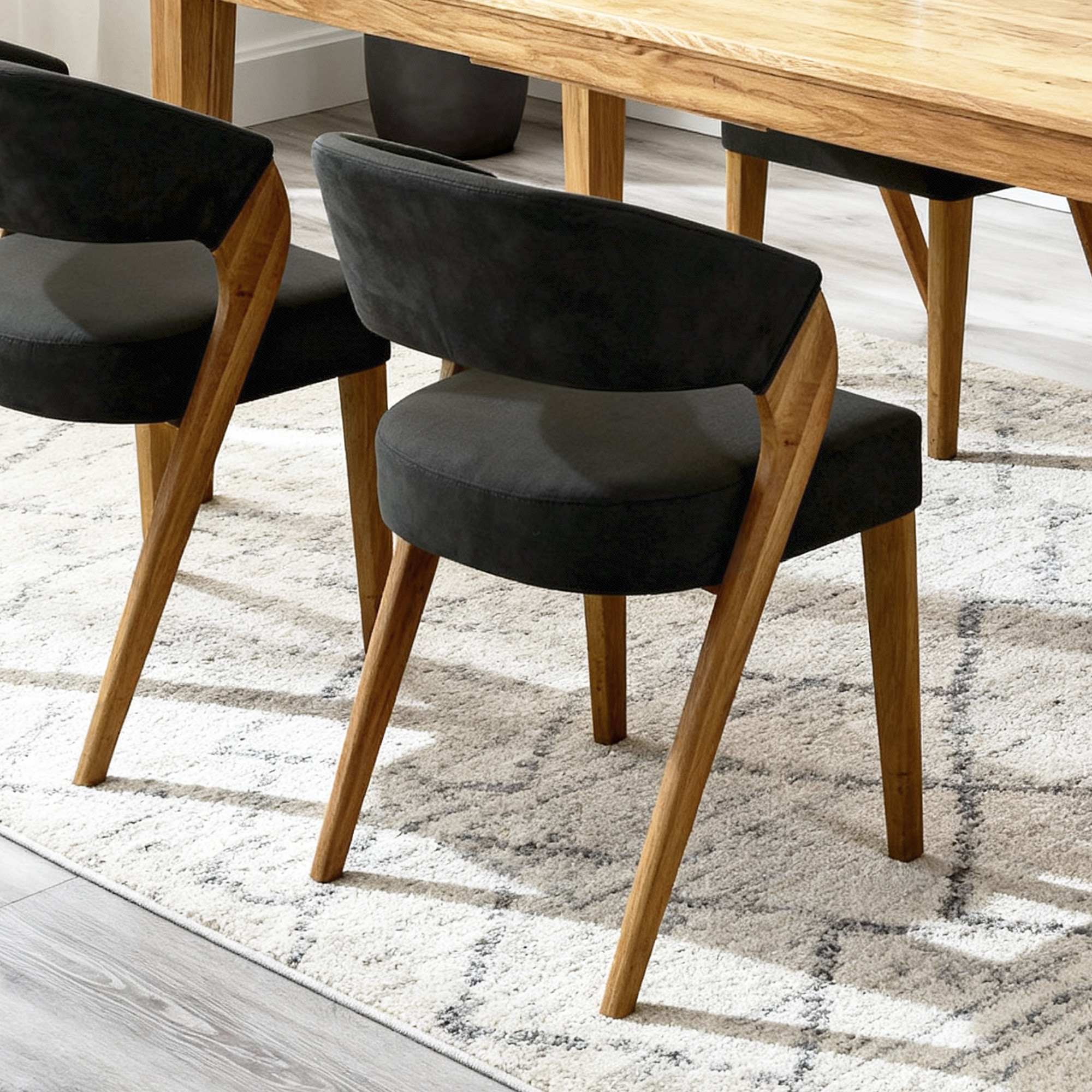 * Auf dem Bild Eichenholztisch Houston 160 XL und der Ess- Stuhl Bergen in tiefschwarzem Leder