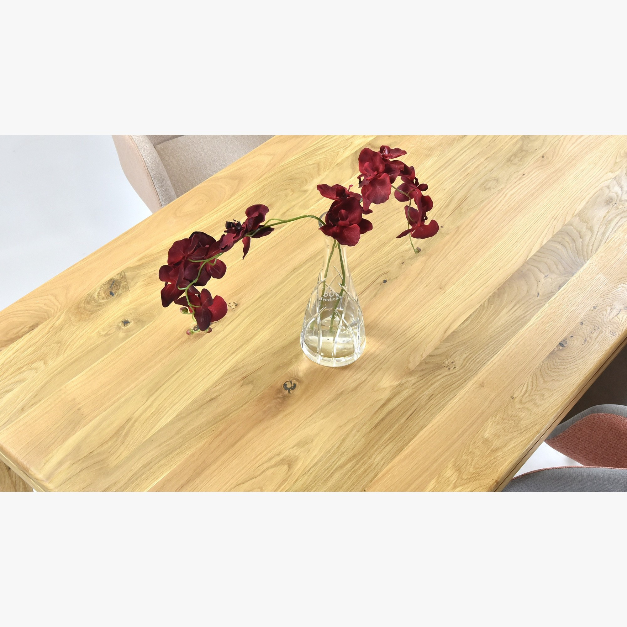 Eichenholz ist ein königliches Material mit hervorragenden Eigenschaften und garantiert perfekte Naturmöbel. Eine wunderschöne natürliche Struktur, die mit den Jahren zu einzigartiger Schönheit heranreift. Das Holz wird sorgfältig getrocknet, wir verwenden wilde Eiche, was ein echtes authentisches Stück Natur in Ihrem Esszimmer garantiert. Das Holz selbst ist ein hartes Holz, so dass es schwierig ist, Kratzer oder Riefen zu erzeugen. Wir legen Wert auf Umweltschutz, deshalb ist sämtliches Holz mit FSC-Zertifikat versehen.