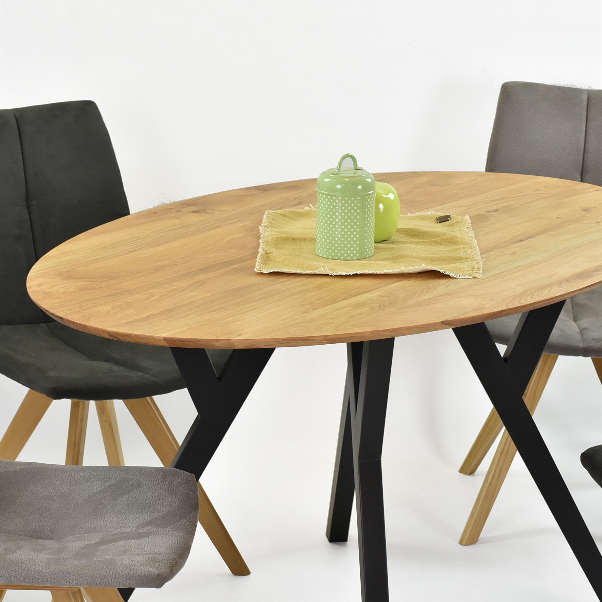 Ovaler Esstisch Wildeiche mit schwarzen Beinen 140x90 cm
