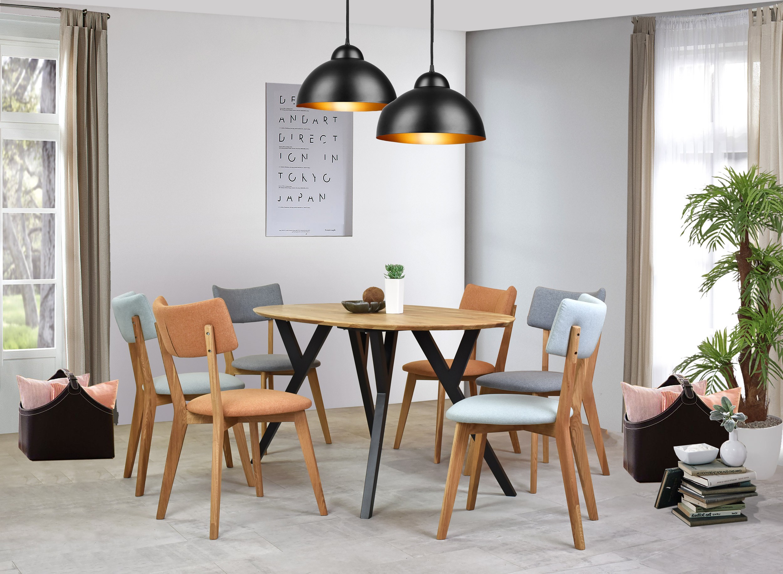 Eichenholz ist ein königliches Material mit hervorragenden Eigenschaften und garantiert perfekte Naturmöbel. Eine wunderschöne natürliche Struktur, die im Laufe der Jahre zu einzigartiger Schönheit heranreift. Das Holz wird sorgfältig getrocknet, wir wählen Wildeiche aus, was ein echtes authentisches Stück Natur in Ihrem Esszimmer garantiert. Das Holz selbst ist ein hartes Hartholz, daher ist es schwierig, Rillen oder andere Kratzer darin zu erzeugen. Wir achten darauf, unsere Umwelt zu schonen, deshalb ist das gesamte Holz mit FSC-Zertifikat versehen.