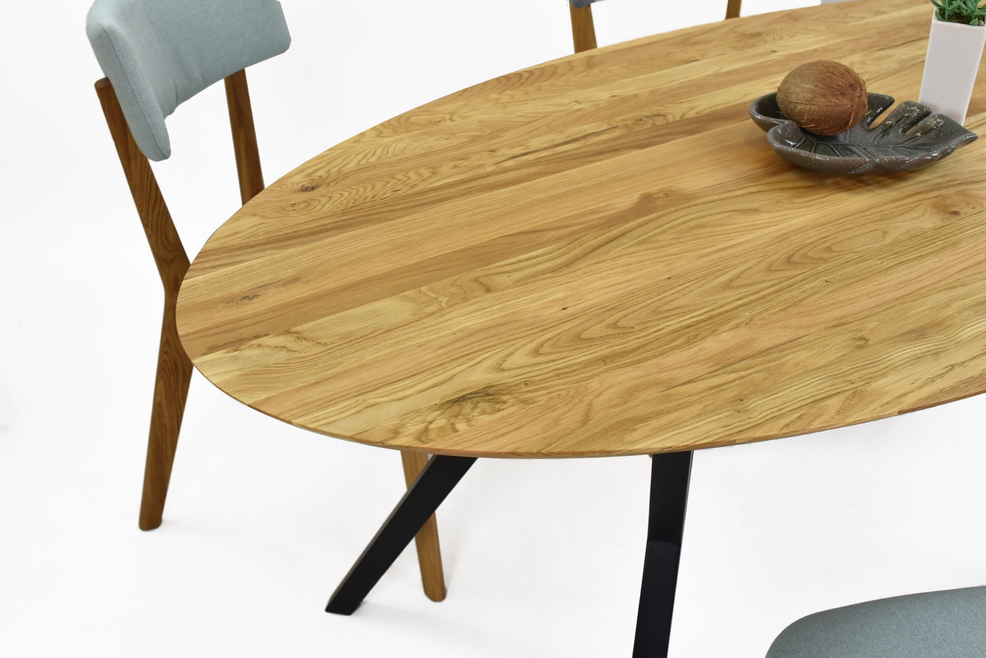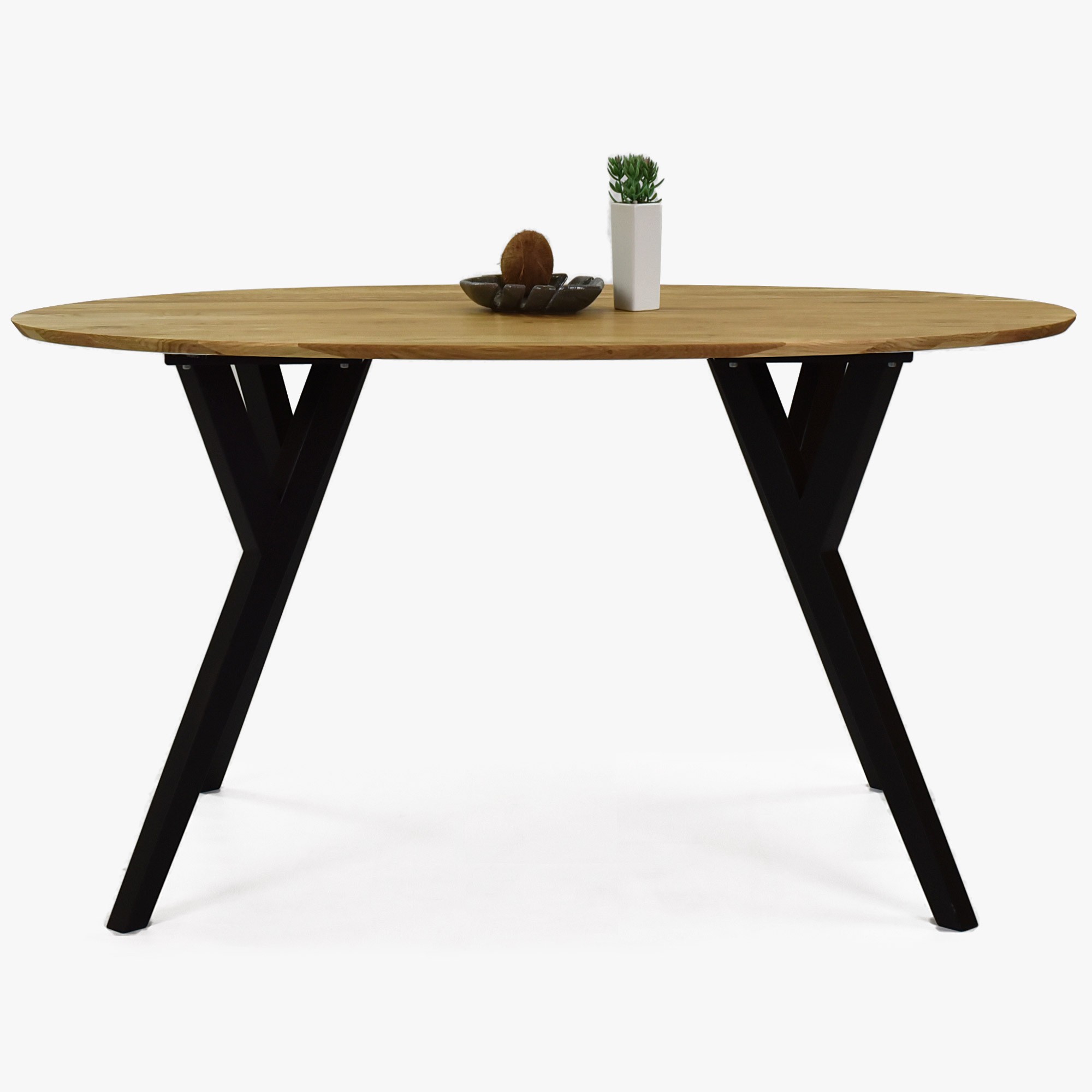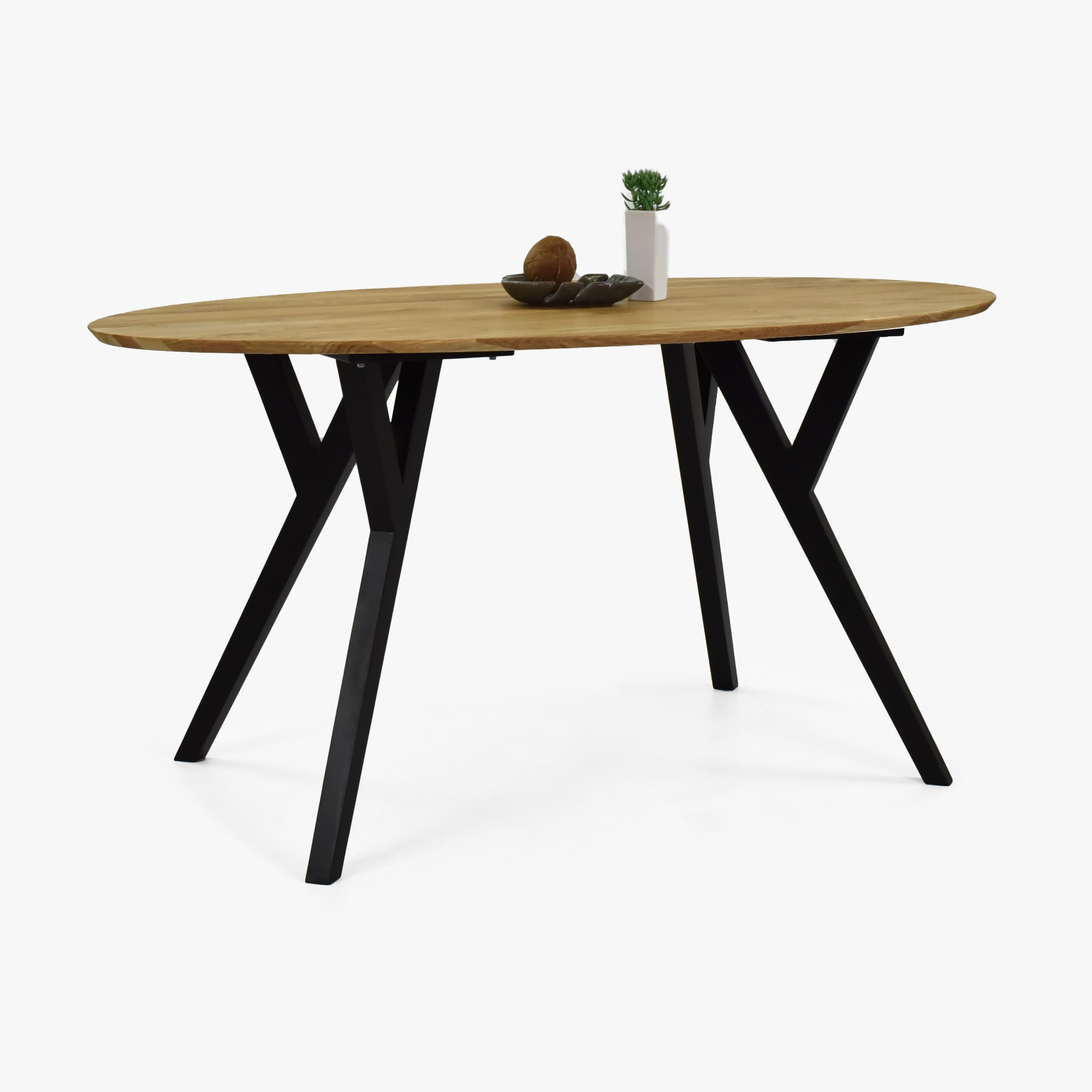 Ovaler Eichentisch 160x90 cm mit schwarzen Beinen