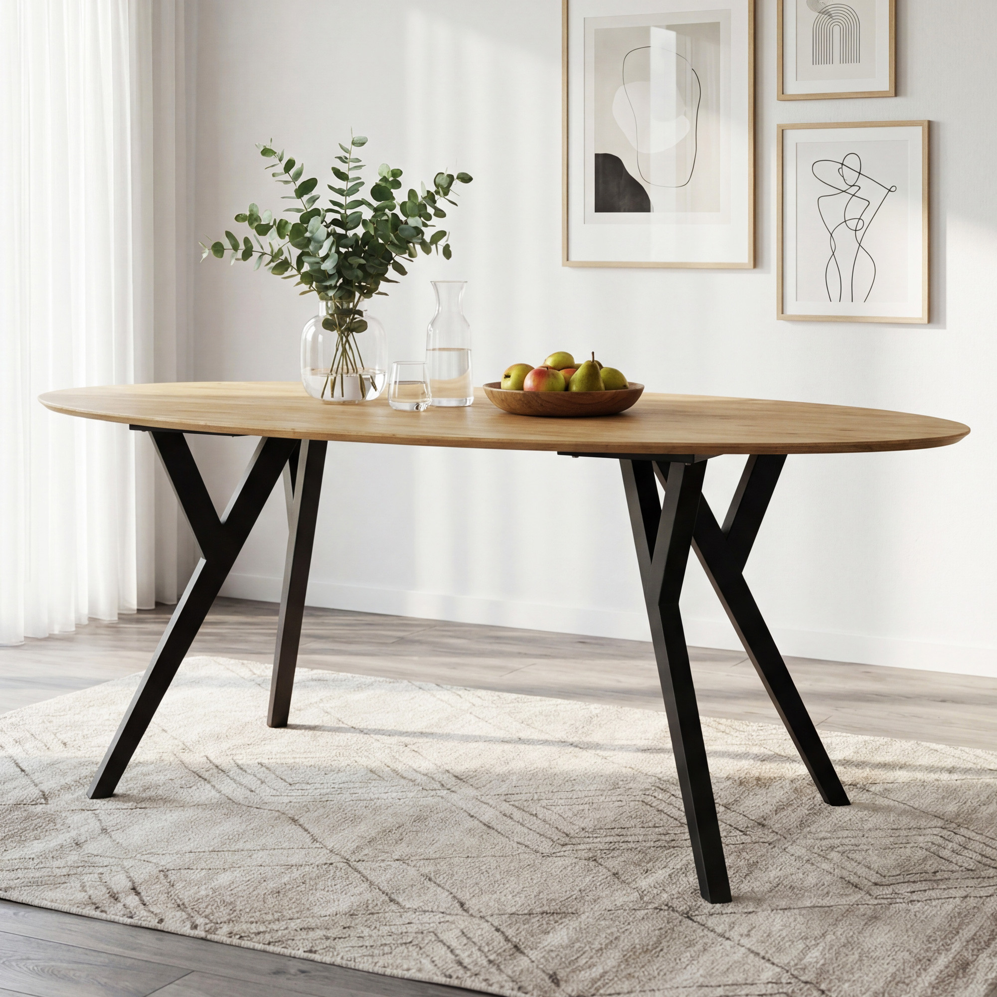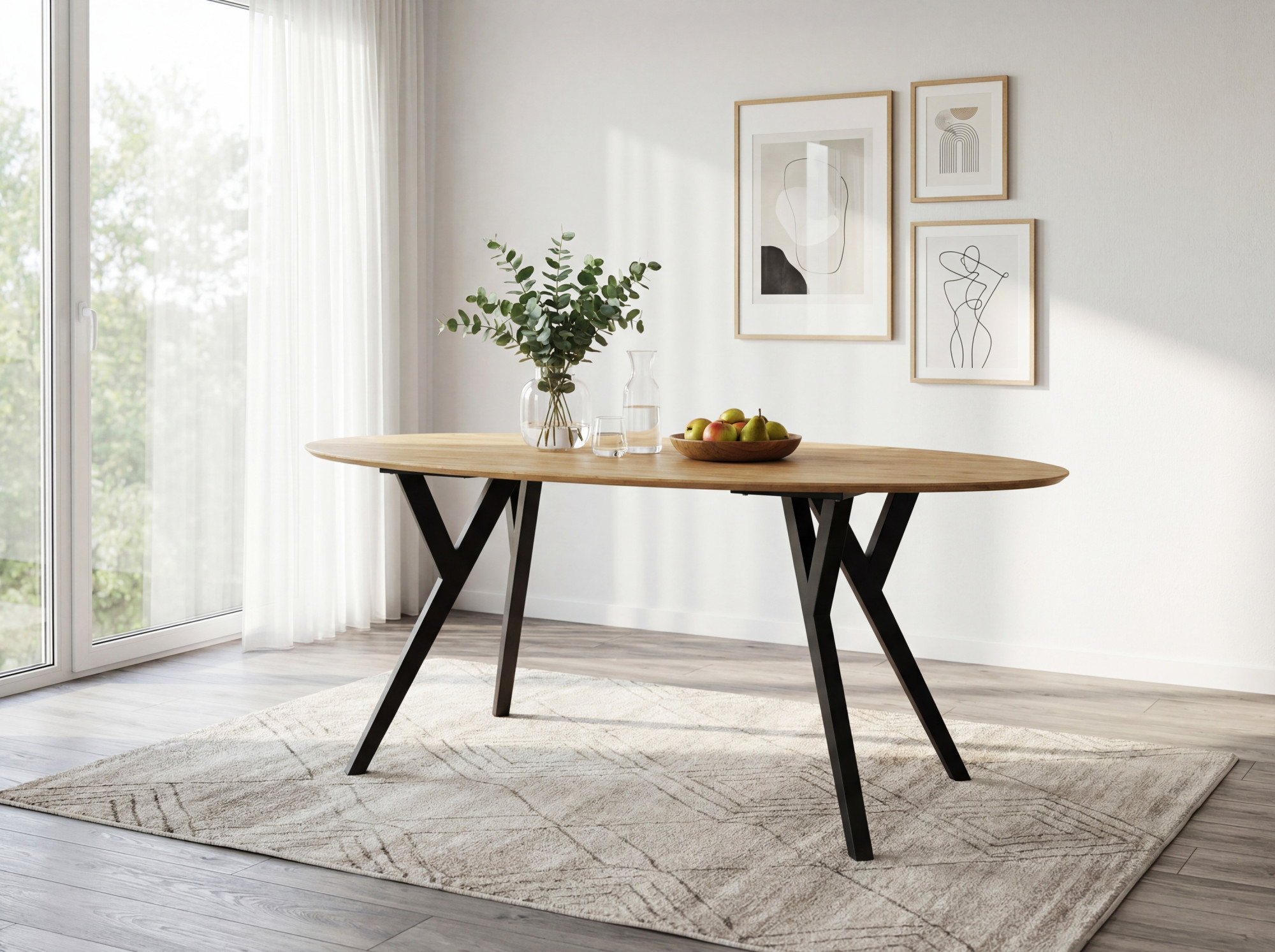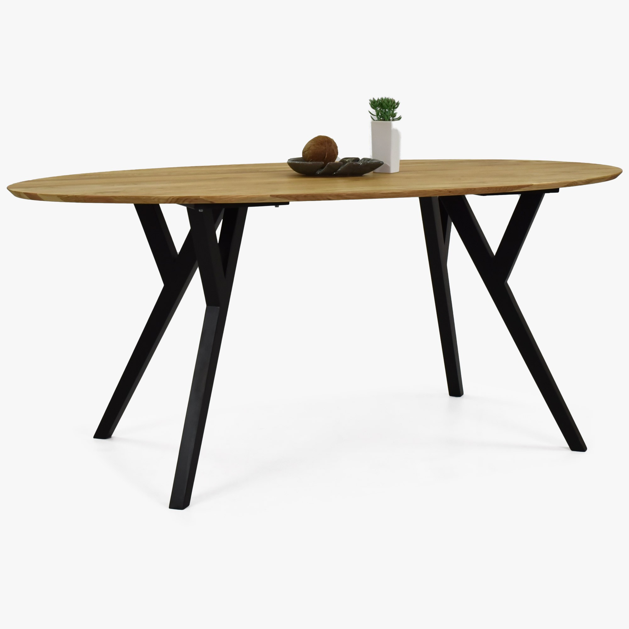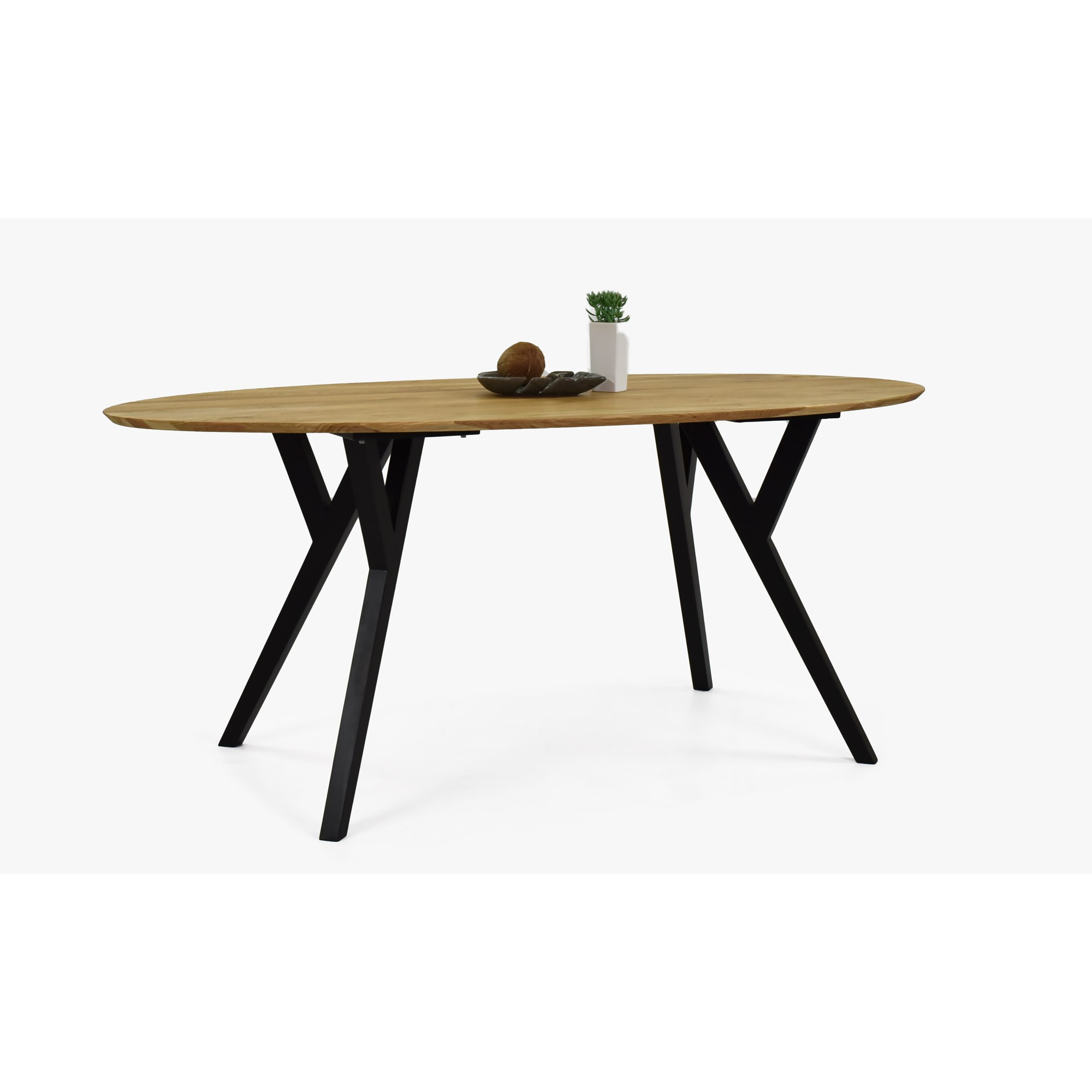 Eichen ovaler Tisch Mak mit schwarzen Beinen 180 x 90 cm – massiver Esstisch für 6 Personen