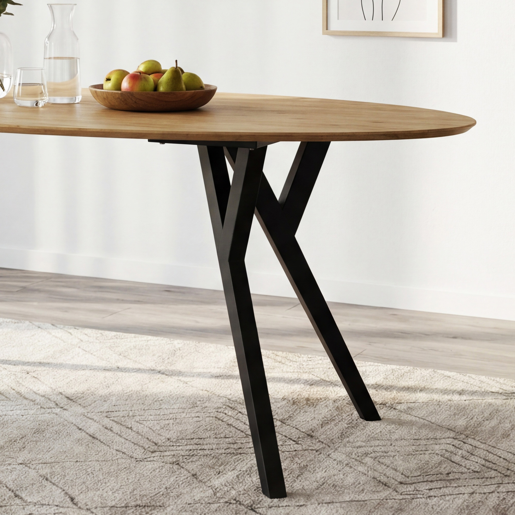 Ovaler Esstisch Wildeiche 180x90 cm mit schwarzen