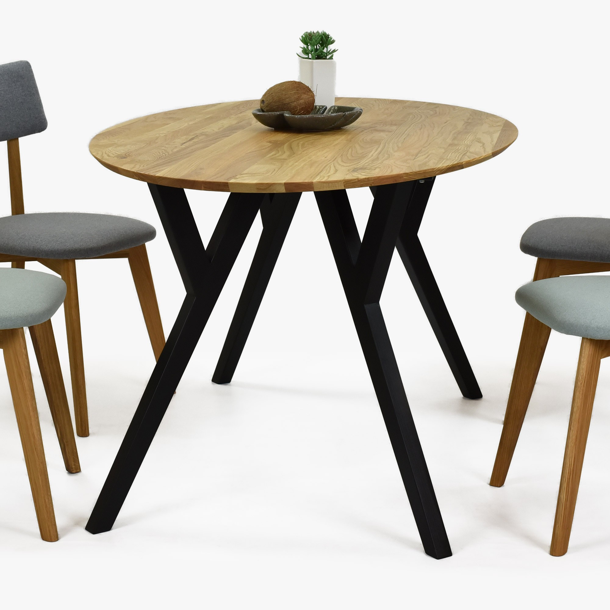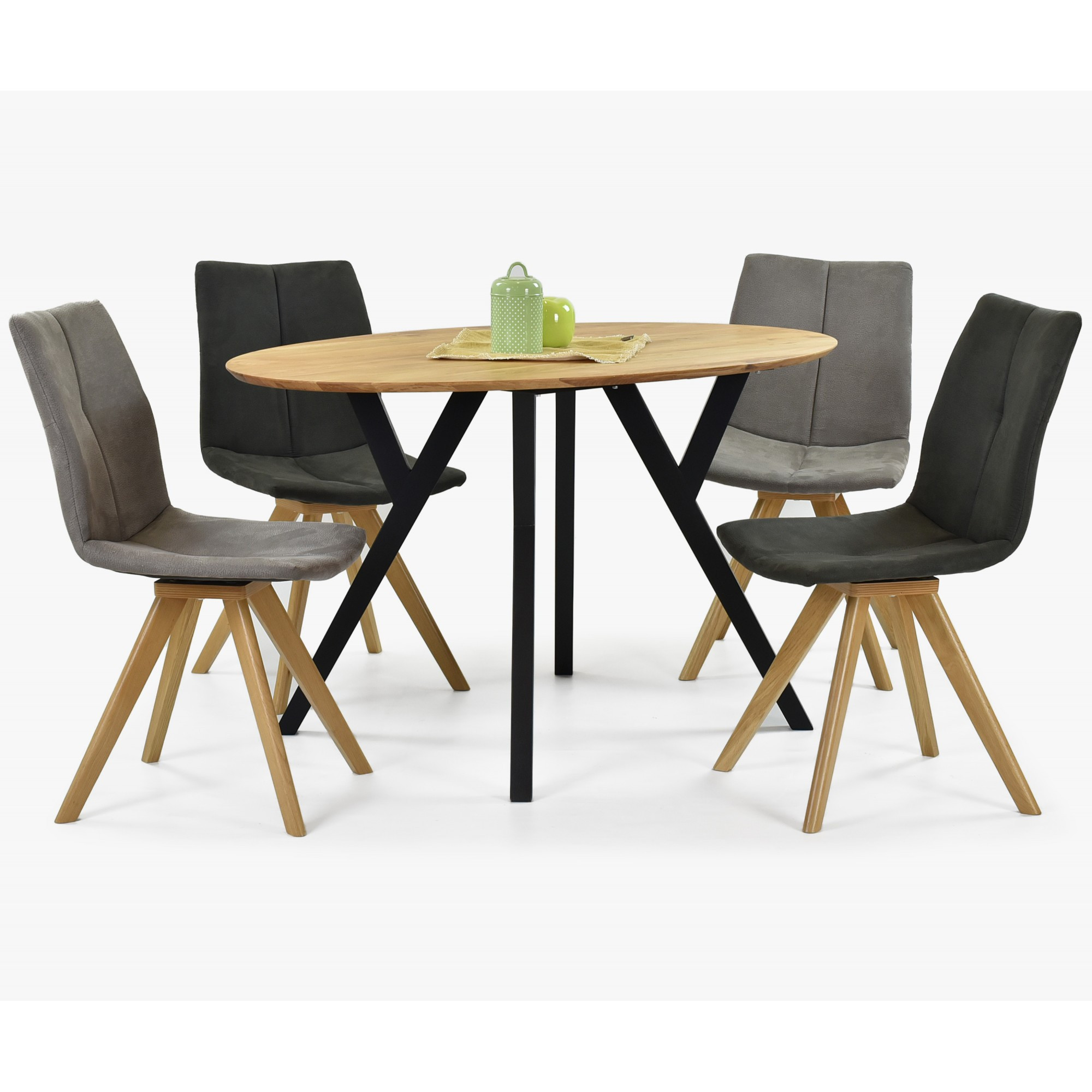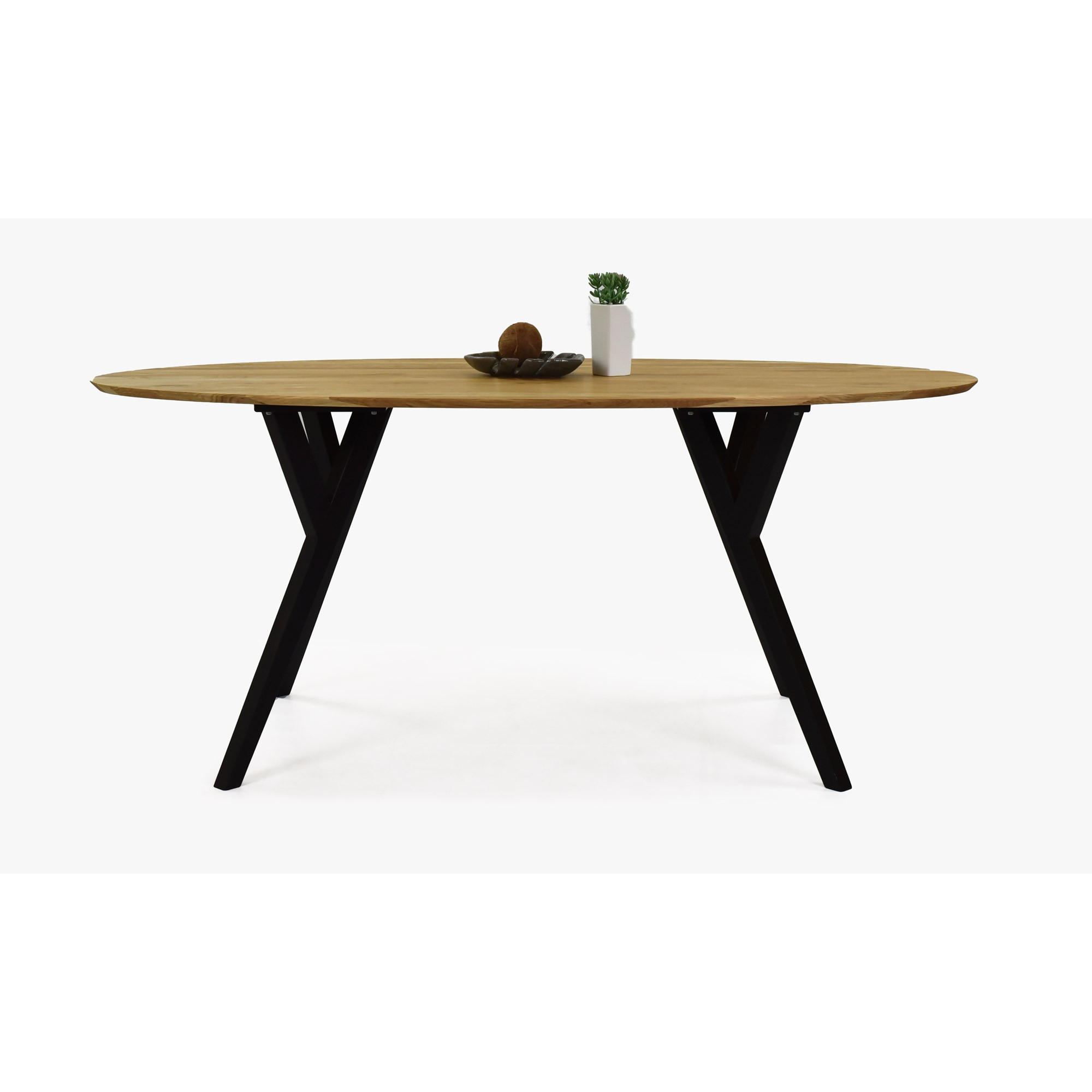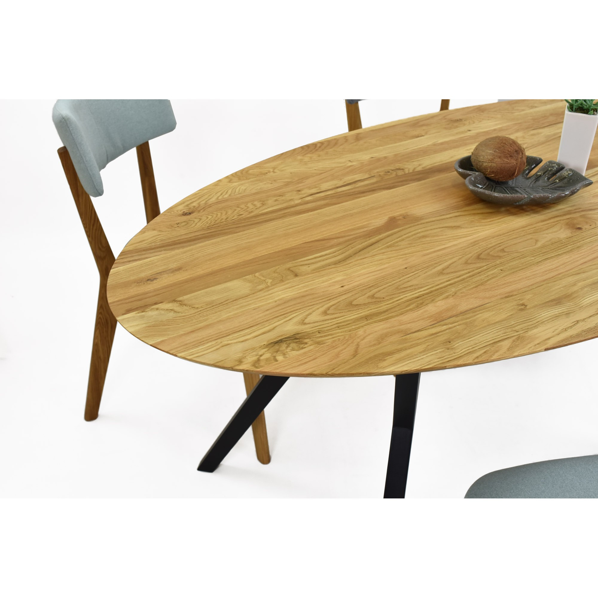 Suchen Sie einen eleganten Esstisch, der zum Mittelpunkt Ihres Interieurs wird? Wir stellen Ihnen den eichen ovalen Tisch Mak mit einem einzigartigen Design vor, der massive Eichentischplatte mit modernen schwarzen Metallbeinen kombiniert. Das Ergebnis ist ein stilvolles und zeitloses Möbelstück, das perfekt in moderne und skandinavische Einrichtungen passt. Das verwendete Holz ist wilde Eiche, deren Merkmal eine wunderschöne natürliche Struktur mit authentischen Astlöchern ist, die jedem Tisch einen einzigartigen Charakter verleihen.