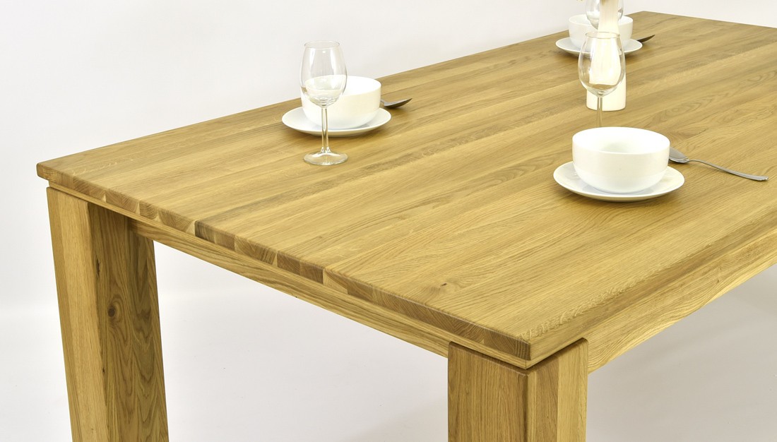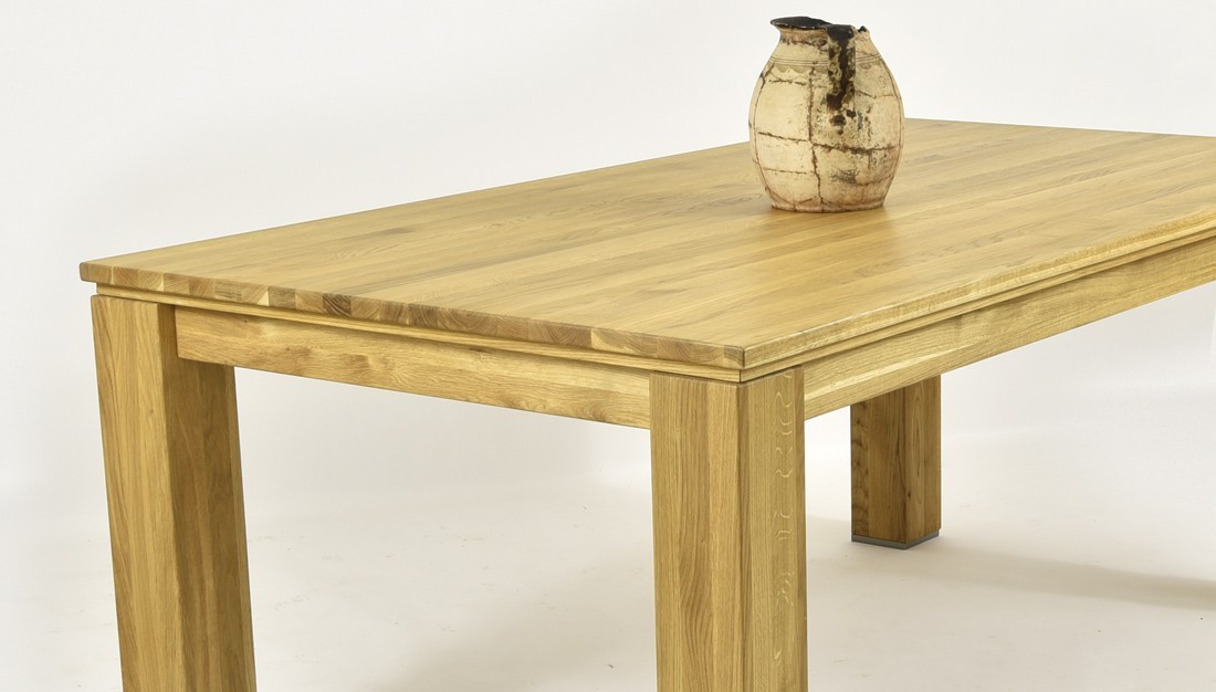 Genießen Sie die familiäre Atmosphäre an einem massiven Eichen Tisch! Er verschönert Ihr Interieur und jedes Ergebnis Ihrer kulinarischen Bemühungen schmeckt Ihnen dadurch umso besser! Massiver Esstisch besteht aus natürlicher Eiche und ist nur mit Öl und Wachs behandelt, so behält er die Schönheit seiner natürlichen Struktur. Diese Oberflächenbehandlung schützt das Möbelstück zudem vor kleinen mechanischen Beschädigungen. Der Esstisch ist pflegeleicht. Schmutz einfach mit einem feuchten Tuch abwischen!