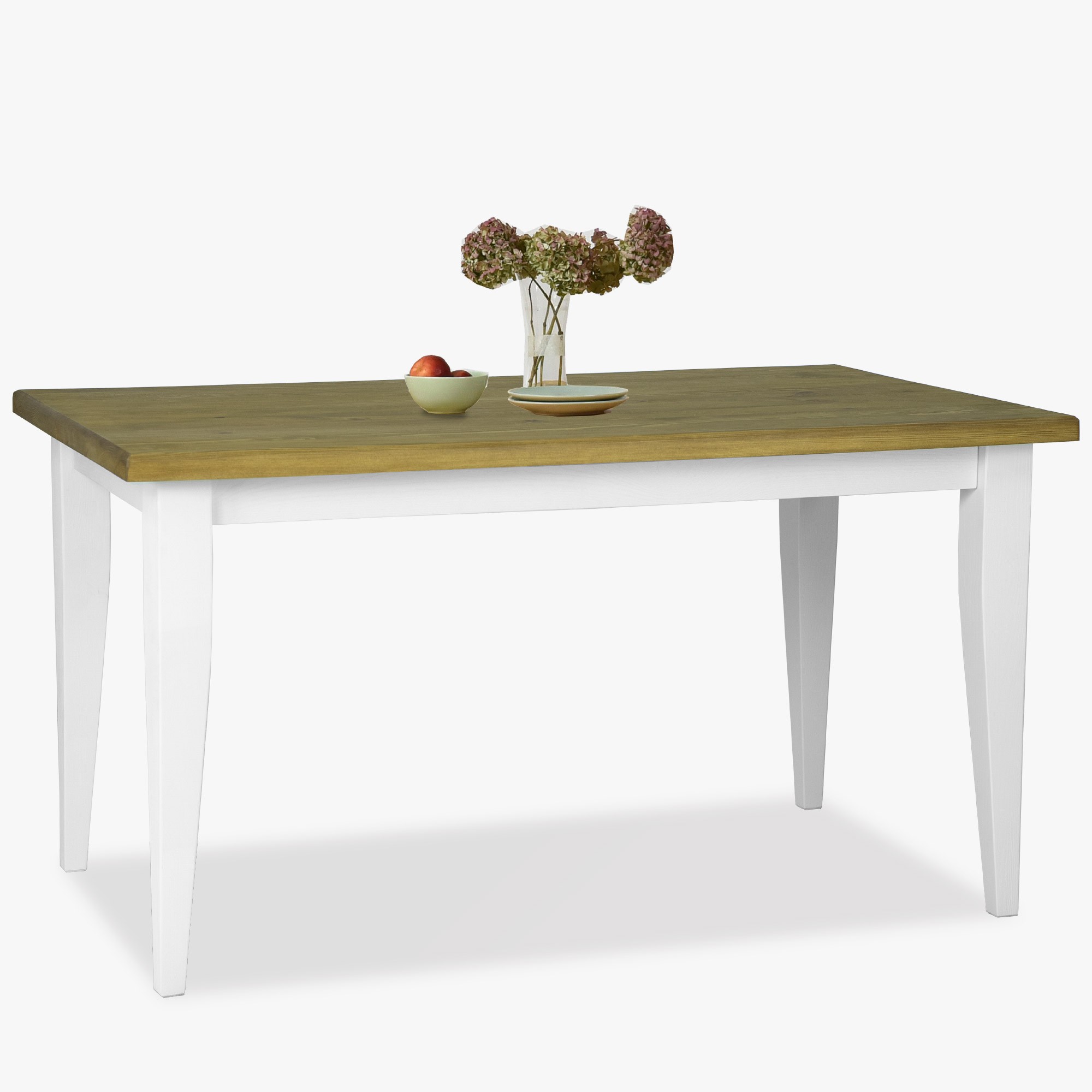 Massiver Esstisch Provence Kiefernholz Weiß-Braun 140x80 cm