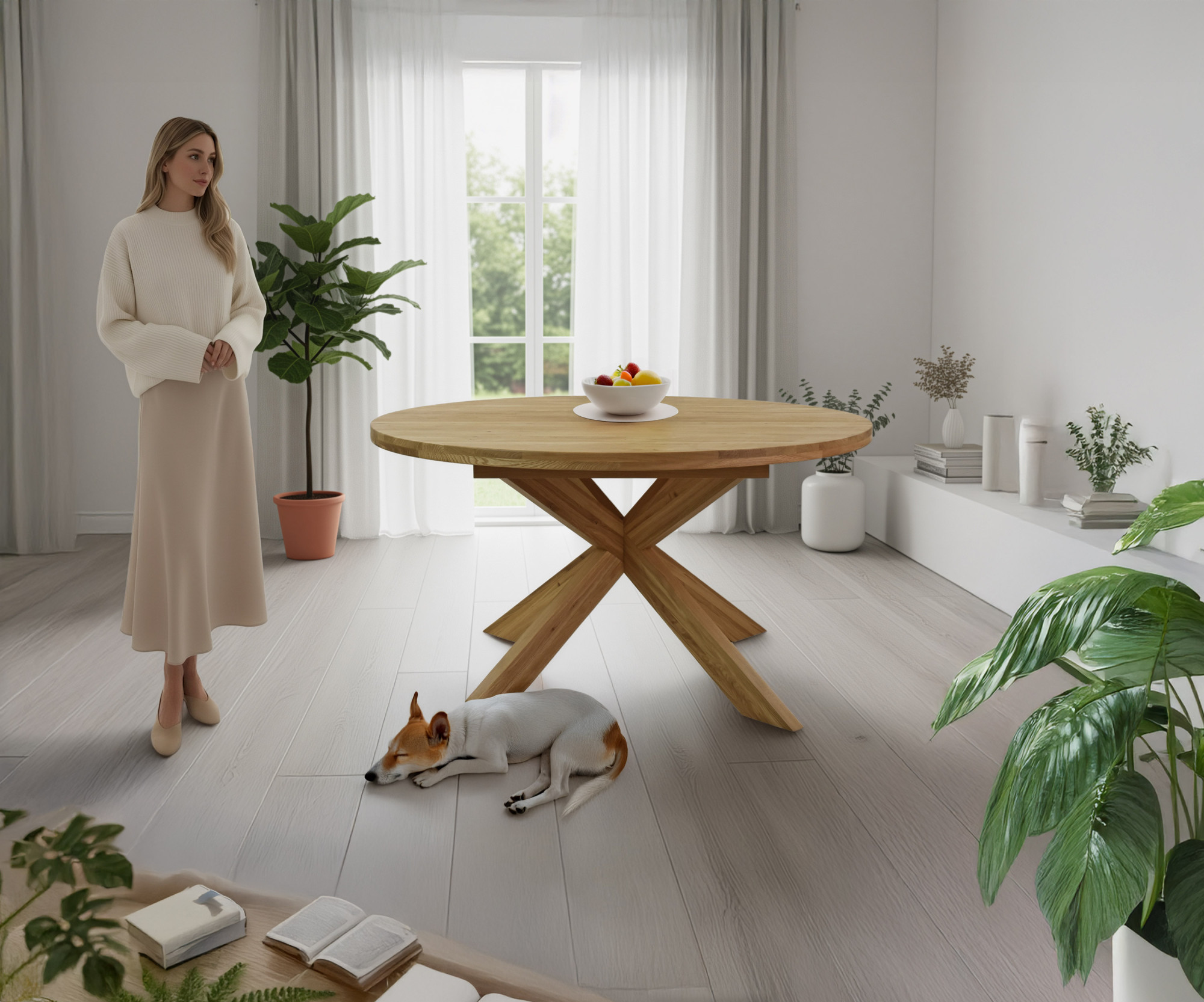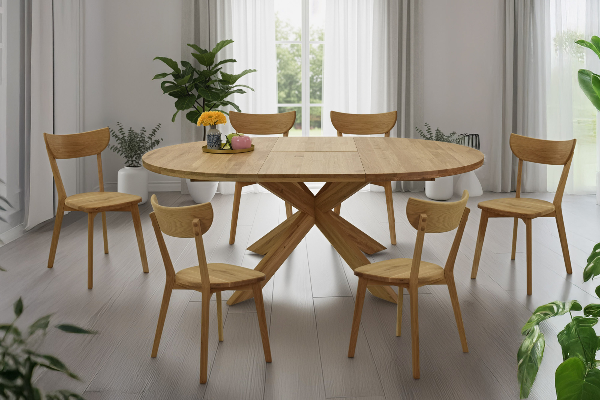 * Auf dem Bild der runde Eichentisch Holger und der Eichenstuhl Eva
