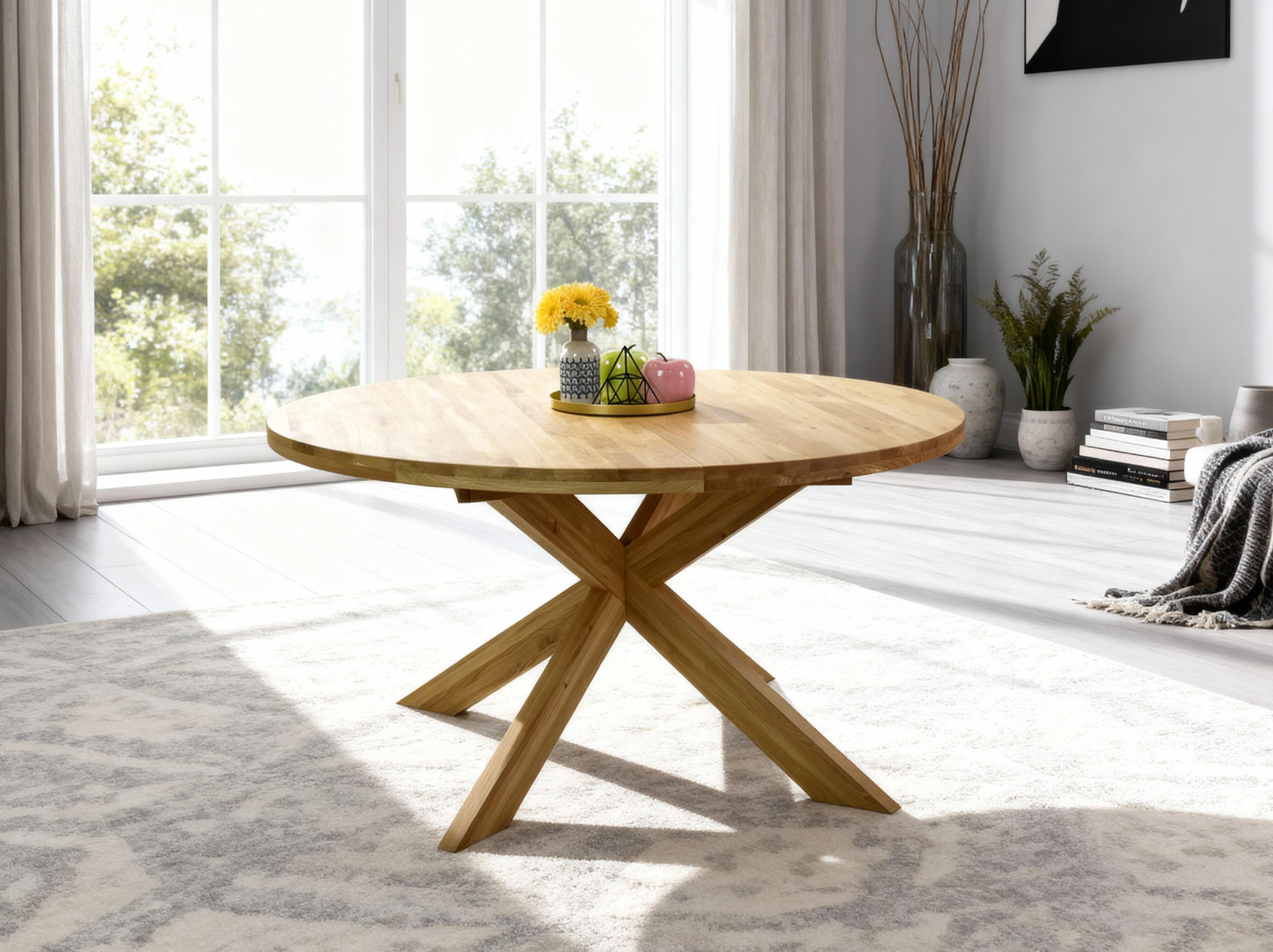 Ausziehbarer runder Esstisch Eiche massiv 140-190 cm