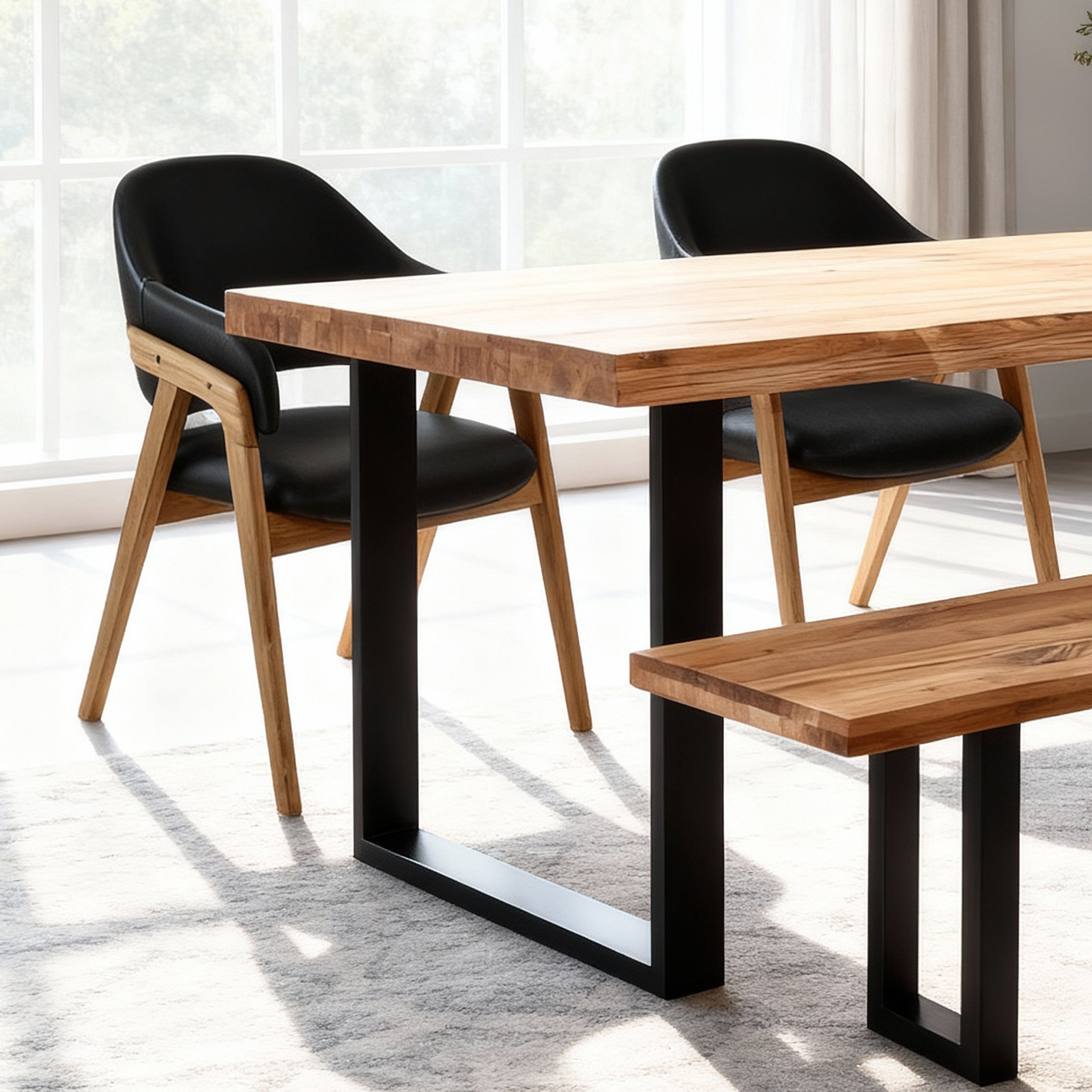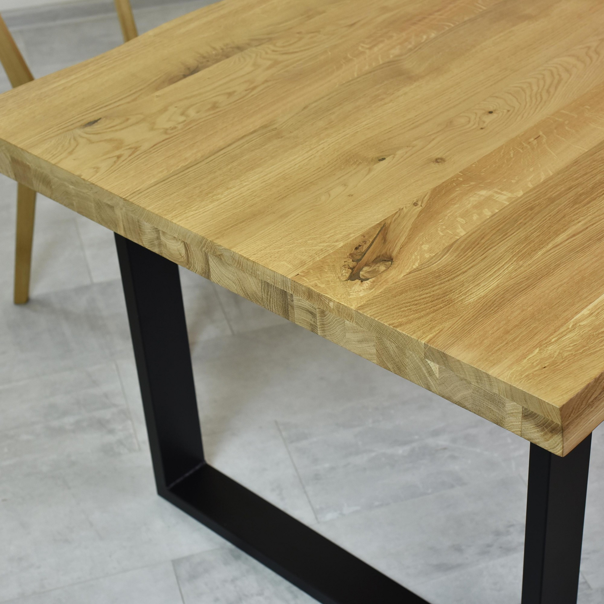 Eichenholz ist ein königliches Material mit hervorragenden Eigenschaften und eine Garantie für perfekte natürliche Möbel. Wunderschöne natürliche Struktur, die im Laufe der Jahre zu einzigartiger Schönheit reift. Das Holz ist sorgfältig getrocknet, wir wählen Wildeiche aus, was ein wirklich authentisches Stück Natur in Ihrem Esszimmer garantiert. Das Holz selbst ist ein hartes Holz, daher ist es schwierig, Rillen oder andere Kratzer zu erzeugen. Wir legen Wert auf den Schutz unserer Umwelt, deshalb ist sämtliches Holz mit FSC-Zertifikat.