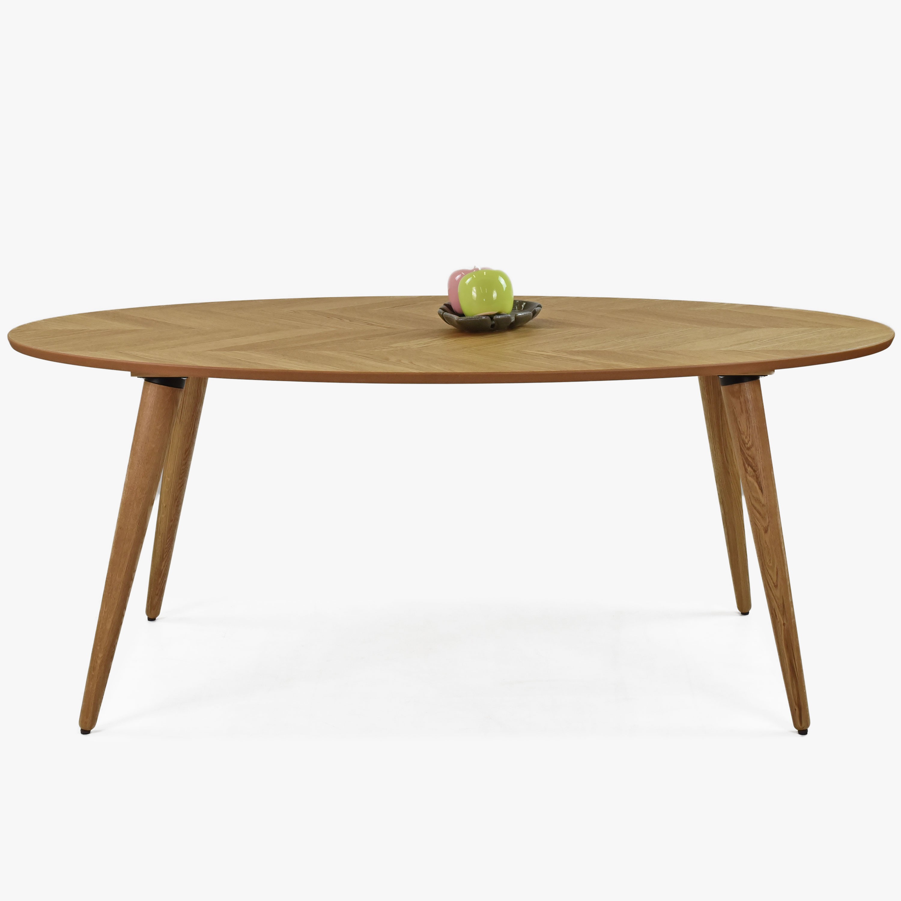 Ovaler Esstisch 190 x 95 cm, Farbe Eiche mit Tischplatte "Fischgrät" ("Herringbone")