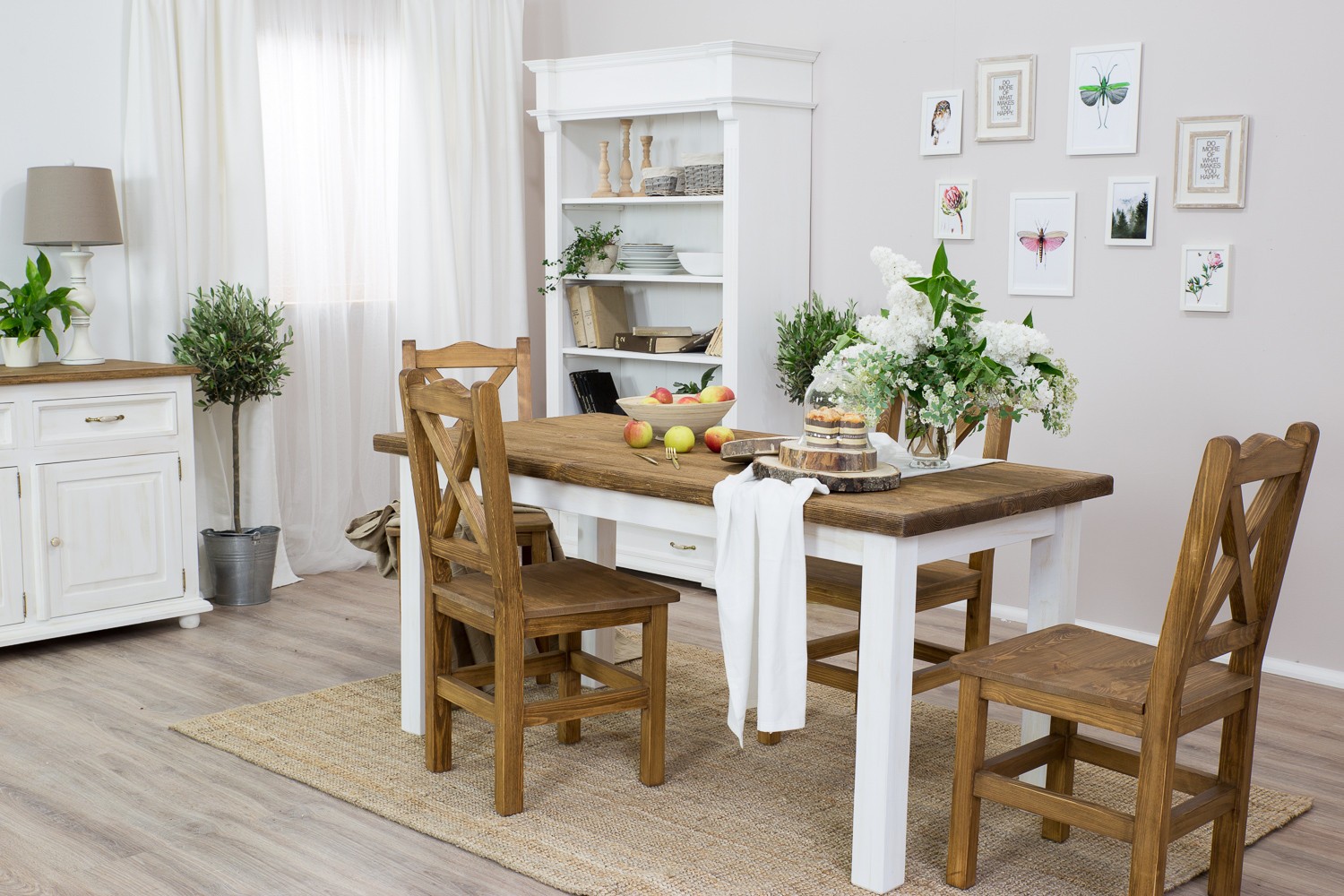 Esstisch Provence stellt ein originelles Möbelstück dar, das mit seinem einzigartigen Charakter überzeugt. Wenn Sie sich entschieden haben, Ihren Essbereich im Provence-Stil auszustatten, ist es ganz einfach, den Esstisch mit weiteren Elementen unserer Serie zu kombinieren! Ein unverzichtbares Zubehör sind Stühle im provenzalischen Stil! Den Mittelpunkt des Essbereichs bildet ein luxuriöser Büffetschrank, und auch ein Holzregal passt sicherlich sehr gut. Lassen Sie sich inspirieren und schaffen Sie mit der Provence Kollektion ein wunderschönes Interieur im Stil des französischen Landhauswohnens!