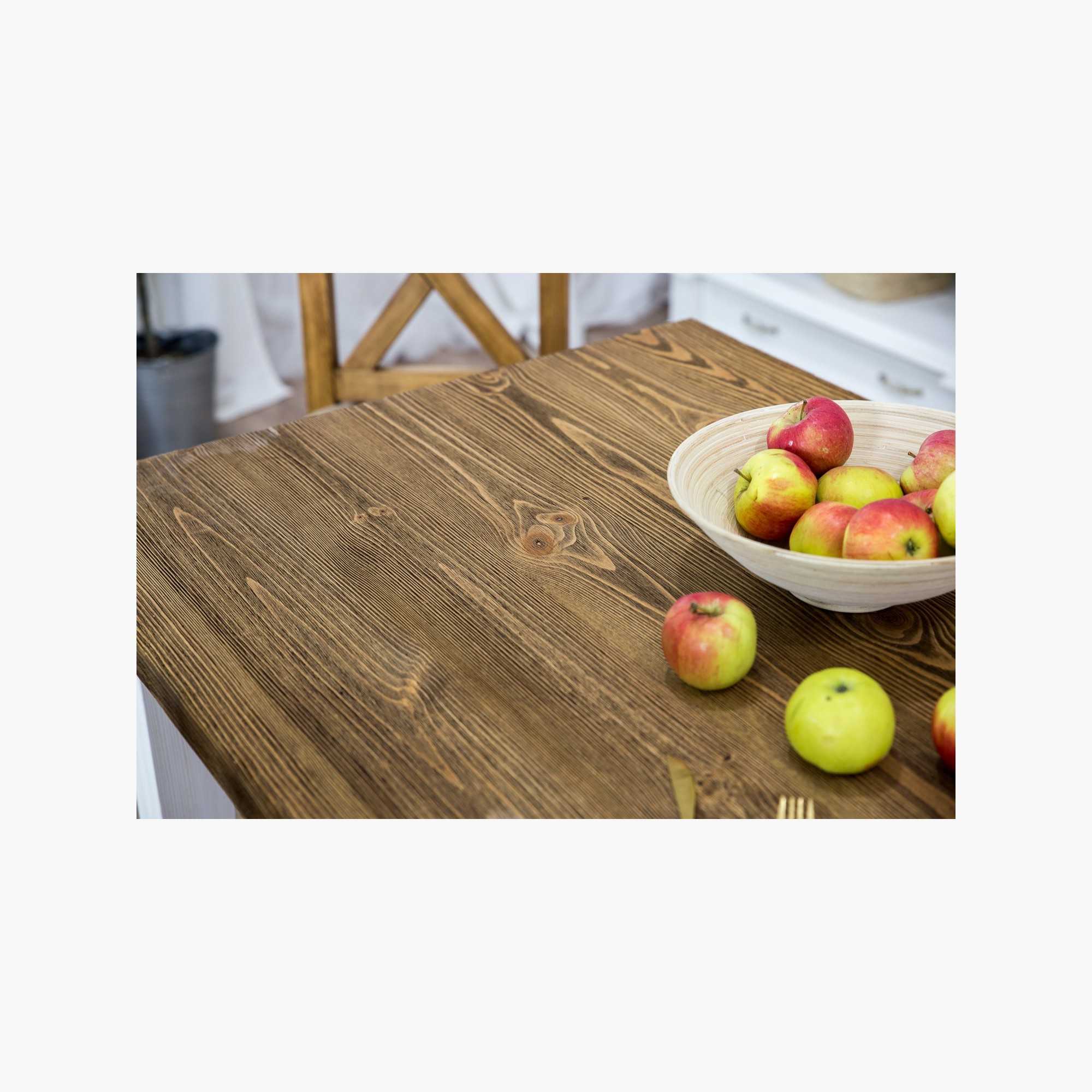 Esstisch Provence ist in vier verschiedenen Größen verfügbar, so dass Sie die ideale Wahl entsprechend den räumlichen Gegebenheiten Ihres Essbereichs und der Anzahl der Esser treffen können. Zur Auswahl stehen folgende Tischmaße: Der Esstisch ist aus hochwertigem massivem Kiefernholz gefertigt, das besonders wegen seiner Elastizität und charakteristischen Maserung beliebt ist. Der Esstisch verfügt über perfekte Stabilität und eine robuste Konstruktion. Beine mit einer Stärke von bis zu 8 x 8 cm gewährleisten hohe Stabilität und Festigkeit. Die Tischplatte ist bis zu 4 cm dick und mit der Methode des Bürstens behandelt. Durch diese Methode wird der weichere Teil des Holzes entfernt, sodass die härtere Komponente hervorsticht. Das Ergebnis ist eine 3D-Holzstruktur, die sich sehr angenehm anfühlt und interessant für das Auge ist. Die Premium-Ausführung imitiert den Provence-Stil perfekt!