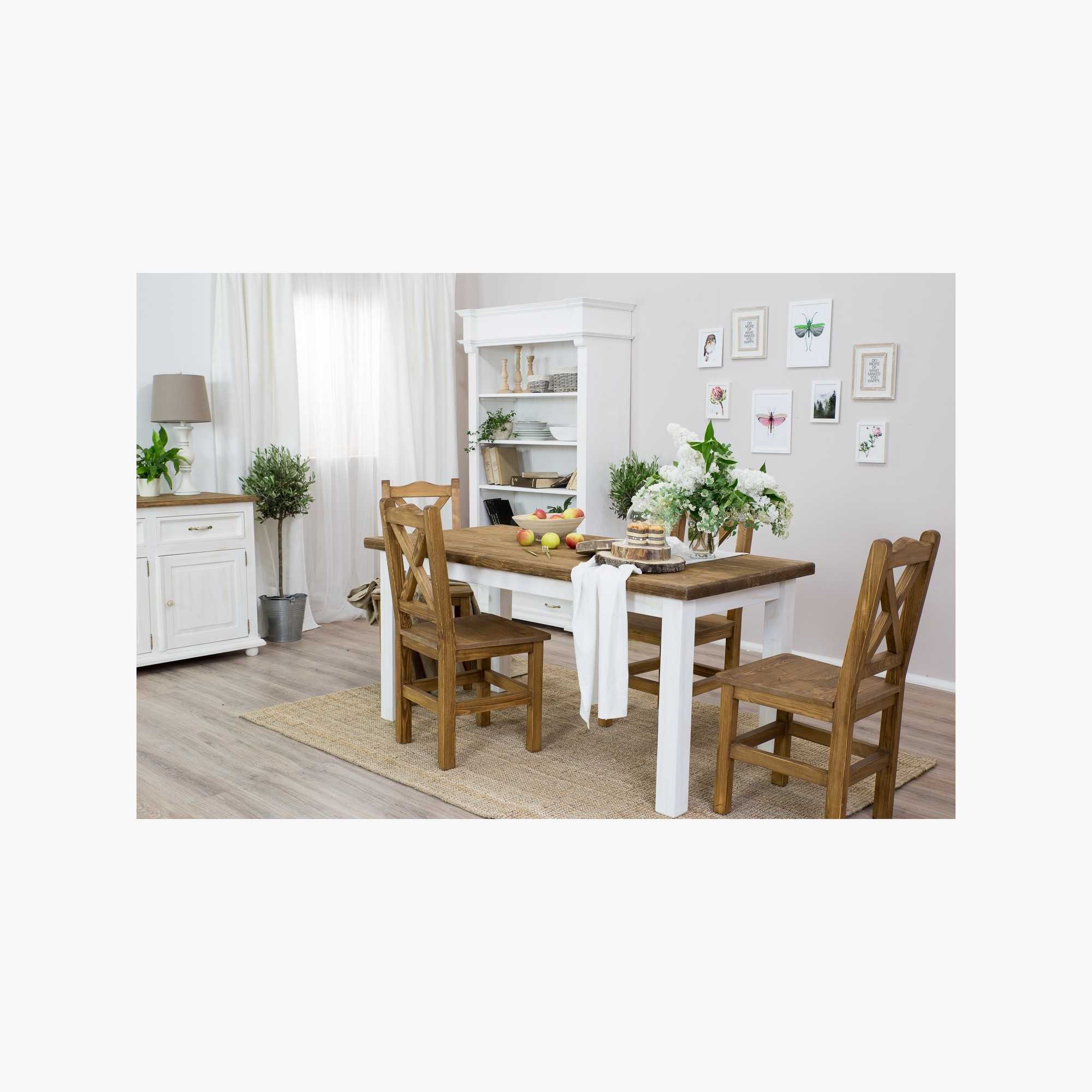 Esstisch Provence ist ein originelles Möbelstück, das mit einem einzigartigen Charakter überzeugt. Wenn Sie sich entschieden haben, den ganzen Essbereich im Provence-Stil einzurichten, ist es ein Leichtes, den Esstisch mit weiteren Elementen unserer Serie zu kombinieren! Unverzichtbare Ergänzungen sind Stühle im provenzalischen Stil! Ein luxuriöser Geschirrschrank wird zum Blickfang im Esszimmer, und auch ein Holzregal passt hervorragend. Lassen Sie sich inspirieren und schaffen Sie mit der Provence Kollektion ein wunderschönes Interieur, das im Stil des französischen Landhauses gestaltet ist!