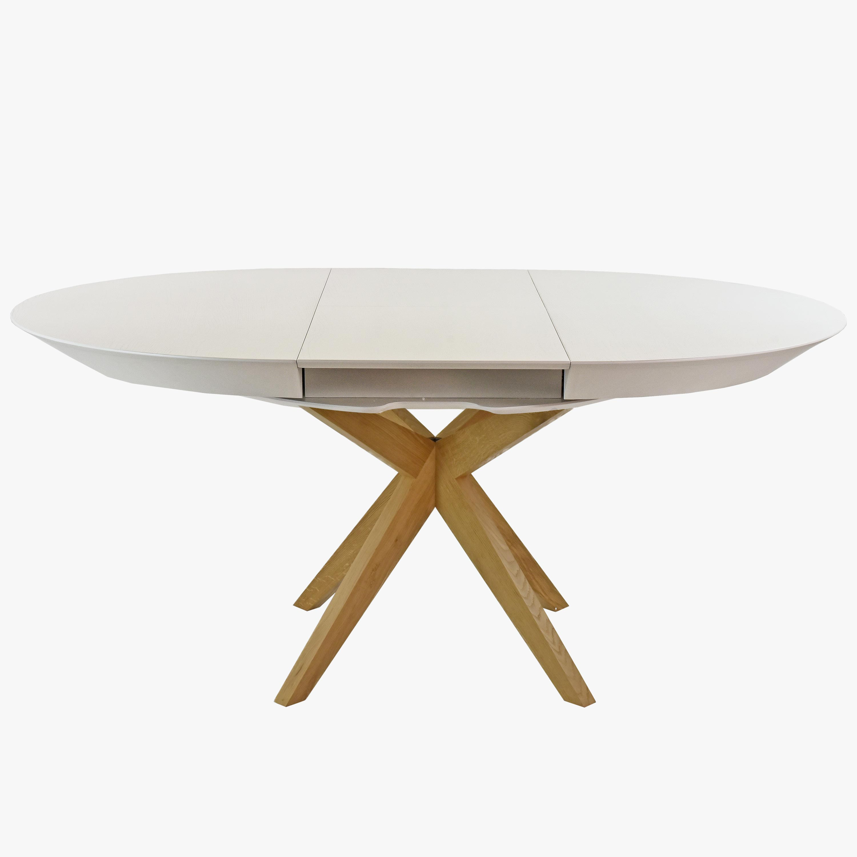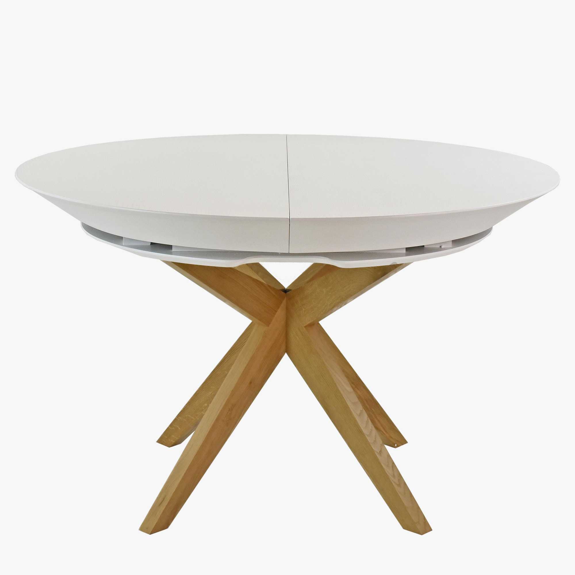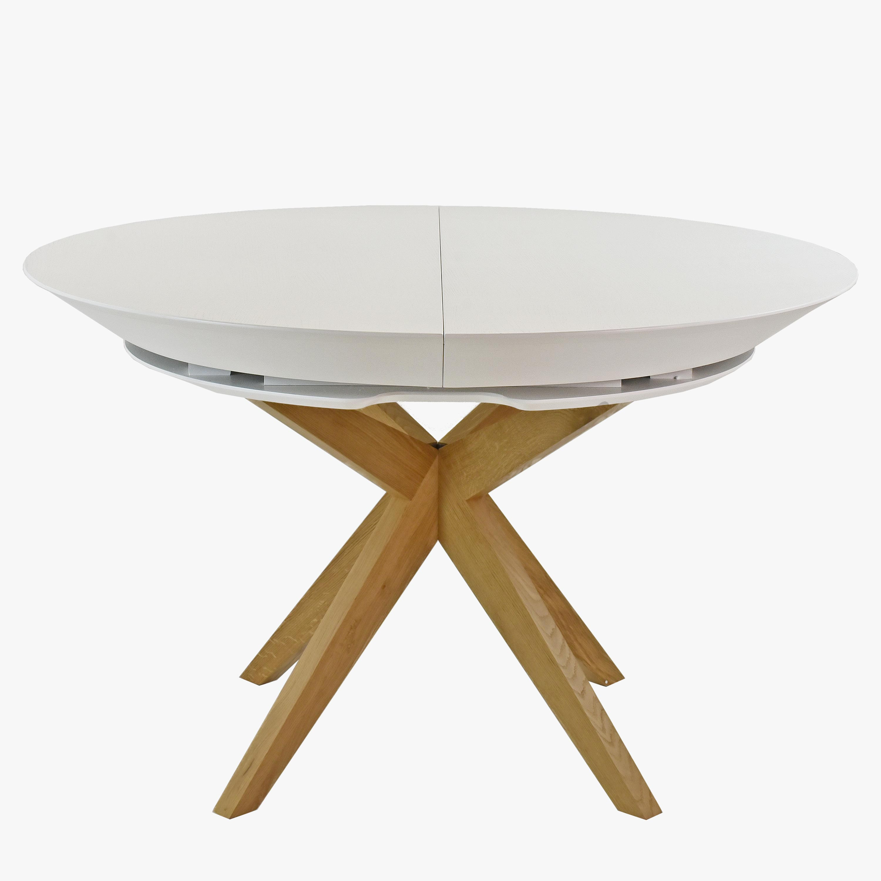 Runder Esstisch Weiß Eichenfurnier Ausziehbar Beine Eiche