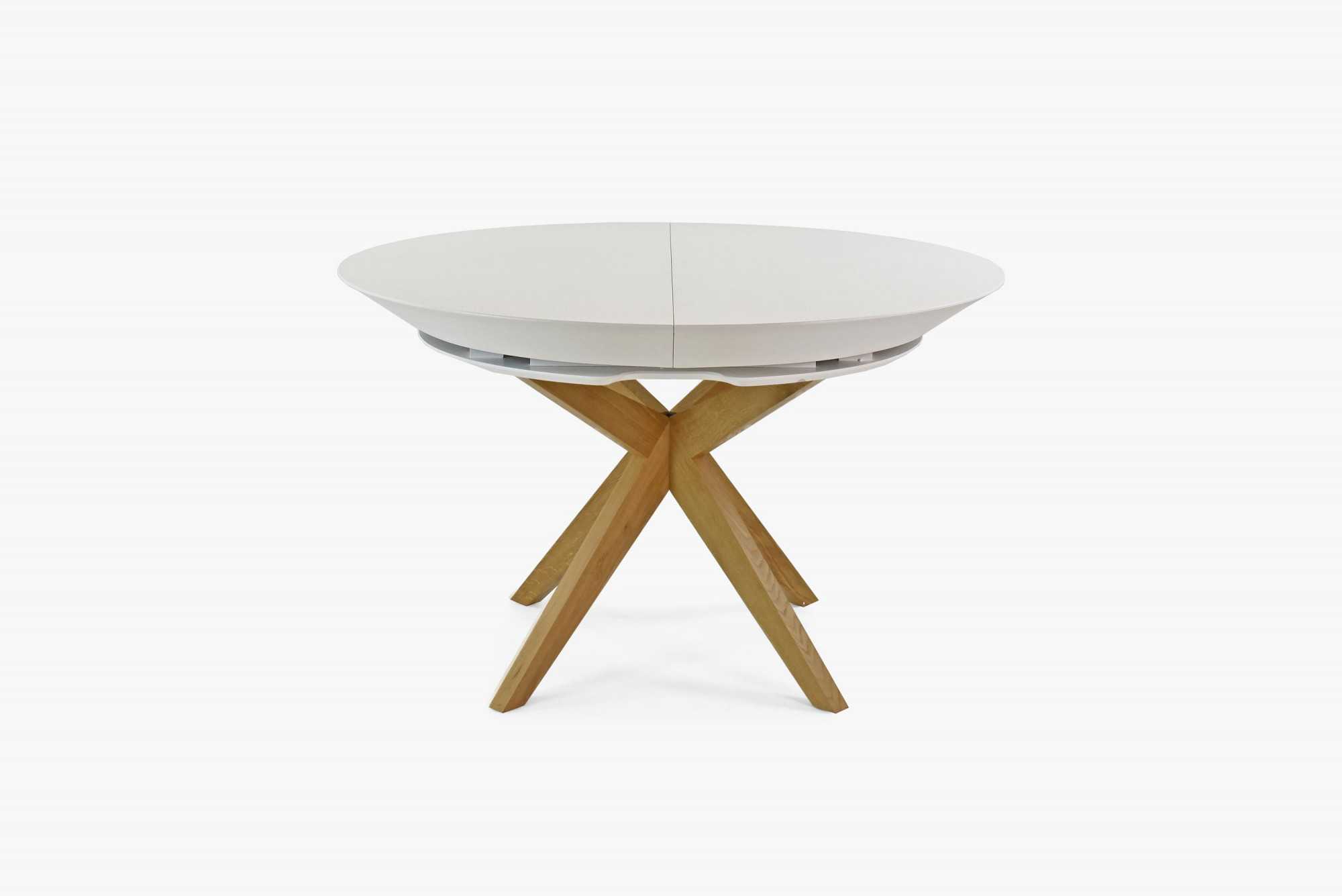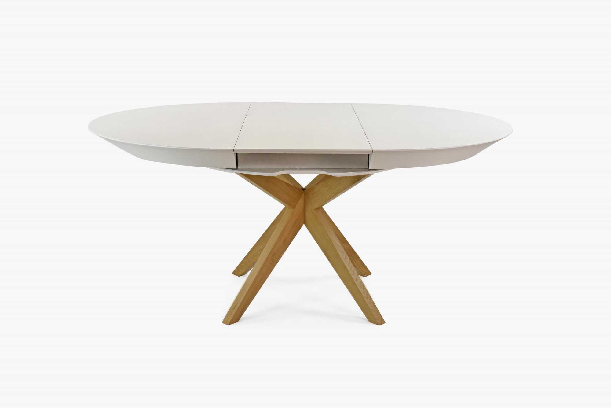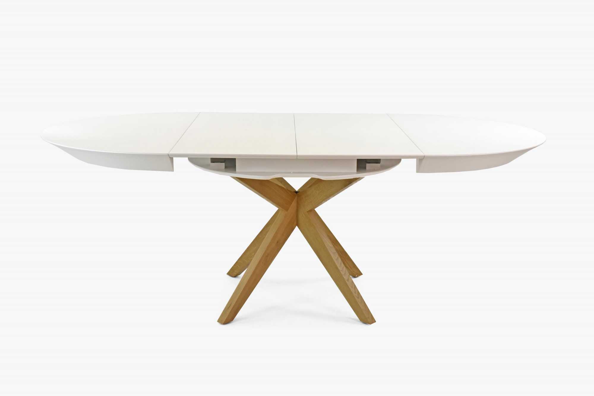 Runder Esstisch Weiß Eichenfurnier Ausziehbar Beine Eiche