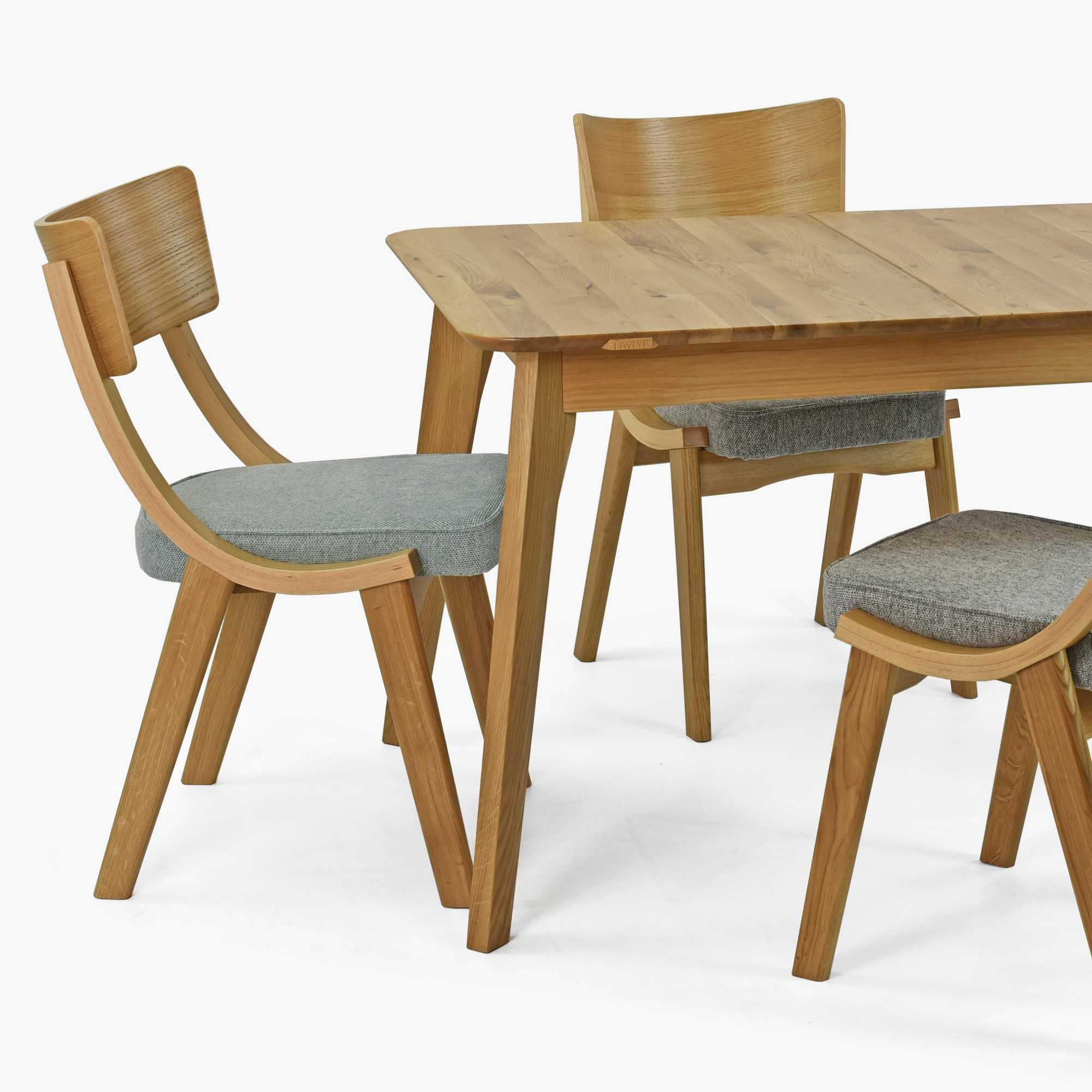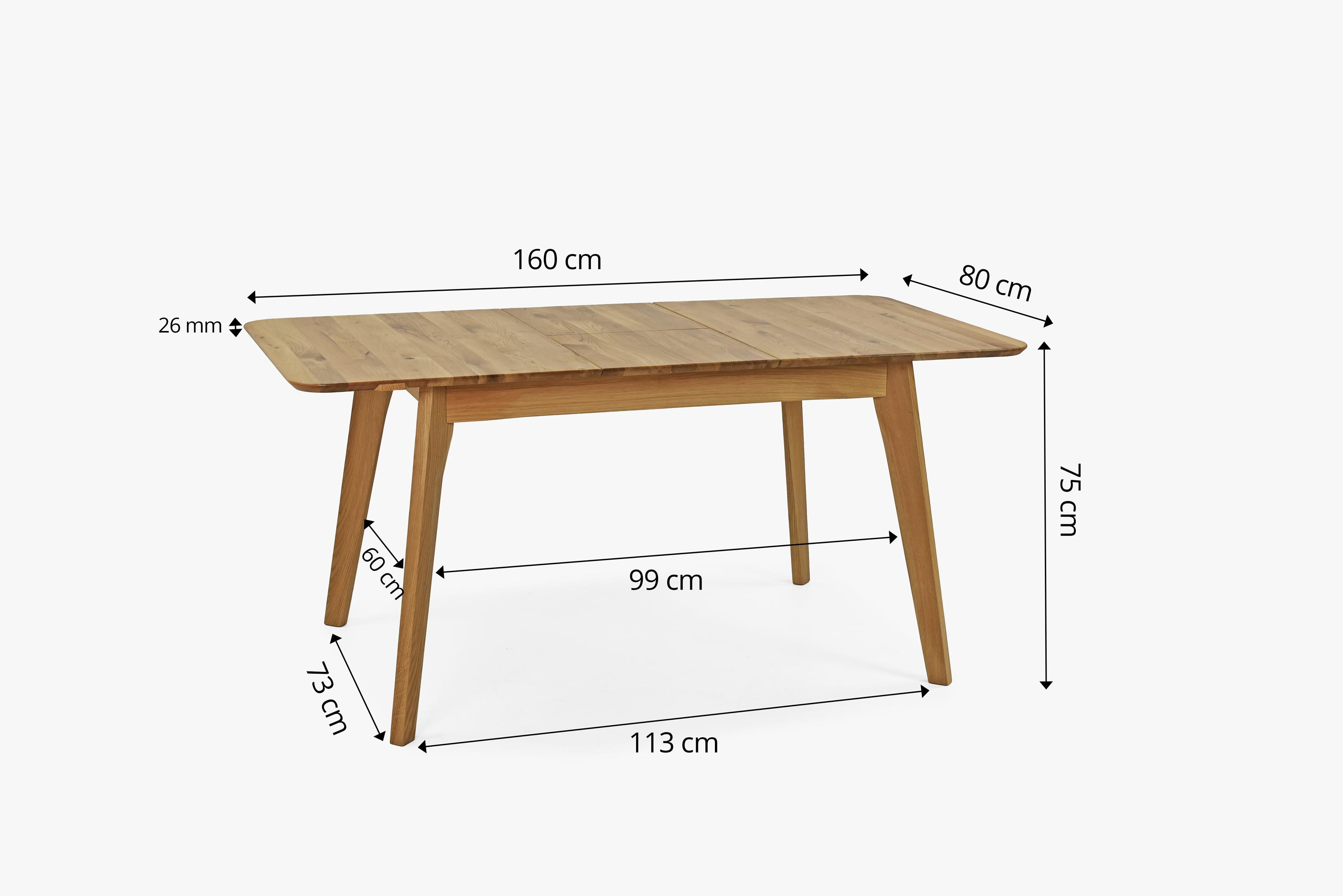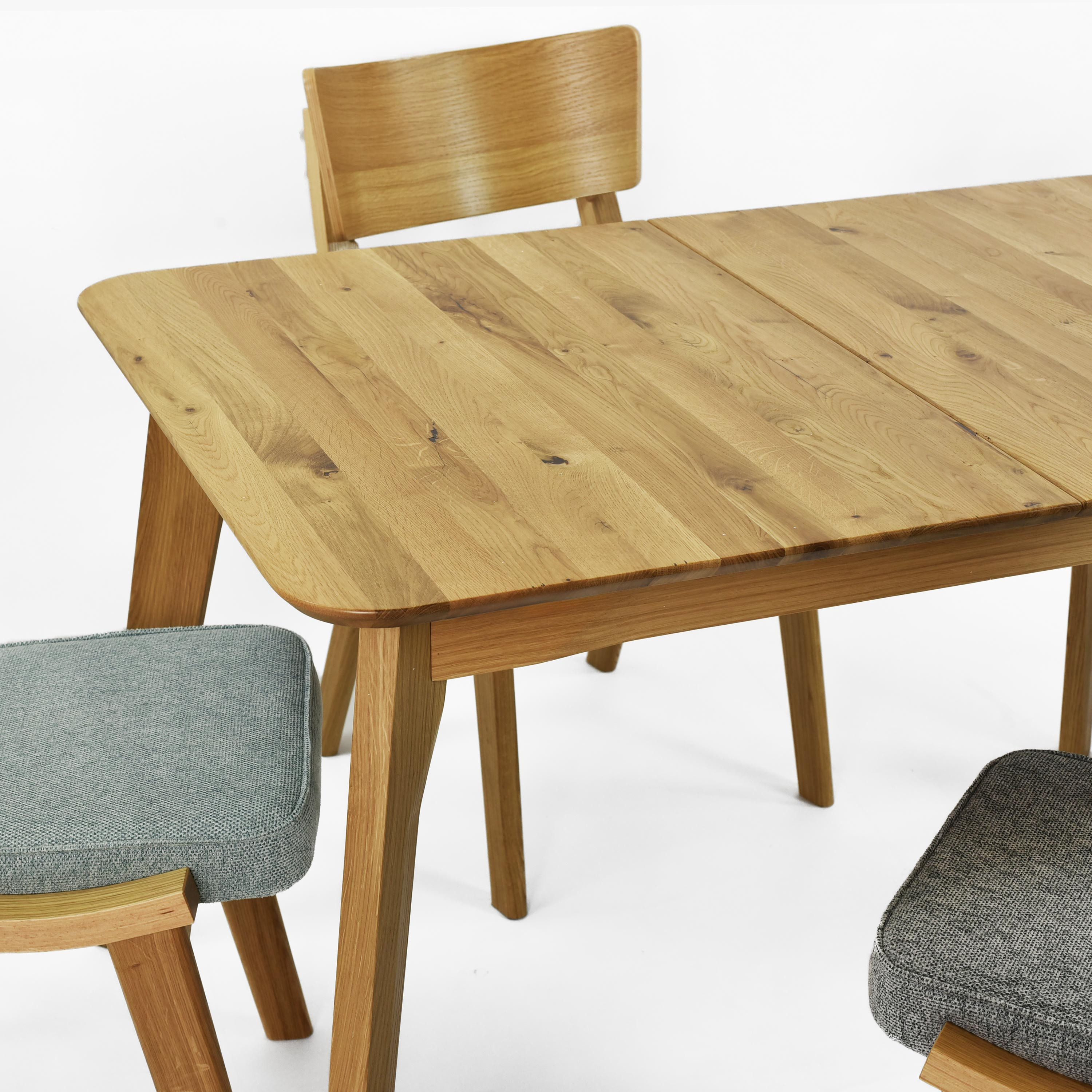 Entdecken Sie Perfektion und Eleganz mit unserem einzigartigen Esstisch, der für Naturliebhaber und langlebige Eleganz entworfen wurde. Hergestellt aus sorgfältig ausgewähltem massivem Eichenholz, bietet dieser Tisch eine Tischgröße von 120 x 80, die vor allem für kleinere Räume geeignet ist. Der Vorteil ist der im Tisch versteckte Ausziehteil, mit dem Sie innerhalb kurzer Zeit weitere 40 cm gewinnen. Insgesamt beträgt die Tischfläche ausgezogen 160 x 80 cm, was Platz für bis zu 6 Personen bietet. Die Oberflächenbehandlung mit matter Lackierung im natürlichen Eichenfarbton garantiert nicht nur ein schönes Aussehen, sondern auch lang anhaltende Beständigkeit.