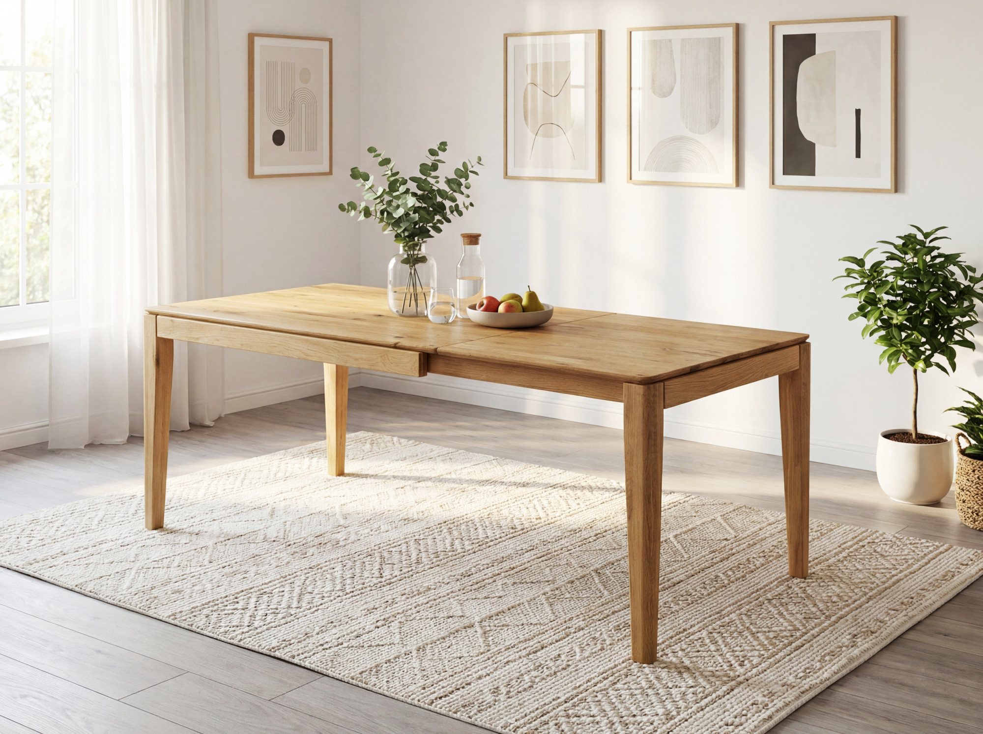 Ausziehbarer Massivholztisch aus Eiche, Adam 140 x 90 cm (225 x 90 cm)