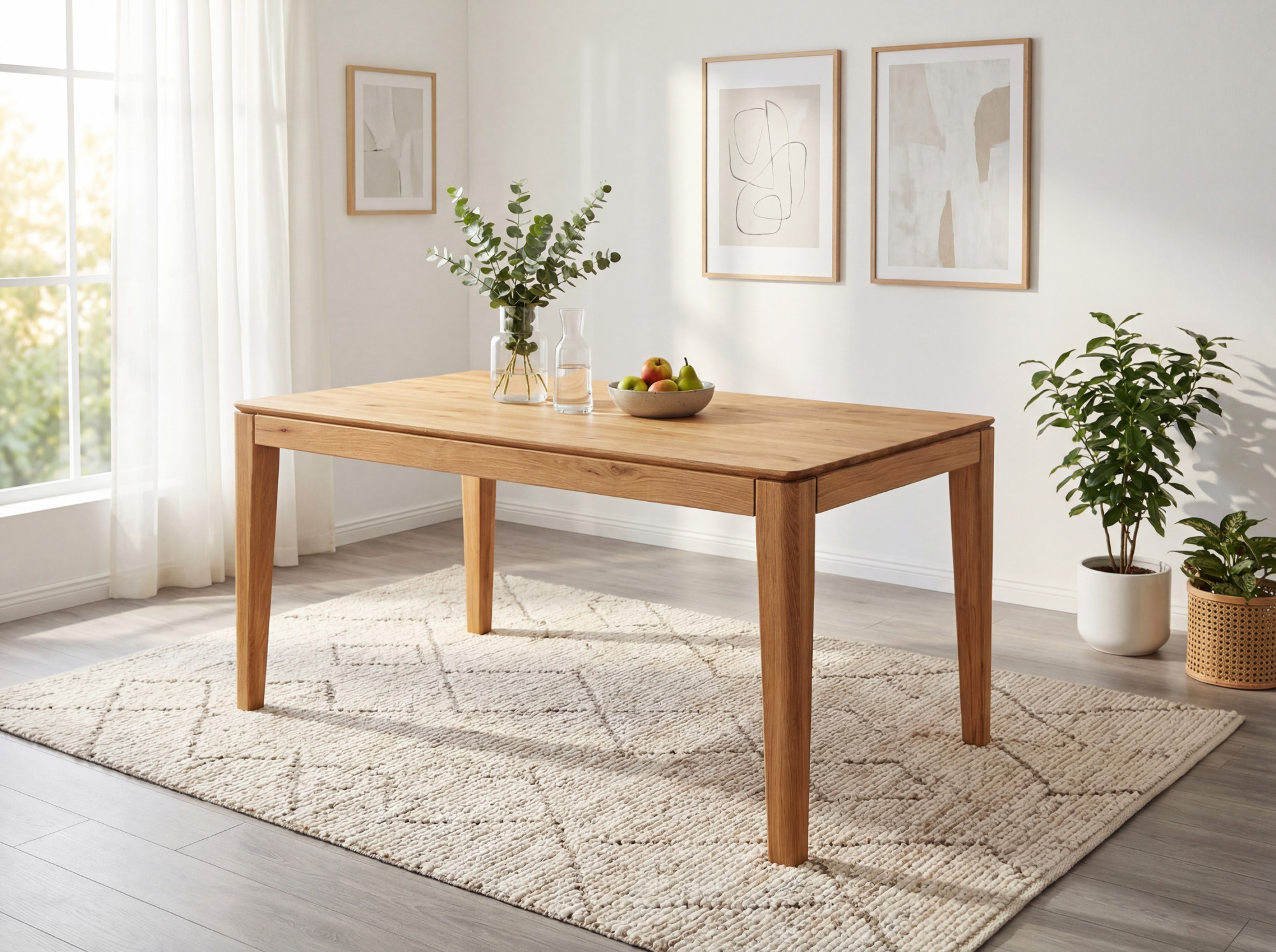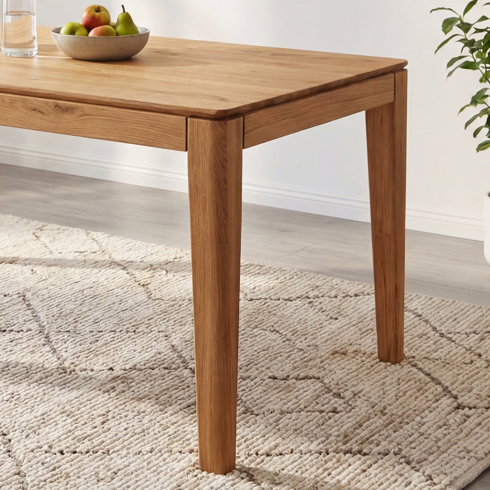 Die Hauptvorteile dieses Tisches sind seine komplett massive Konstruktion aus hochwertigem Eichenholz, das Festigkeit, Stabilität und eine lange Lebensdauer garantiert. Eichenholz ist nicht nur ästhetisch ansprechend, sondern auch ökologisch, da der Tisch aus FSC-zertifiziertem Holz hergestellt ist, was verantwortungsvolle und nachhaltige Forstwirtschaft gewährleistet. Die Oberflächenbehandlung mit natürlichem Öl betont die natürliche Schönheit des Holzes und sorgt für Kratz- und Feuchtigkeitsbeständigkeit. Der Tisch wird zerlegt geliefert, was den Transport und die Handhabung in jeden Raum erleichtert. Die Montage ist äußerst einfach und erfordert kein spezielles Werkzeug. Natürliche Materialien wie Eichenholz bringen Wärme und Gemütlichkeit in Ihr Zuhause, und die Möglichkeit, den Tisch mit weiteren Produkten aus unserem Angebot in der Farbe Natur-Eiche zu kombinieren, ermöglicht die Schaffung eines harmonischen und stilvollen Interieurs.