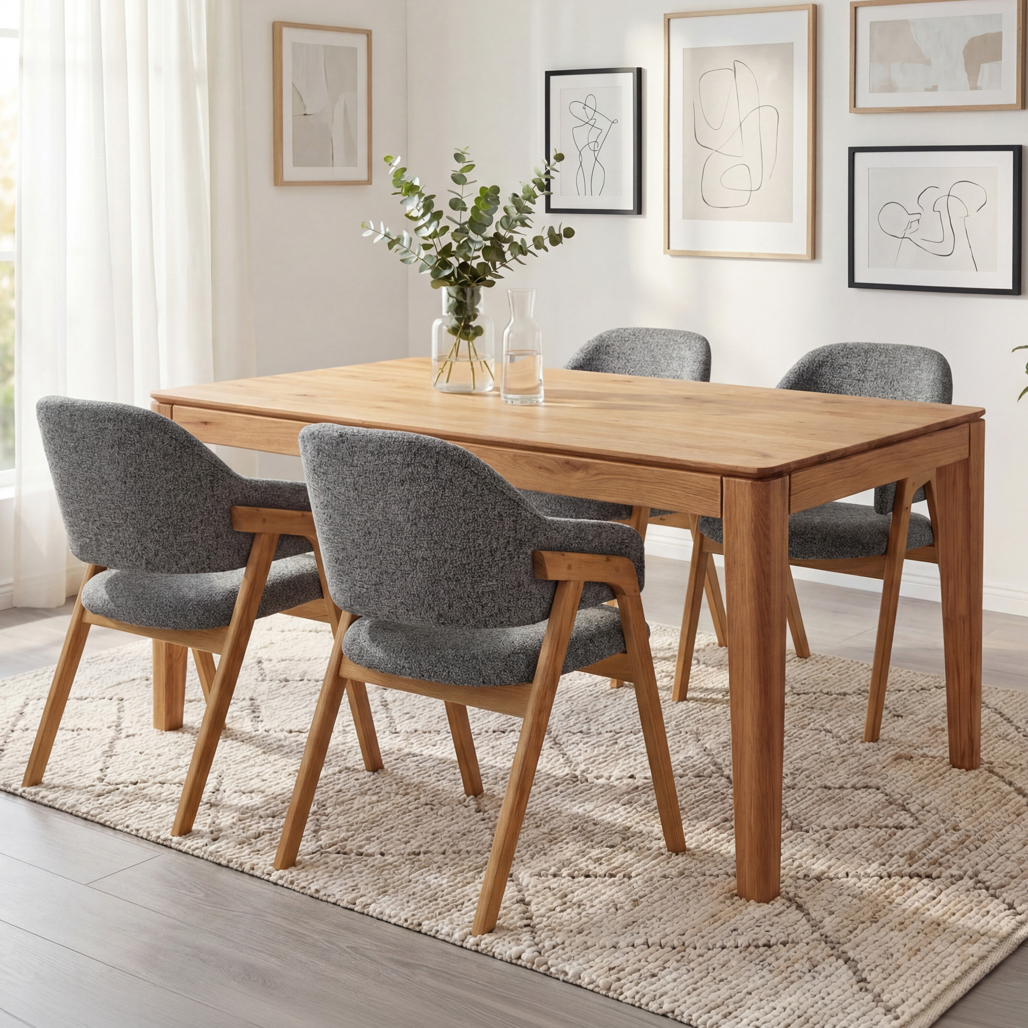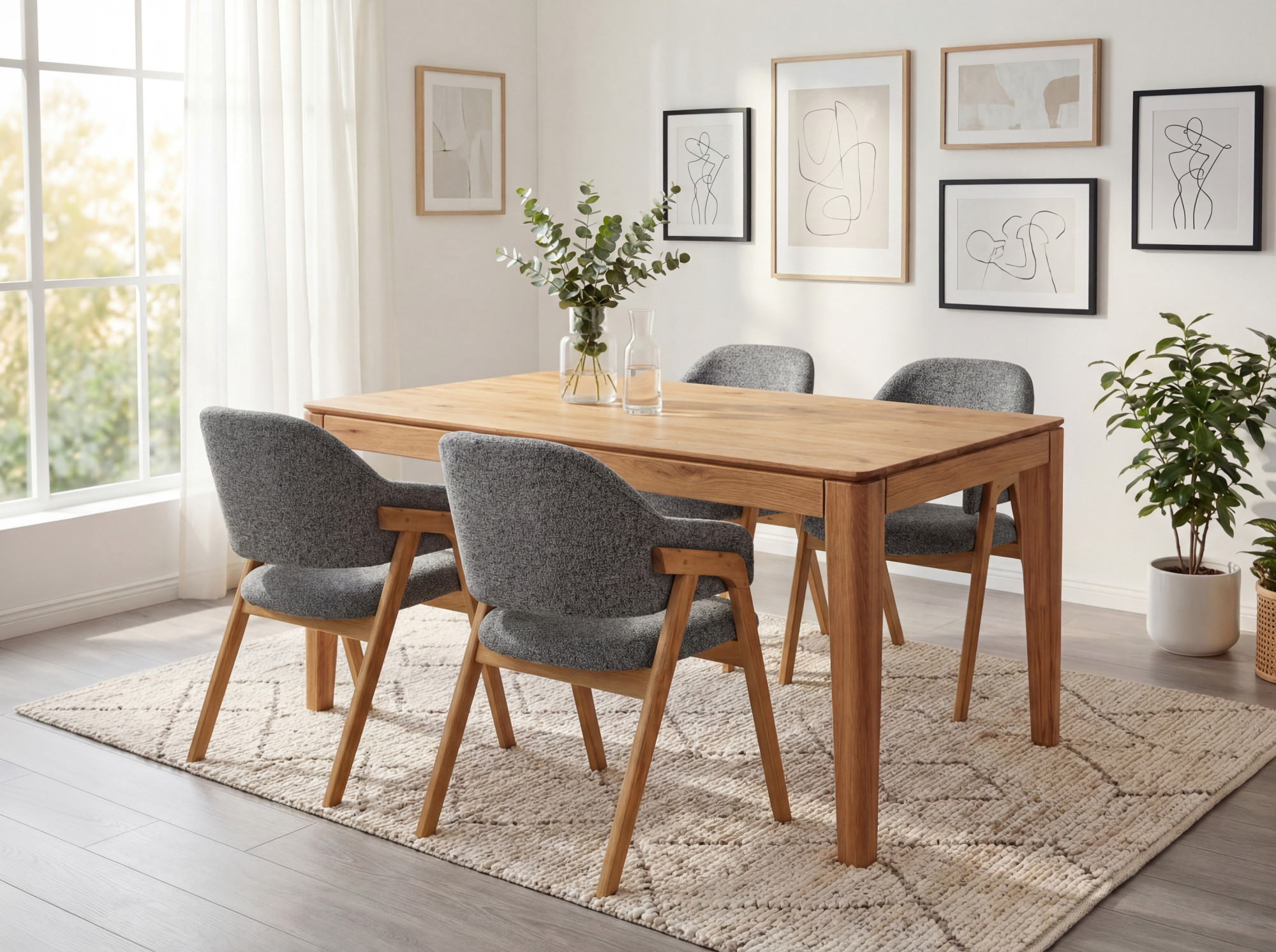 Die Hauptvorteile dieses Tisches sind seine durchgehende massive Konstruktion aus hochwertigem Eichenholz, das Festigkeit, Stabilität und Langlebigkeit garantiert. Eichenholz ist nicht nur ästhetisch ansprechend, sondern auch ökologisch, da der Tisch aus FSC-zertifiziertem Holz gefertigt wird, was verantwortungsvolle und nachhaltige Forstwirtschaft sicherstellt. Die Oberflächenbehandlung mit natürlichem Öl betont die natürliche Schönheit des Holzes und sorgt für seine Widerstandsfähigkeit gegen Kratzer und Feuchtigkeit. Der Tisch wird zerlegt geliefert, was den Transport und die Handhabung in jeden Raum erleichtert. Die Montage ist äußerst einfach und erfordert kein spezielles Werkzeug. Natürliche Materialien, wie Eichenholz, bringen Wärme und Gemütlichkeit in Ihr Zuhause, und die Möglichkeit, den Tisch mit weiteren Produkten aus unserem Angebot in der Farbe Eiche Natur zu kombinieren, ermöglicht die Schaffung eines harmonischen und stilvollen Interieurs.