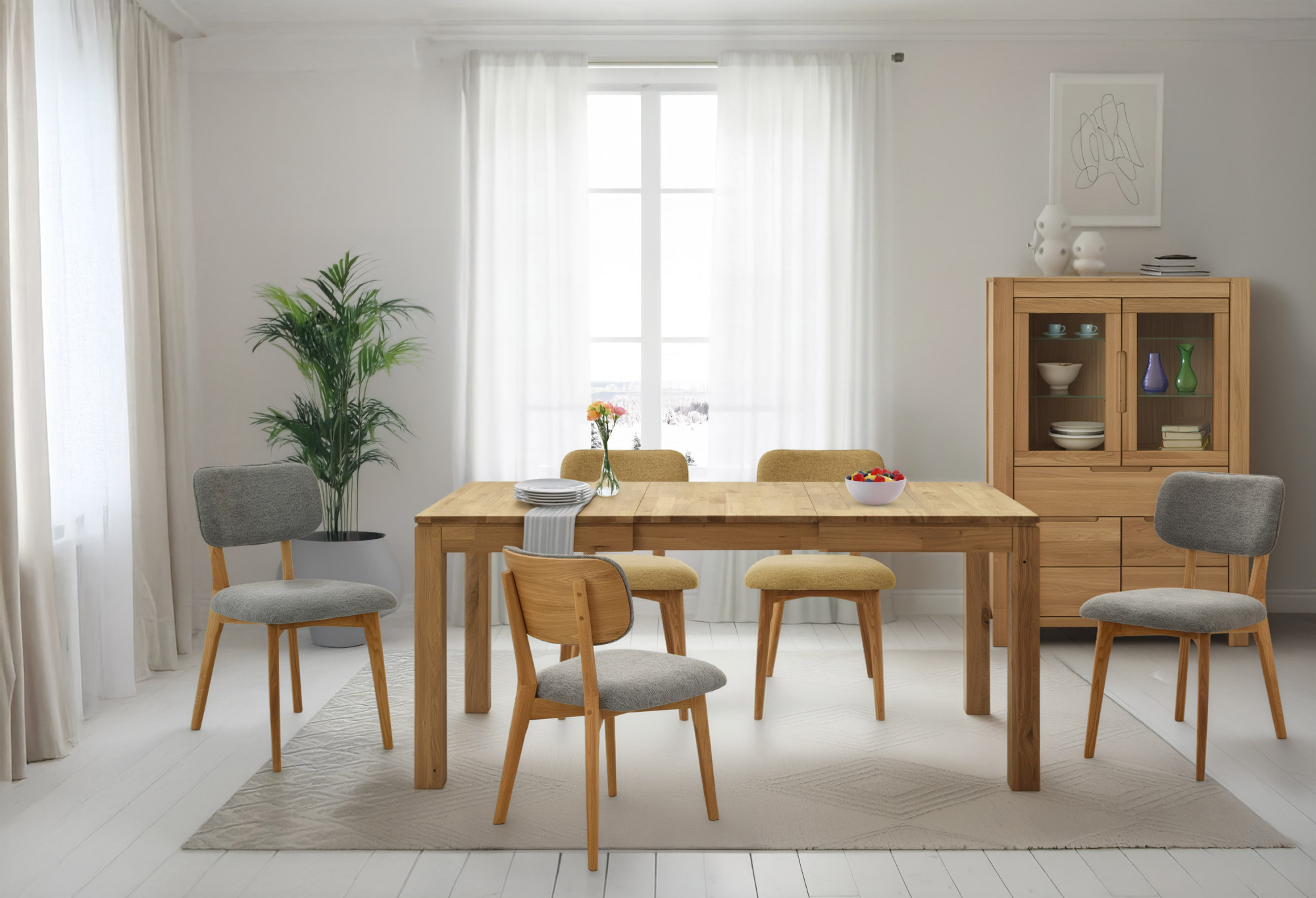 * Im Bild ausziehbarer Eichenholztisch Matuš 120(160) x 80 cm und Esszimmerstuhl Dona