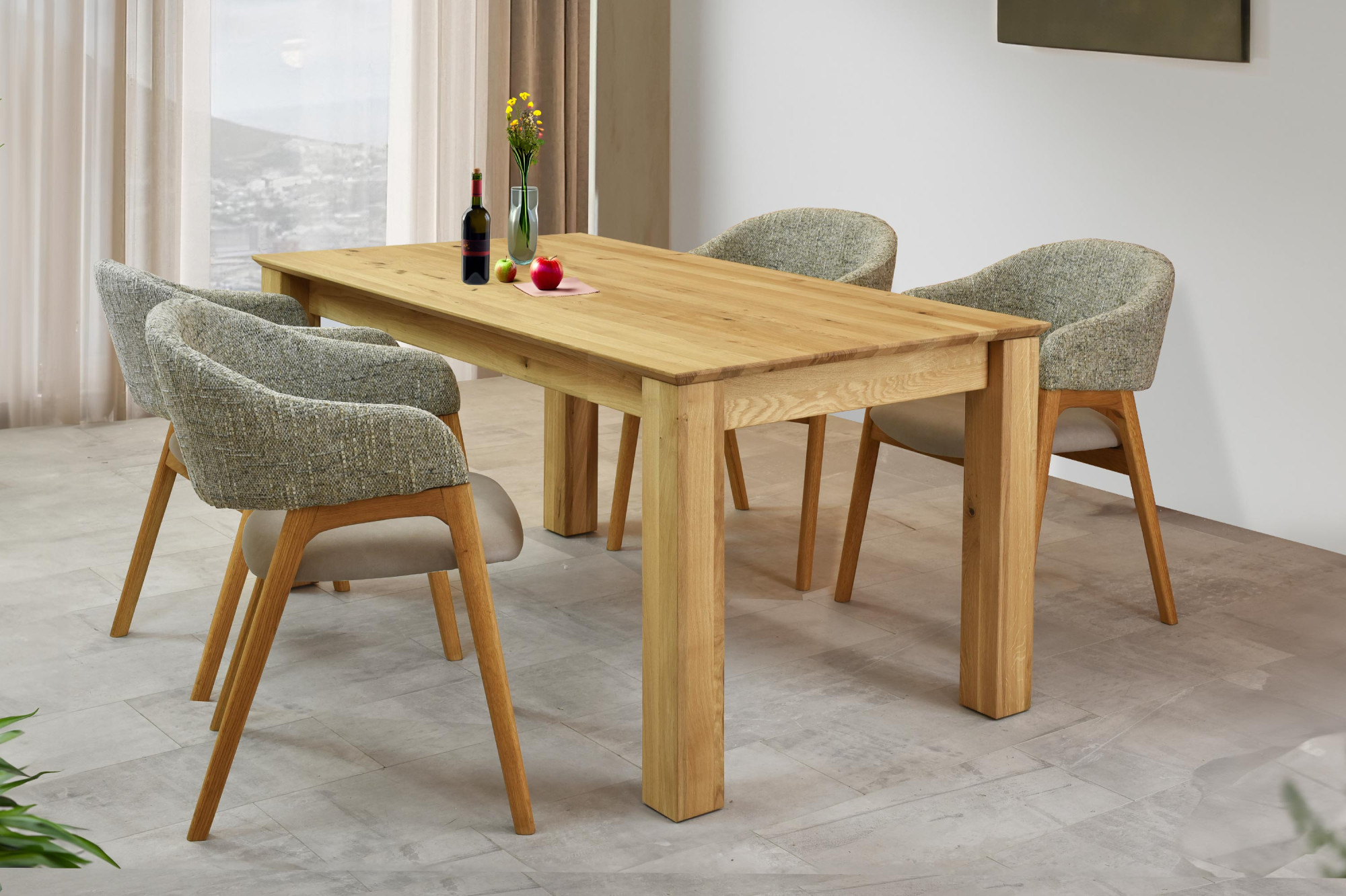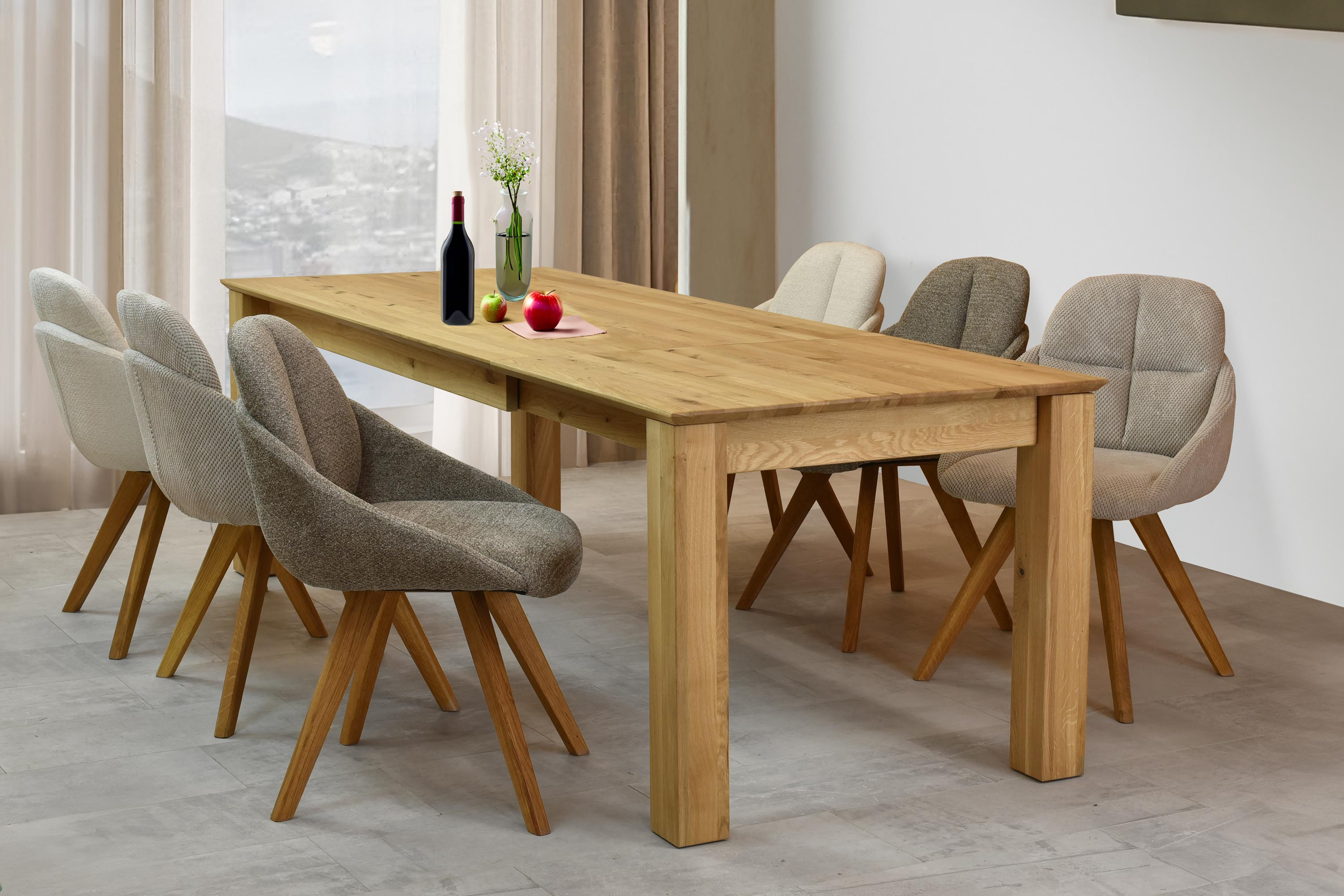 Dieser Tisch bietet außergewöhnliche Stabilität dank seiner robusten Konstruktion aus massivem Eichenholz und ist gleichzeitig sehr flexibel durch den ausgeklügelten Ausziehmechanismus. Die natürliche Oberflächenbehandlung und das FSC-zertifizierte Holz sorgen dafür, dass Ihr neuer Tisch nicht nur schön, sondern auch umweltbewusst ist.