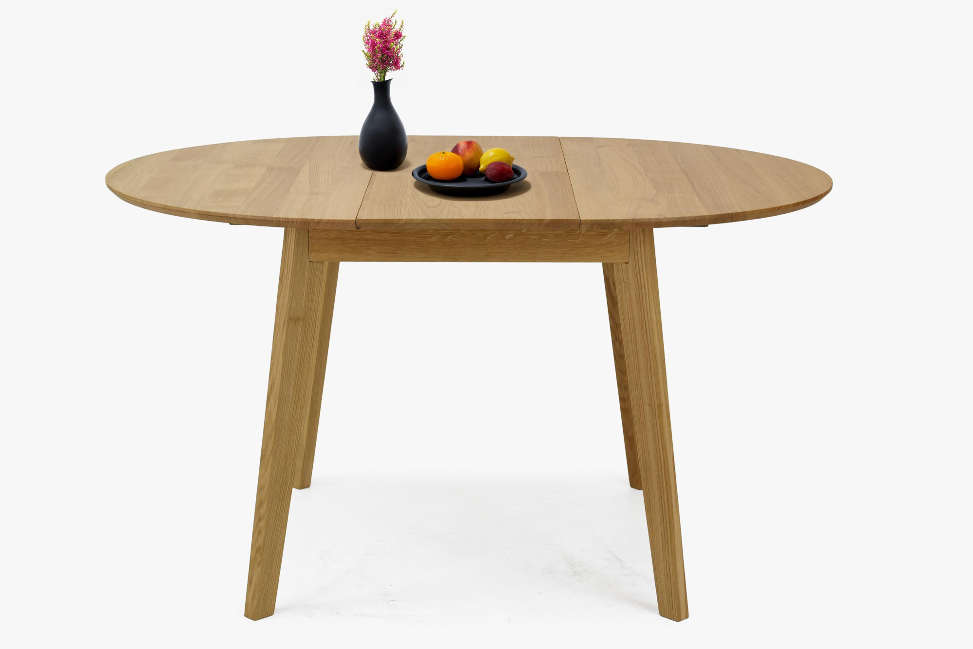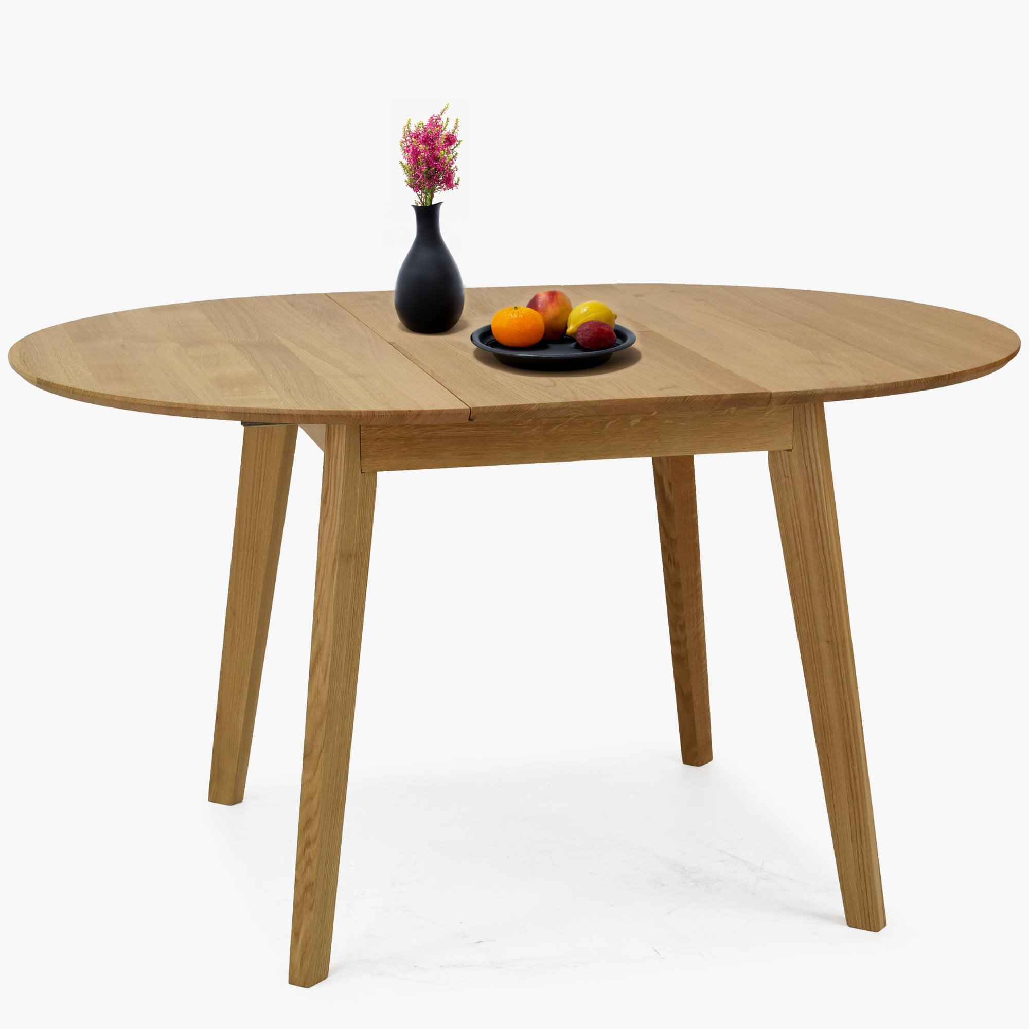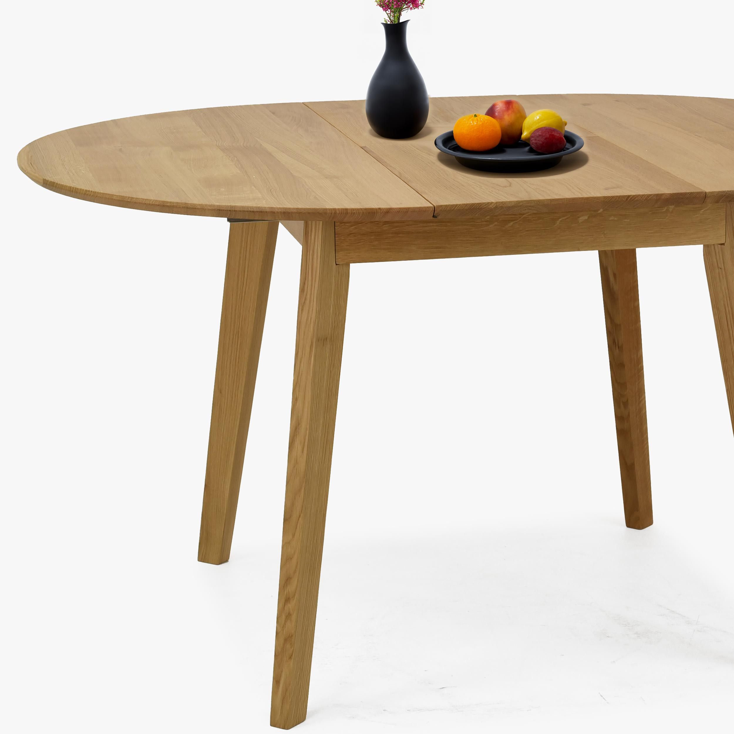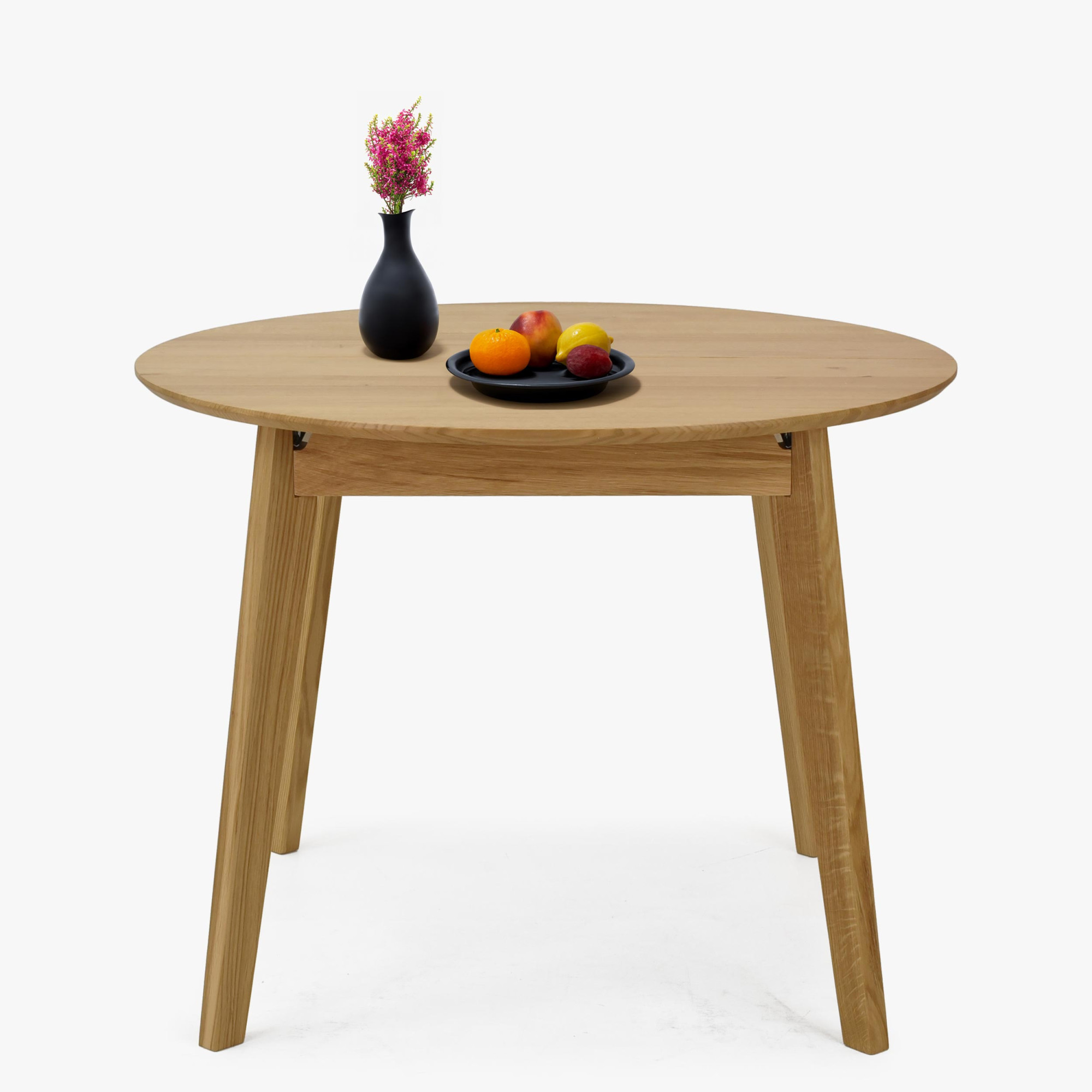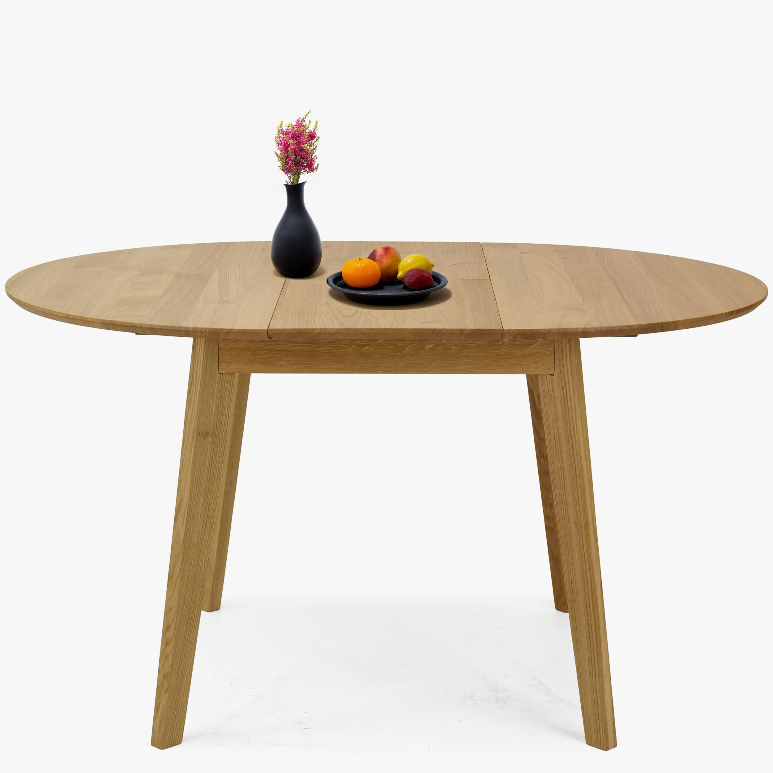 Runder Esstisch Eiche massiv 100 cm mit Ausziehfunktion matt