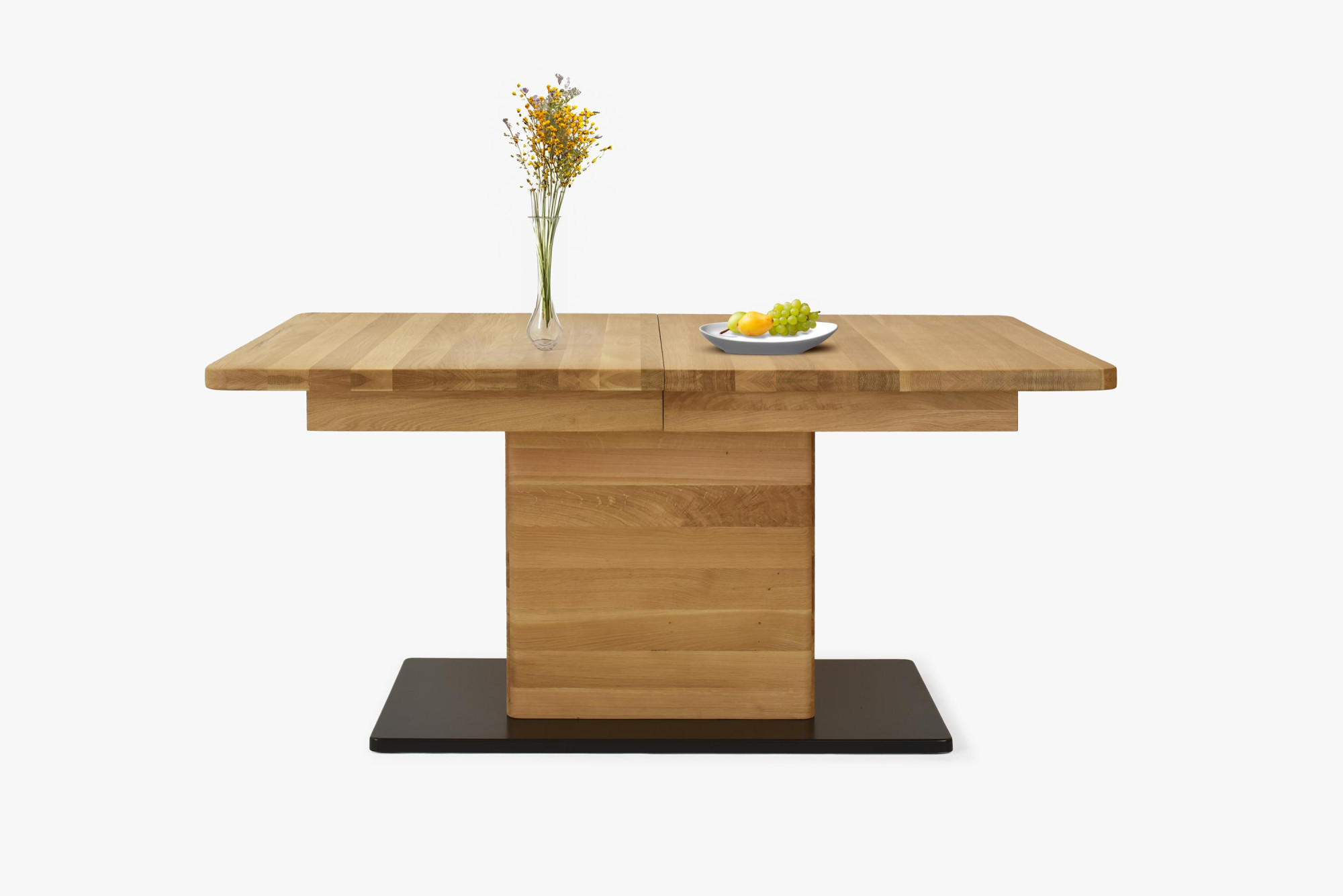 Ausziehbarer Esstisch Eiche Natur einbeinig mit schwarzem
