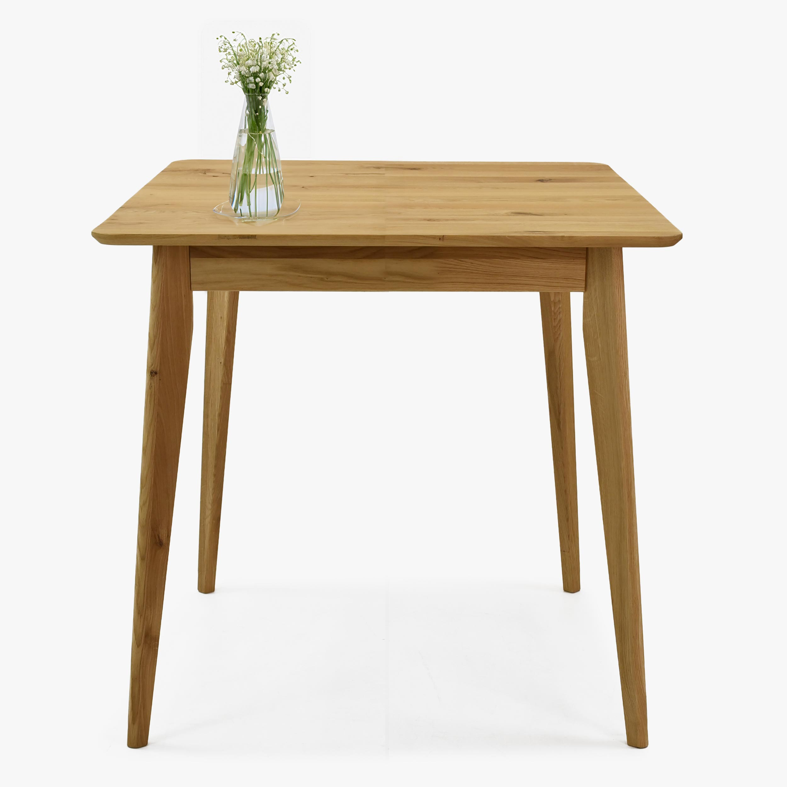 Mit seinen Maßen 80 x 80 cm bietet er bequem Platz für bis zu vier Personen und wirkt durch die schrägen Beine luftig und modern. Er wird zerlegt mit einfacher Montage geliefert, die wirklich jeder meistern kann. Außerdem lässt er sich leicht mit weiteren Eichenprodukten kombinieren, wodurch ein einheitliches und harmonisches Interieur entsteht. Zu den Hauptvorteilen gehören: