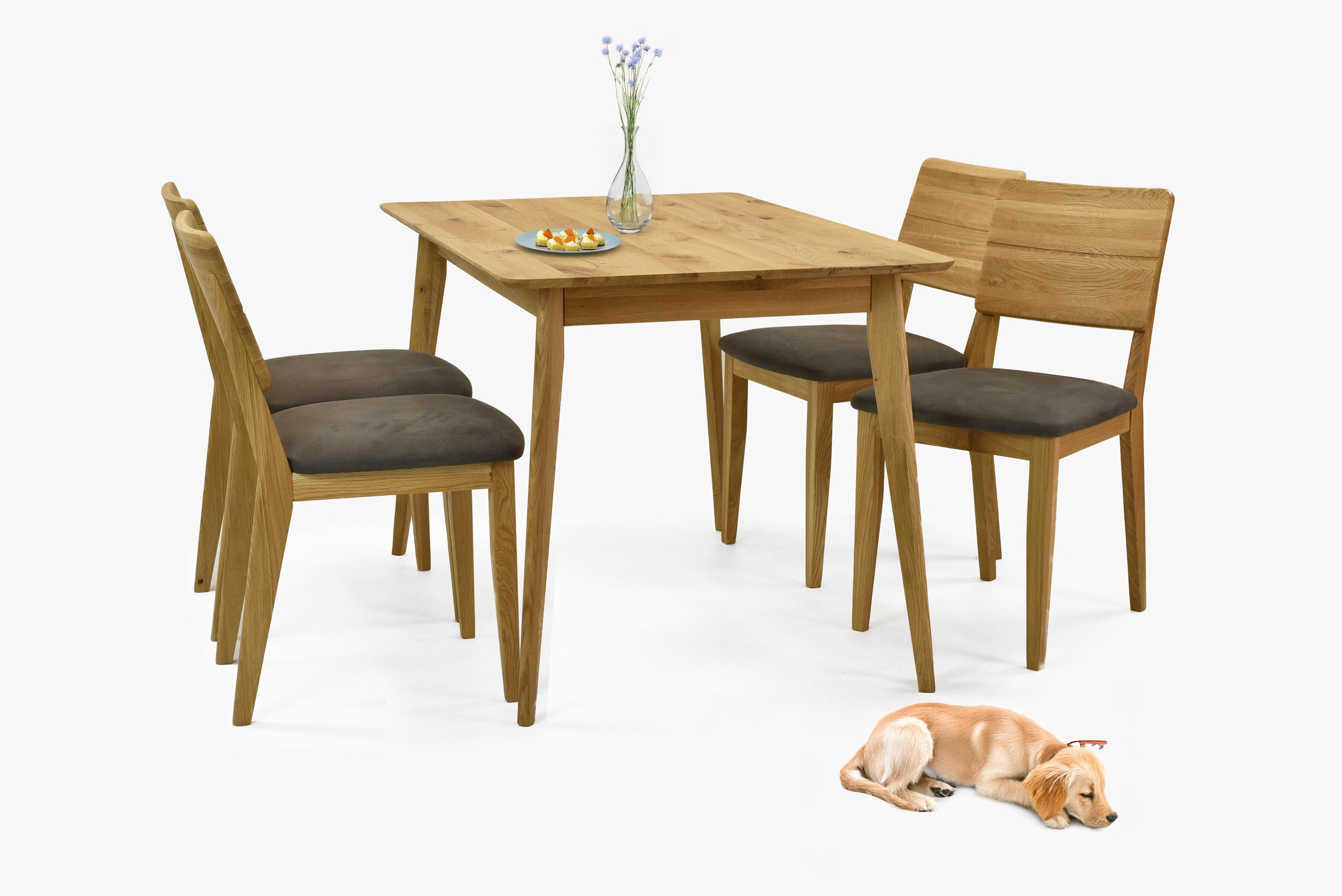 Eichentisch 120 x 80 cm stellt die ideale Wahl für jeden Haushalt dar, der hochwertige und gleichzeitig preiswerte Möbel aus Naturholz sucht. Dank sorgfältiger Herstellung aus massivem Eichenholz und FSC-Zertifikat haben Sie die Gewissheit, dass das Holz aus nachhaltigen Quellen stammt. Dieser Esstisch zeichnet sich vor allem durch seine Stabilität und Langlebigkeit aus, wodurch er zum verlässlichen Begleiter für das tägliche Essen wird. Die Oberflächenbehandlung mit Naturöl betont die schöne Maserung und schützt das Holz vor kleinen Beschädigungen und Feuchtigkeit. Abgerundete Ecken und Kanten verleihen dem Tisch ein elegantes Aussehen und erhöhen gleichzeitig die Sicherheit.
