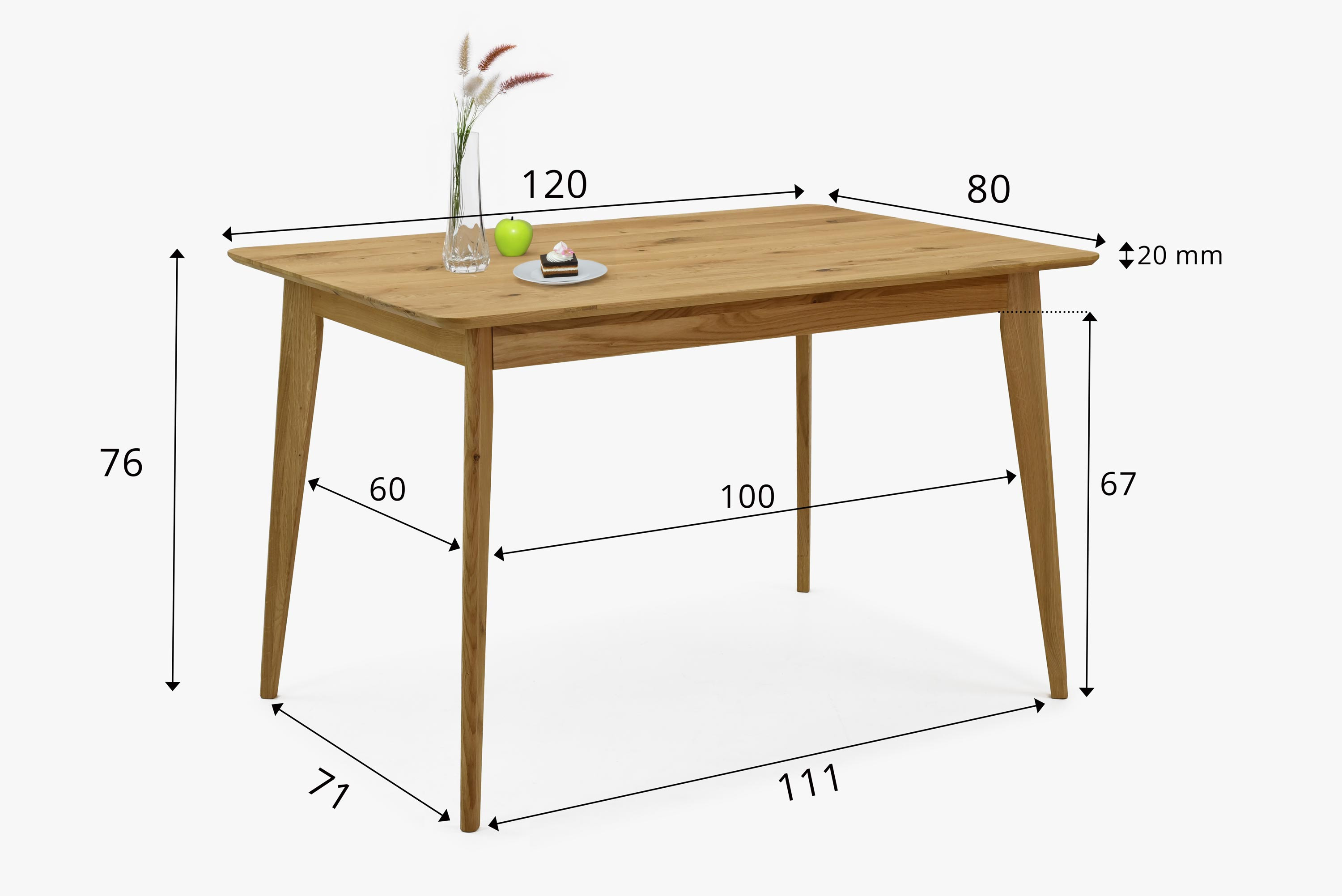 Esstisch aus massivem Eichenholz 120x80 cm naturbelassen