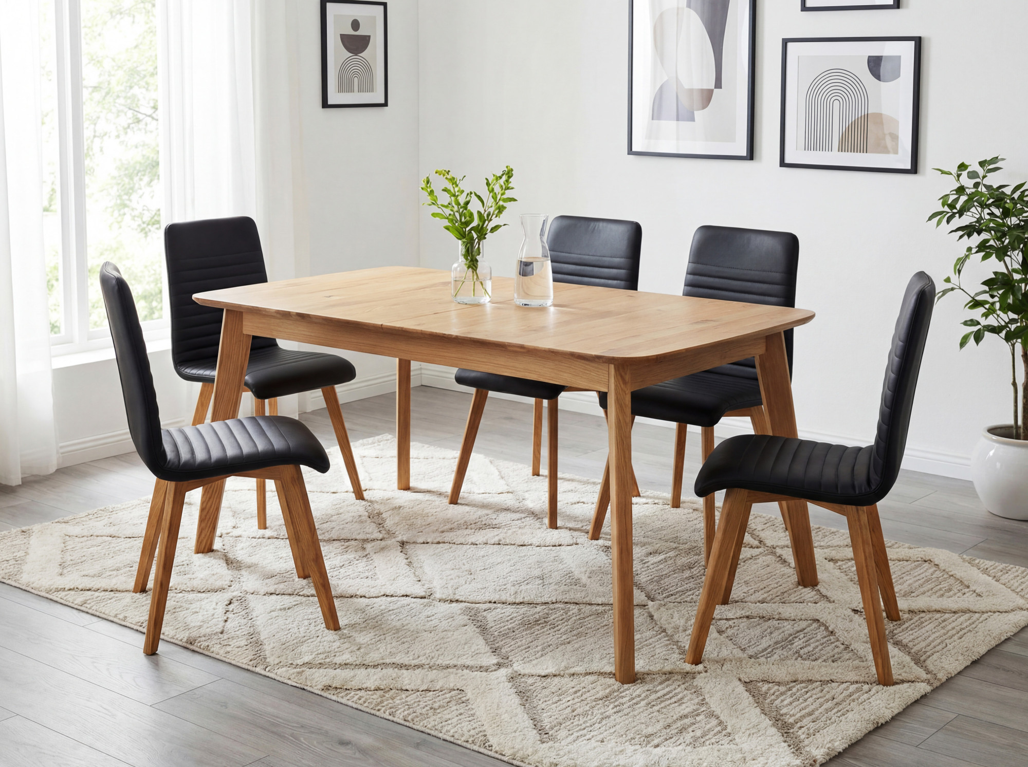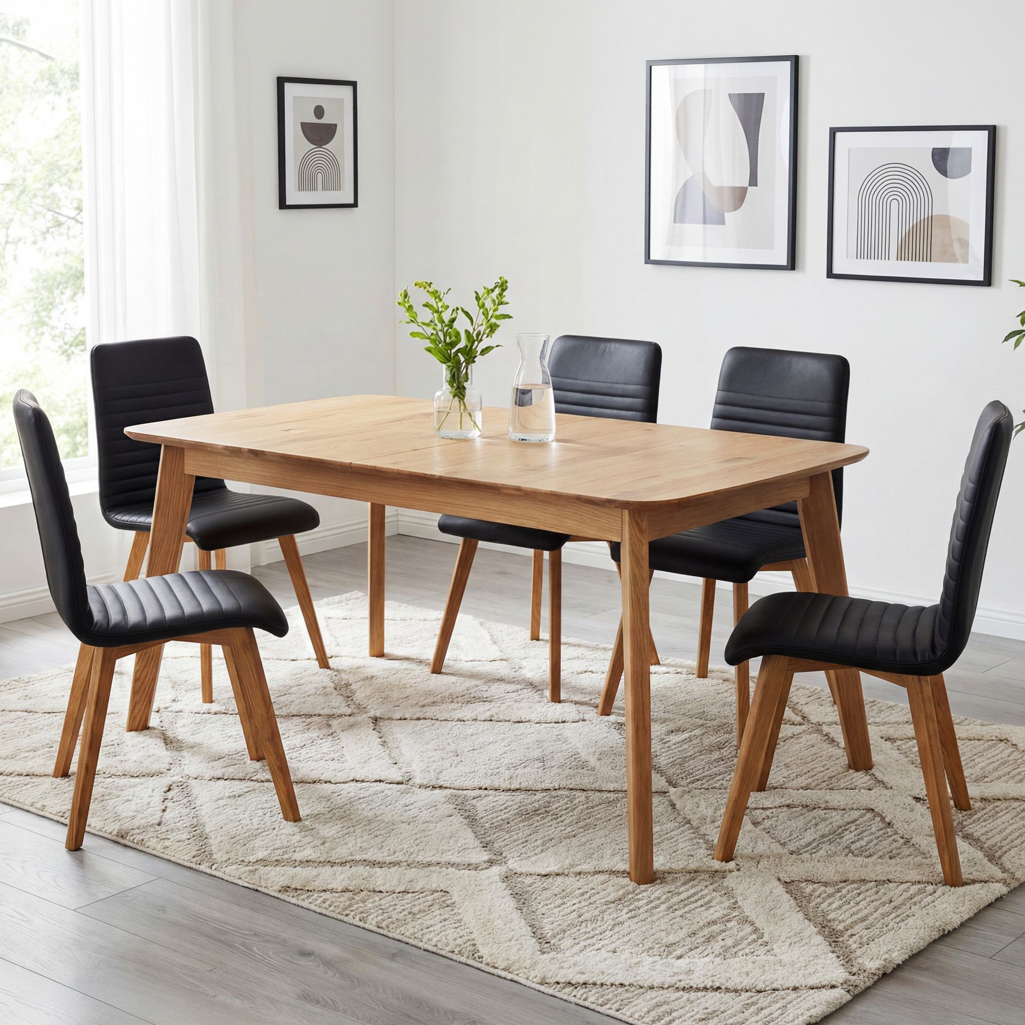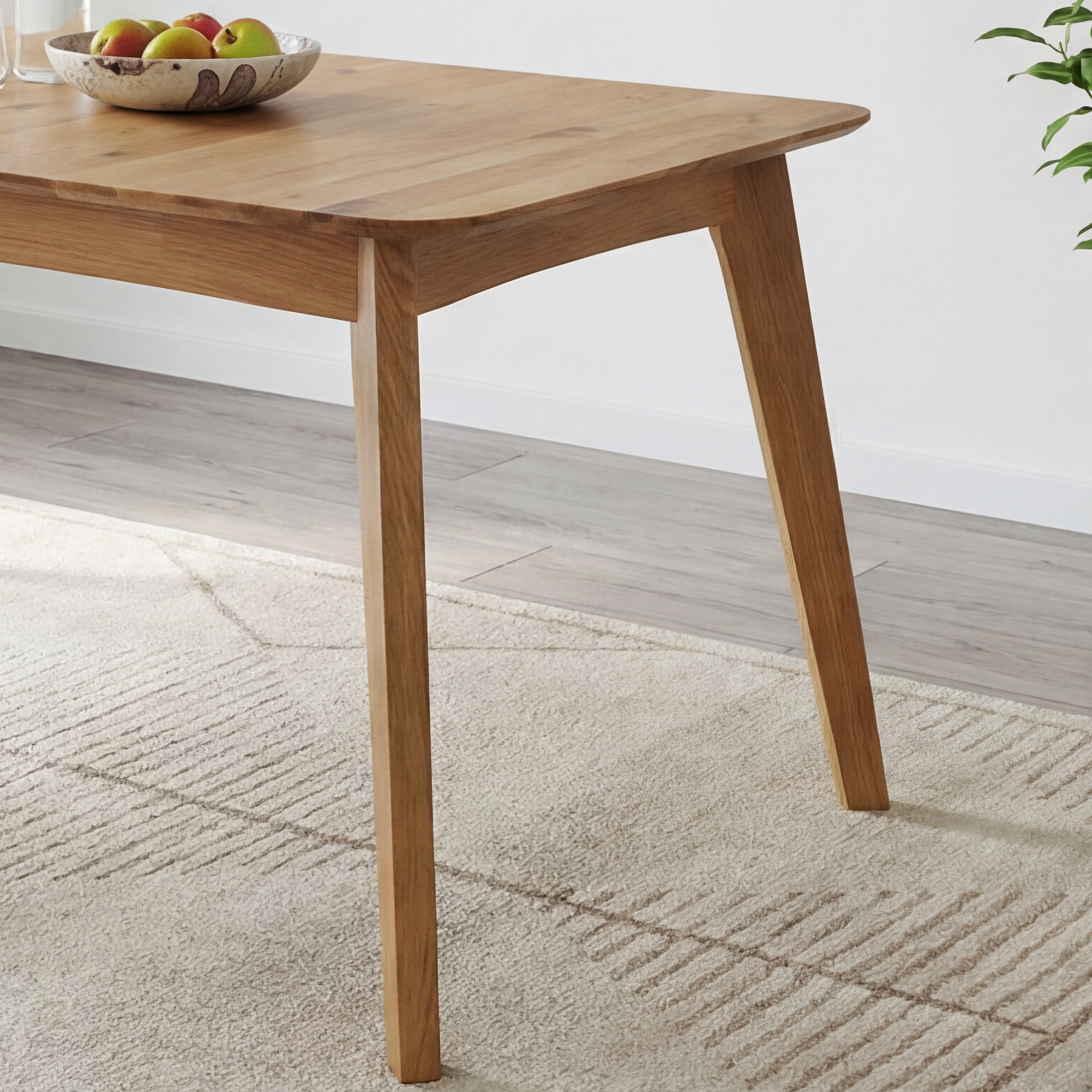 Dieser ausziehbare Esstisch aus massivem Eichenholz ist die ideale Wahl für alle, die Eleganz, Funktionalität und erstklassige Qualität suchen. Die Grundgröße des Tisches beträgt 160 x 90 cm, was sich perfekt für den täglichen Gebrauch für 4–6 Personen eignet. Dank des clever versteckten Ausziehmechanismus im Tisch erhalten Sie im Handumdrehen eine Fläche von 200 x 90 cm, die bequem bis zu 8 Personen Platz bietet. Die Tischplatte besteht aus massivem Eichenholz in Ausführung durchgehende Lamelle, wodurch die natürliche Maserung und Struktur des Holzes wunderschön zur Geltung kommt. Die Oberfläche ist mit matt lackiertem Schutz versehen, der das Holz vor täglichem Verschleiß schützt und dem Tisch ein modernes, glattes Erscheinungsbild verleiht.
