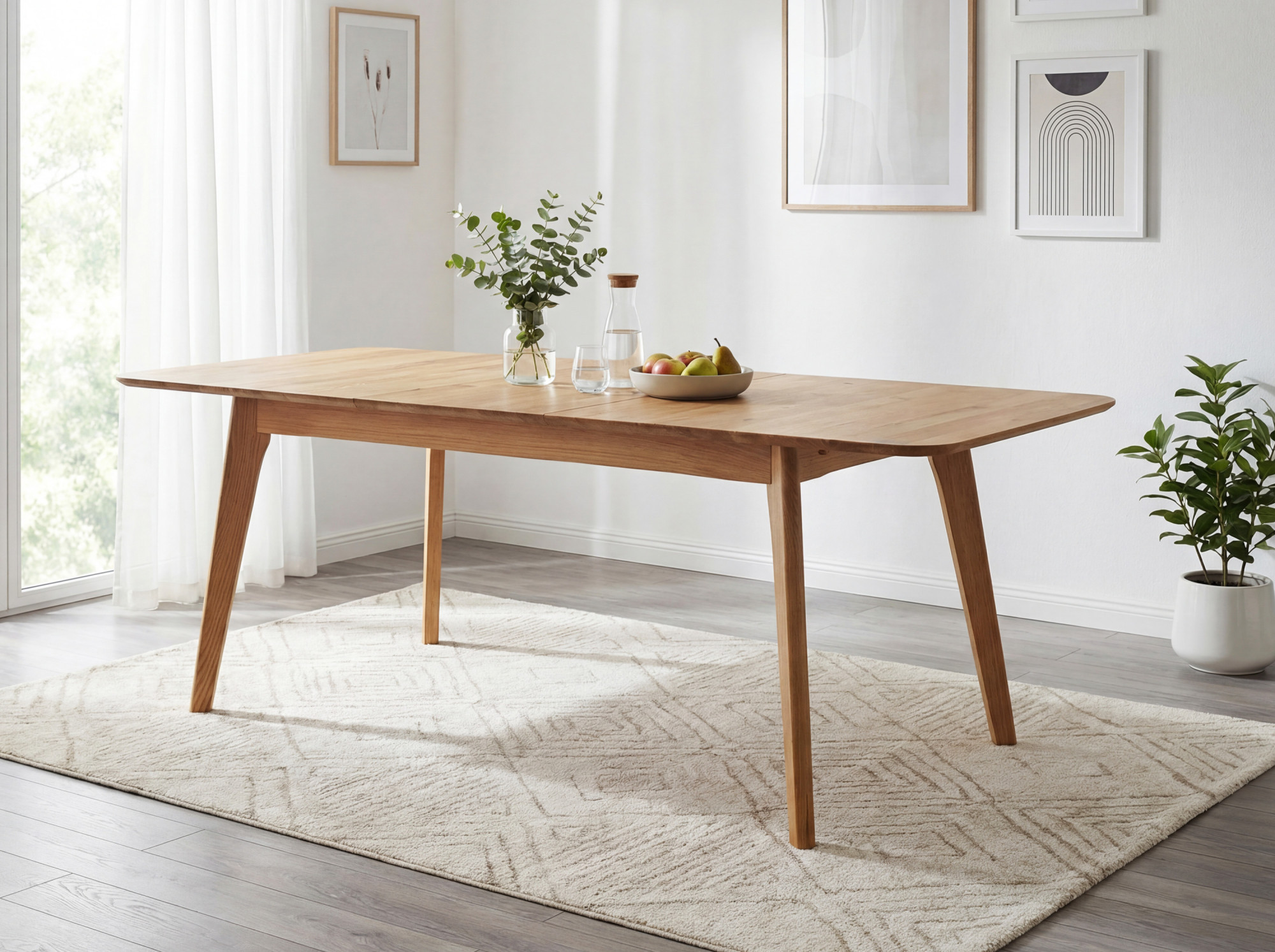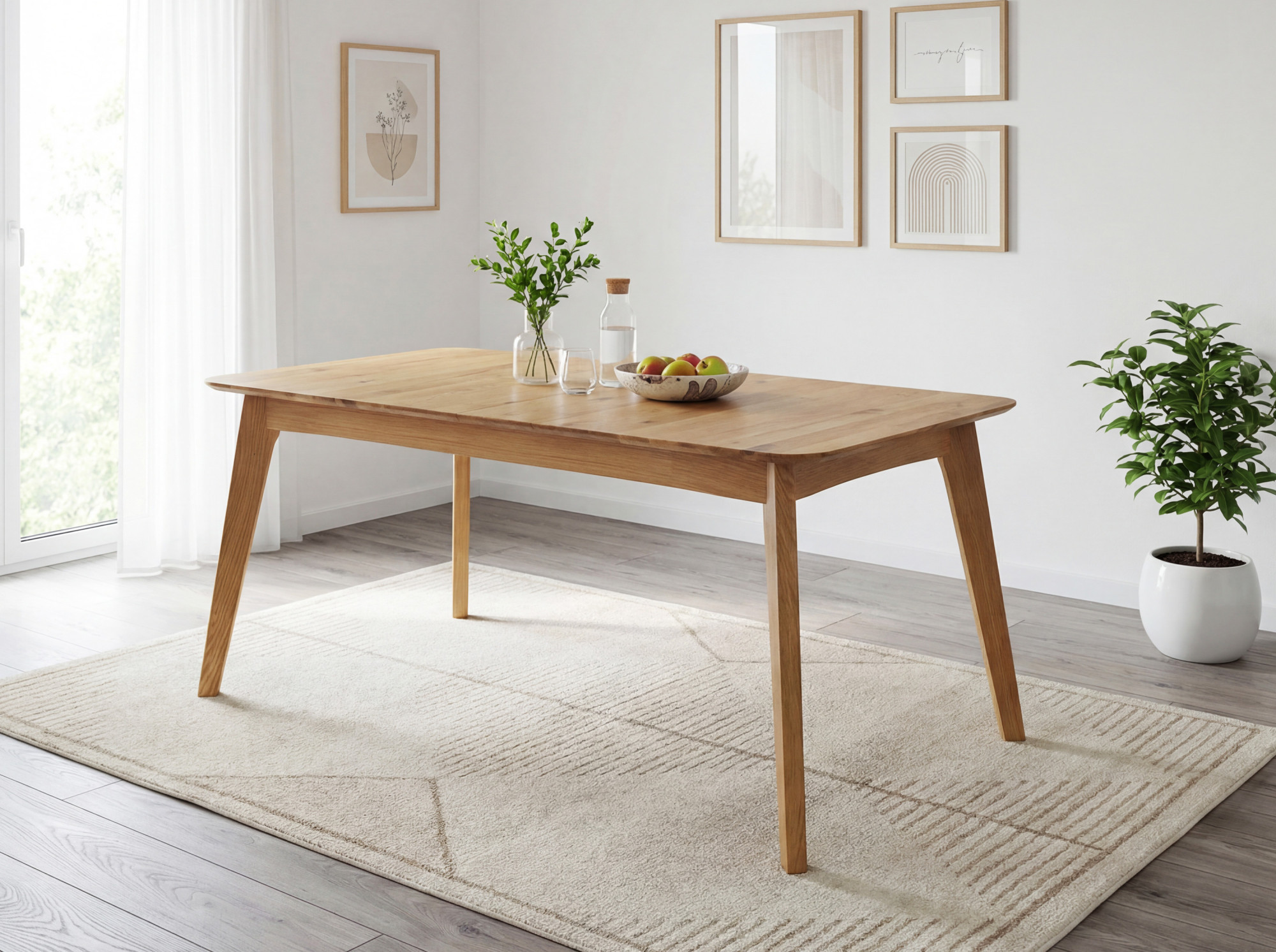 Eichen-Ausziehtisch aus Massivholz 160 x 90 cm, ausgezogen 200 x 90 cm – matt lackiert