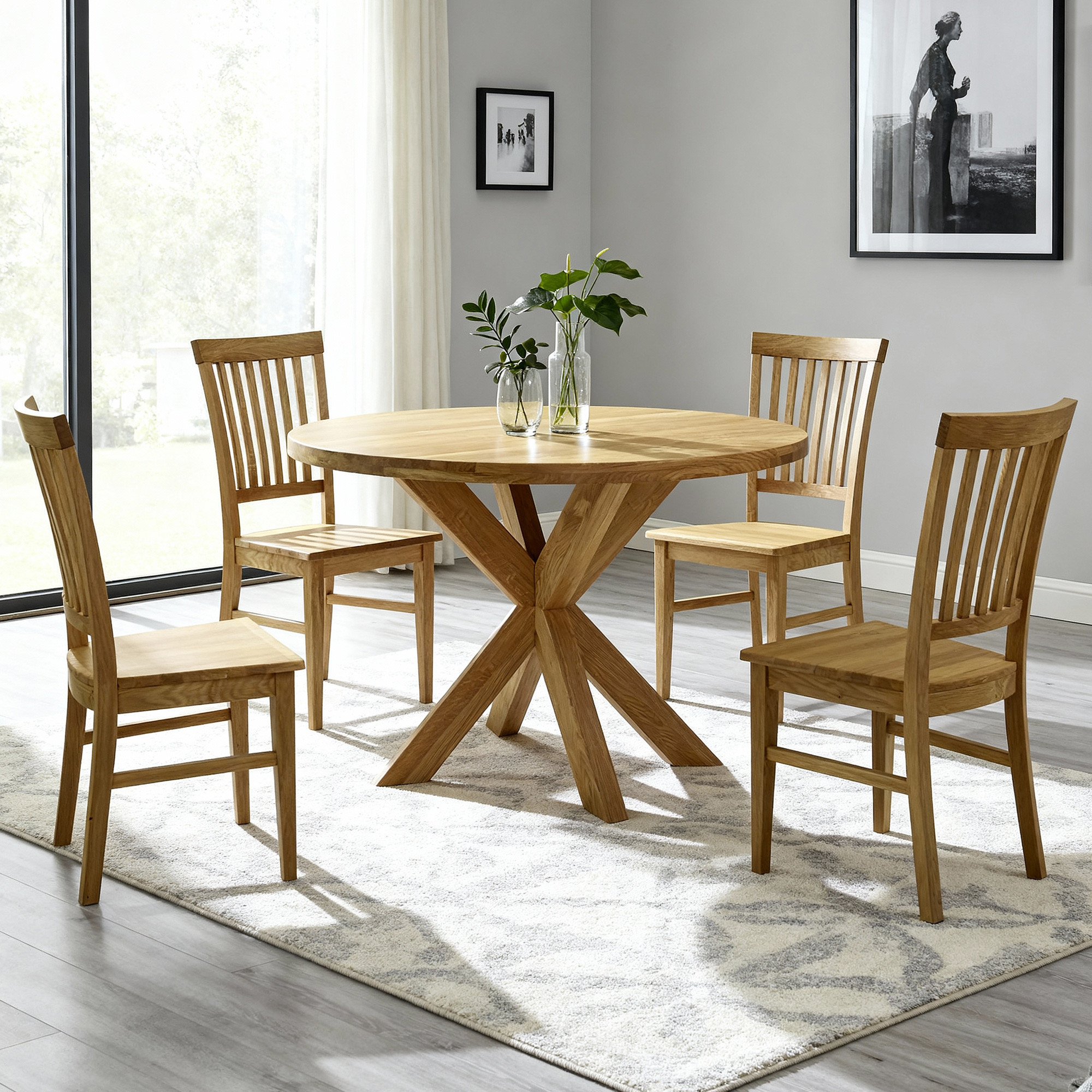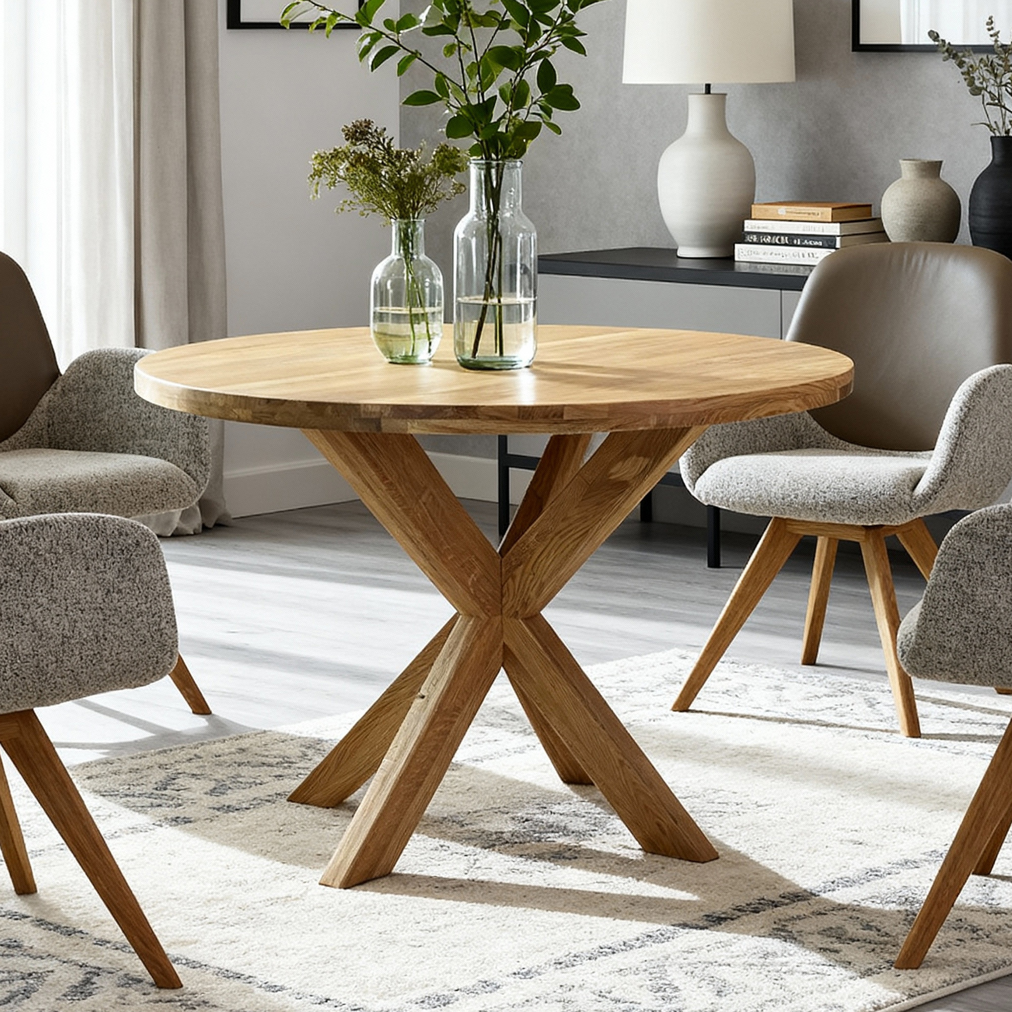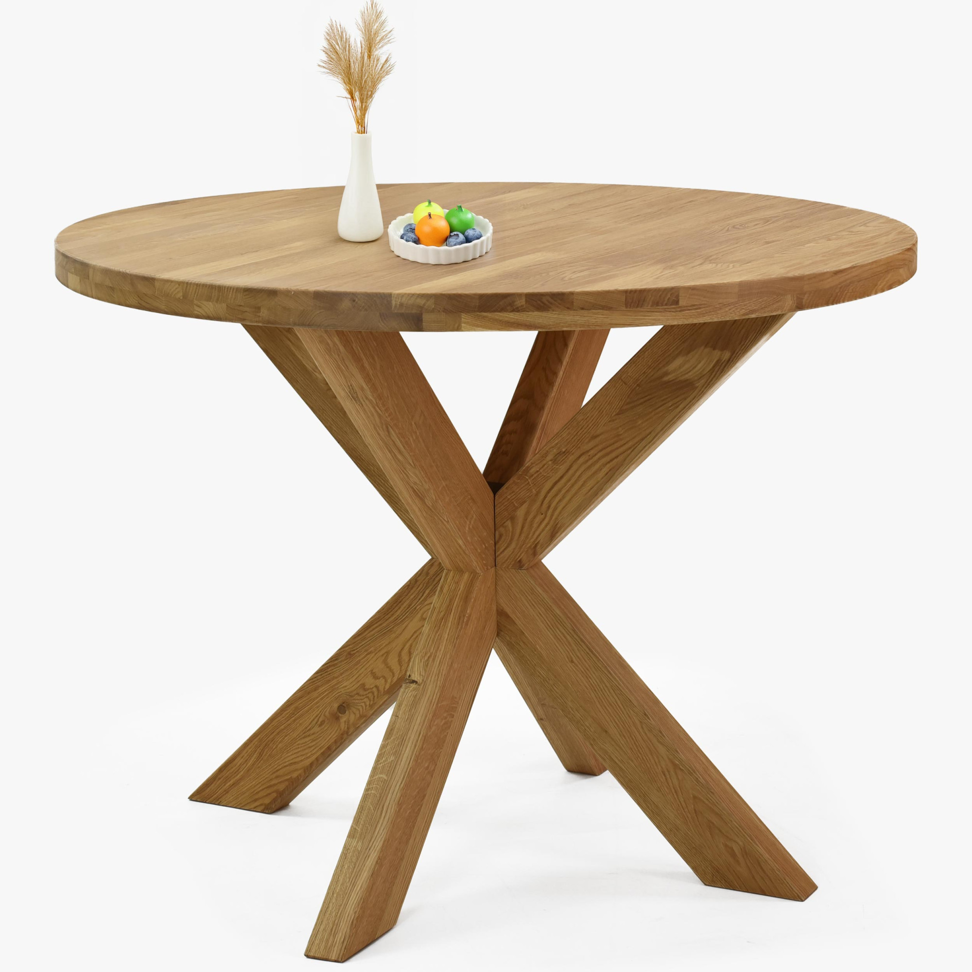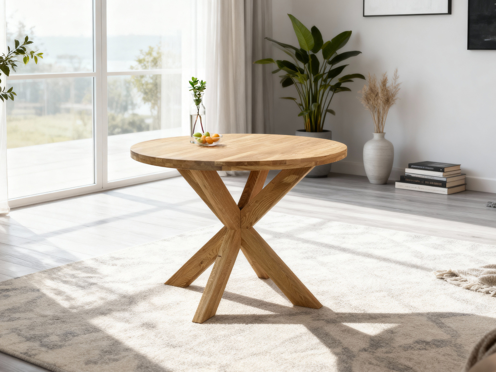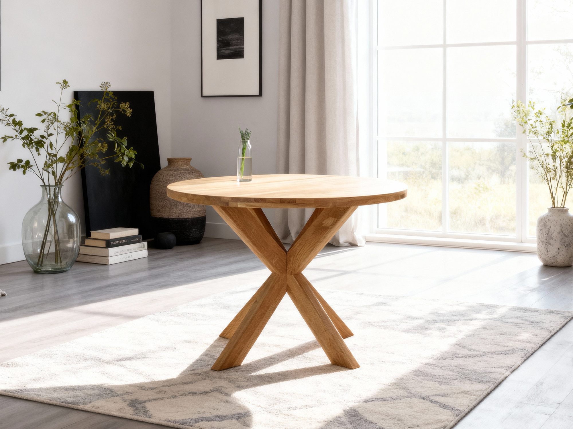 Runder Eichenholz Tisch 100 cm mit gekreuzten Beinen natur