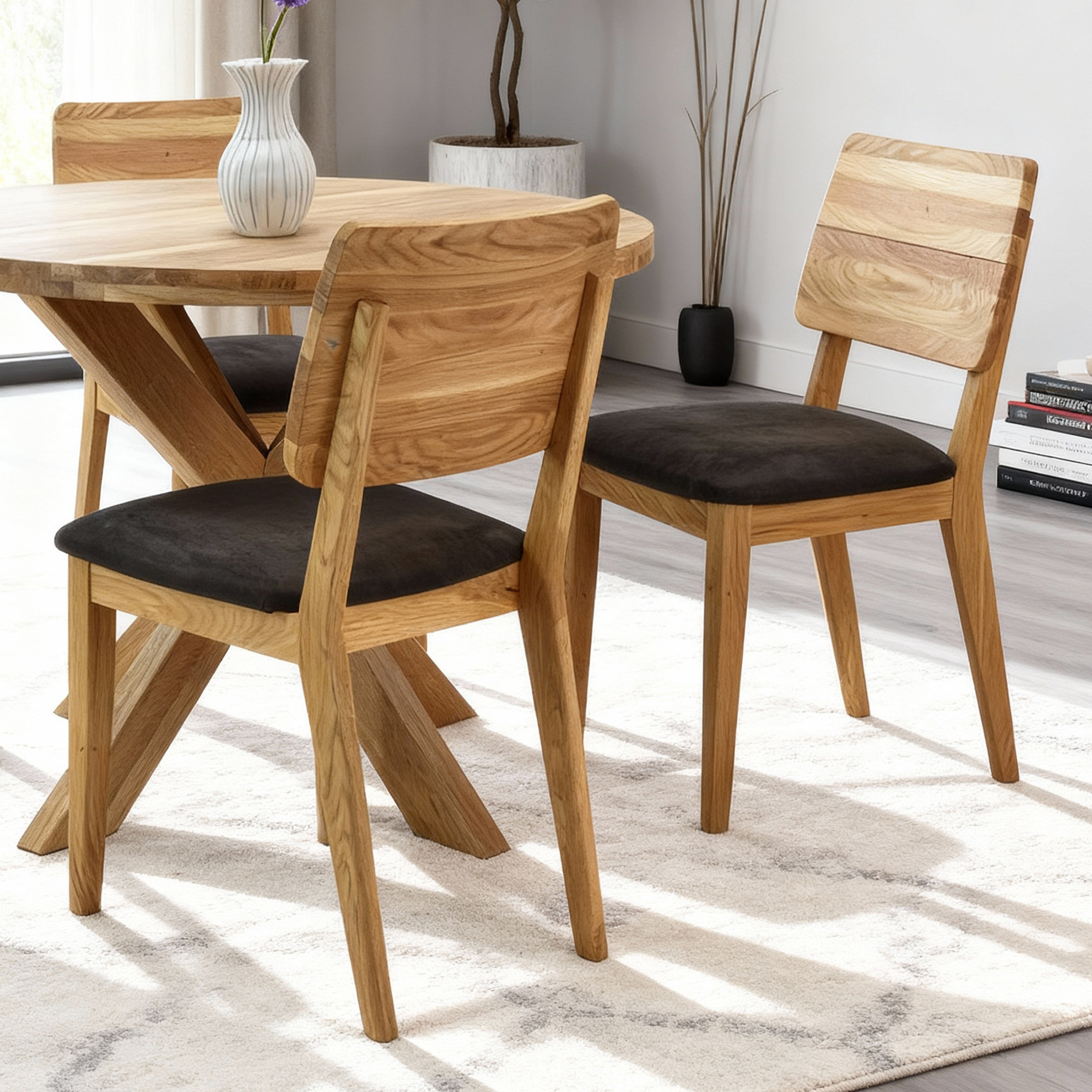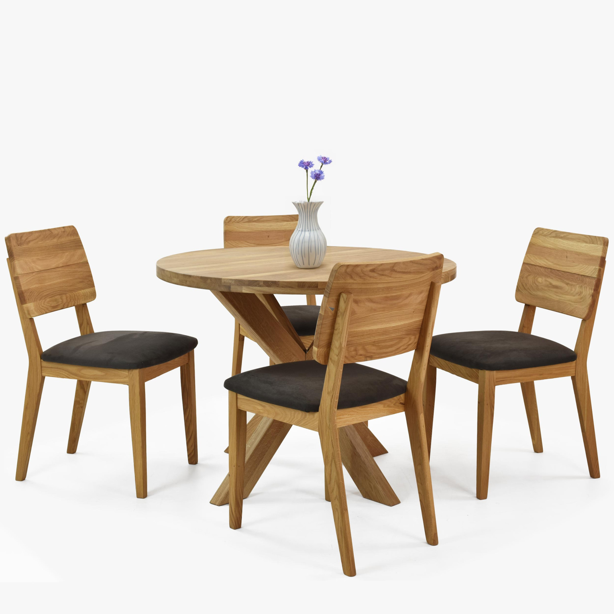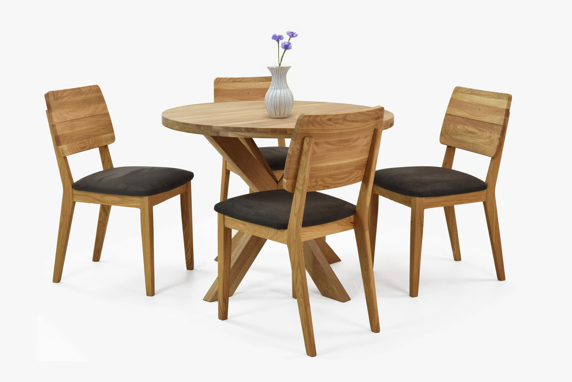 * Auf dem Bild runder Eichenholztisch mit 100 cm Durchmesser und Eichenstuhl Modell Robo