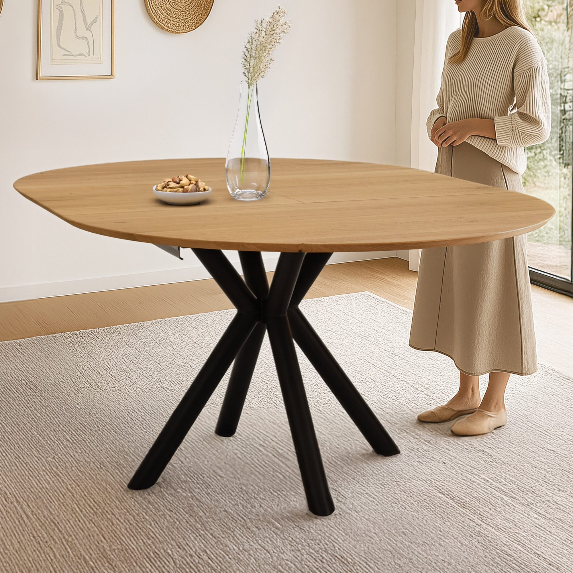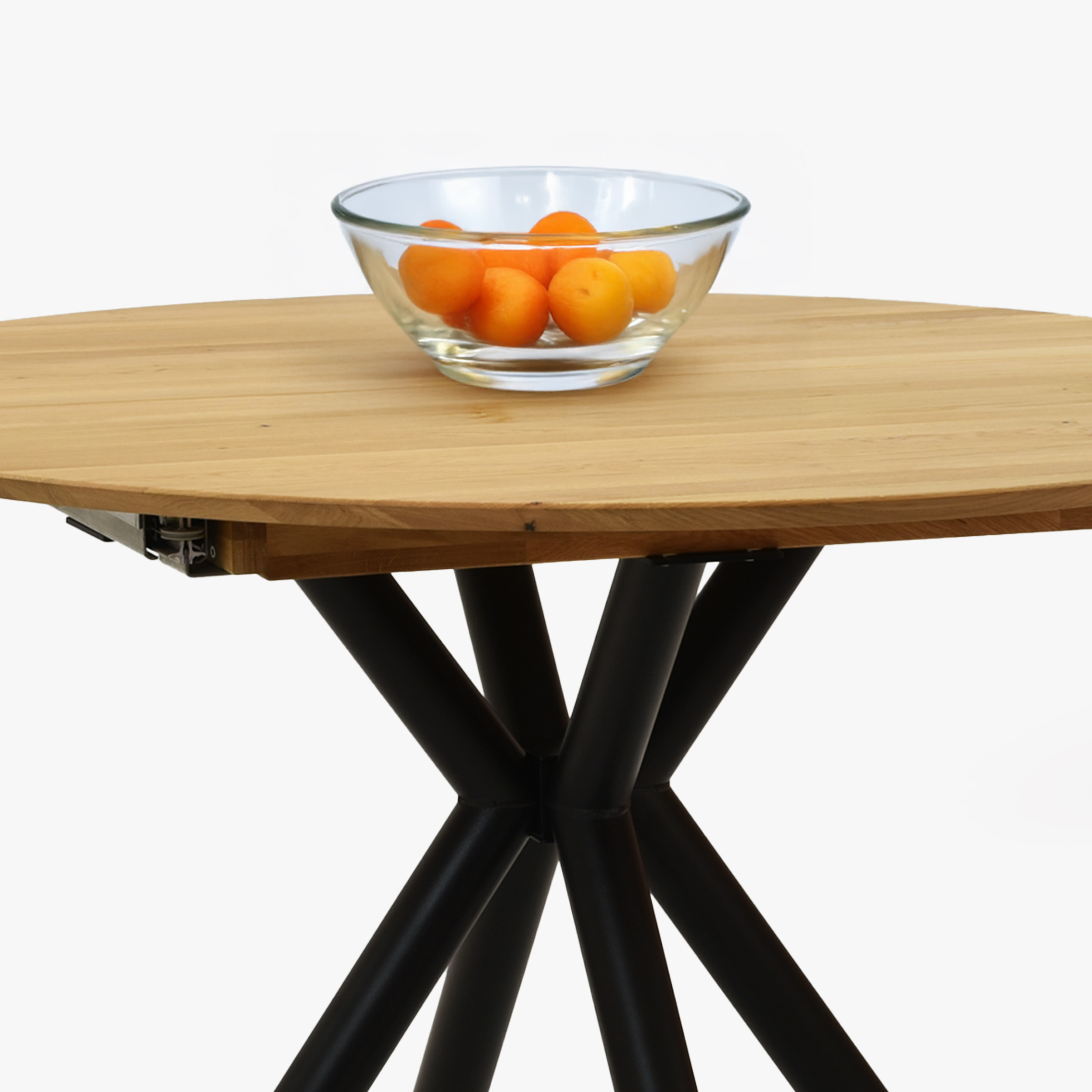 Runder ausziehbarer Eiche-Tisch mit Metallbeinen ø120 cm