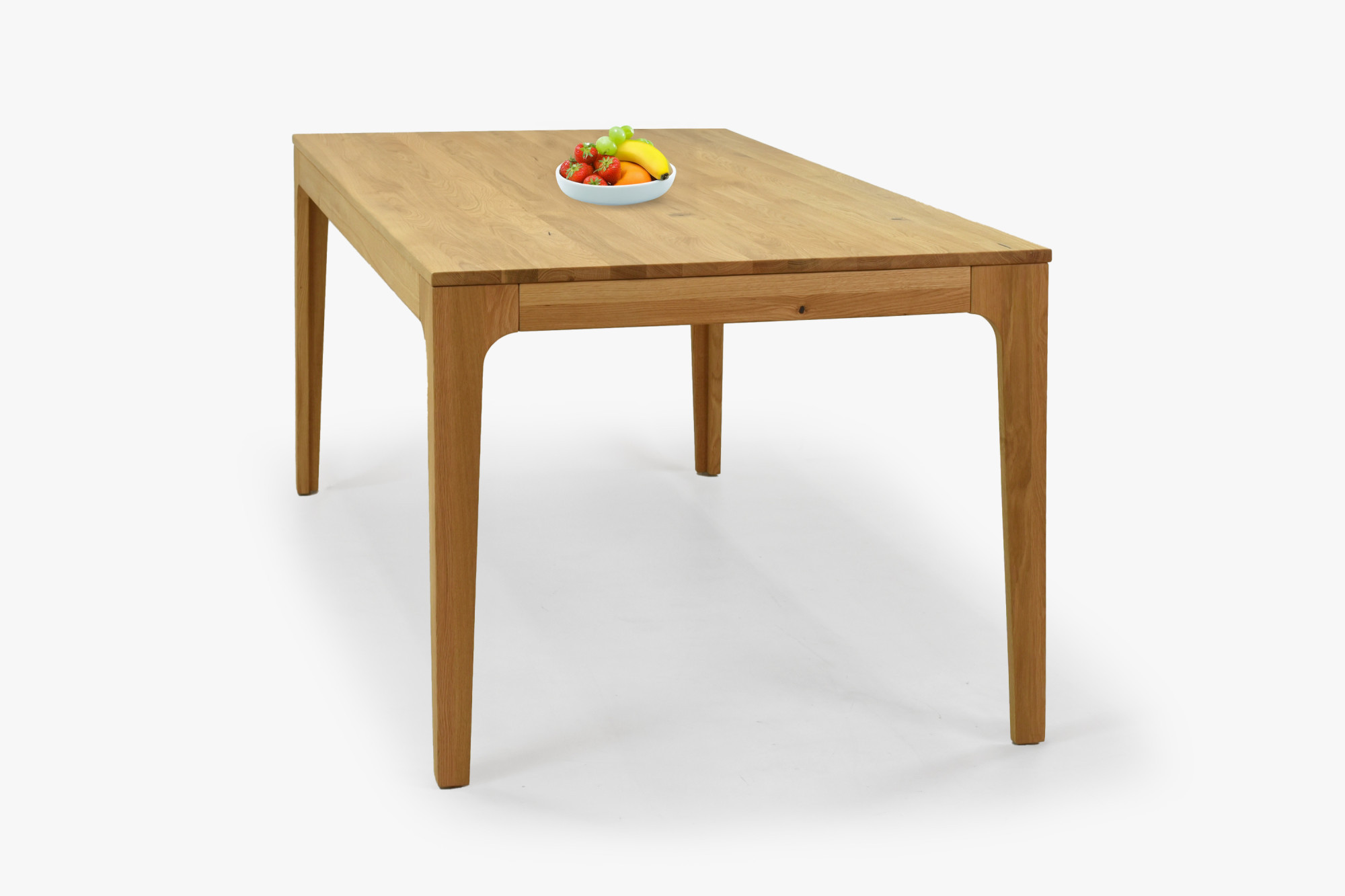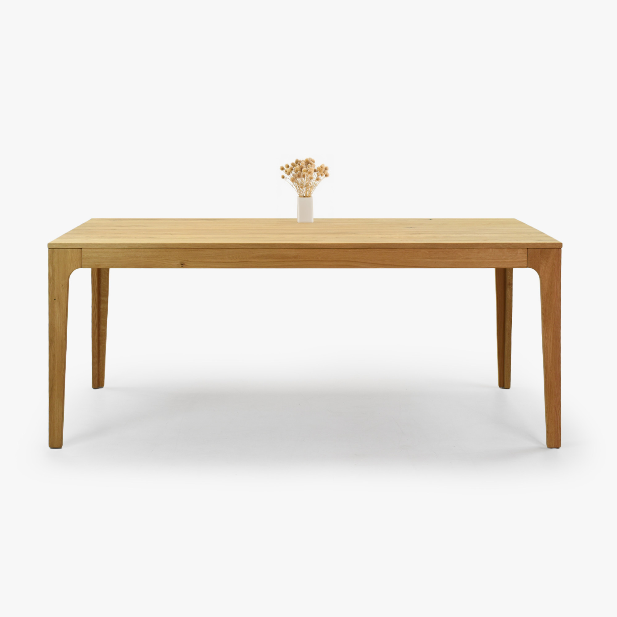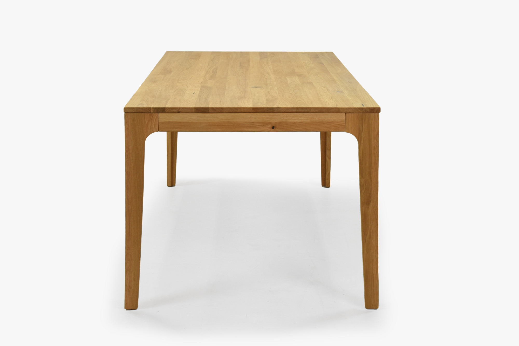 Die Oberflächenbehandlung mit dänischem Öl Woca Eiche Natural betont die Jahresstruktur und schützt das Holz vor täglicher Abnutzung, ohne seine natürliche Schönheit zu verdecken. Der Tisch wird zerlegt mit einer übersichtlichen Anleitung geliefert; die Montage dauert nur wenige Minuten und erfordert kein spezielles Werkzeug. FSC®-Zertifikat garantiert, dass die Eiche aus verantwortungsvoll bewirtschafteten Wäldern stammt. Dank klarer Linien und abgerundeter, abgeschrägter Beine fügt sich der Tisch perfekt in moderne sowie rustikale Innenräume ein und lässt sich leicht mit weiteren Produkten aus Eichenholz – von Bänken bis hin zu Kredenz – kombinieren. Außerdem kaufen Sie direkt vom Hersteller zu einem fairen Preis.