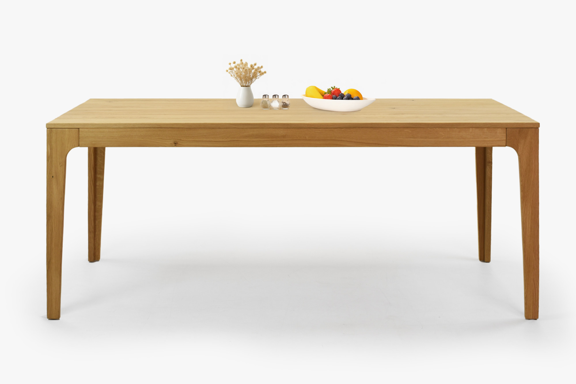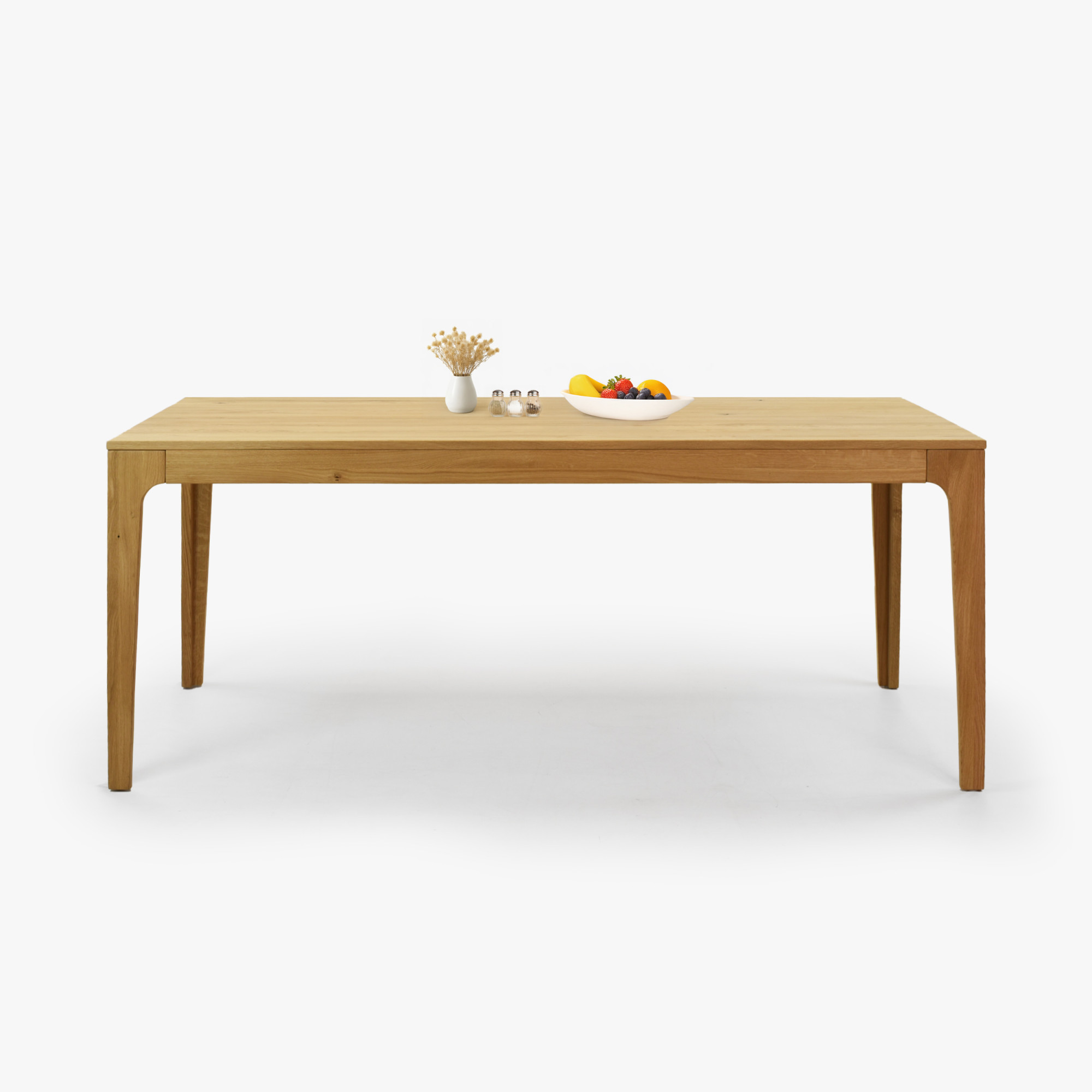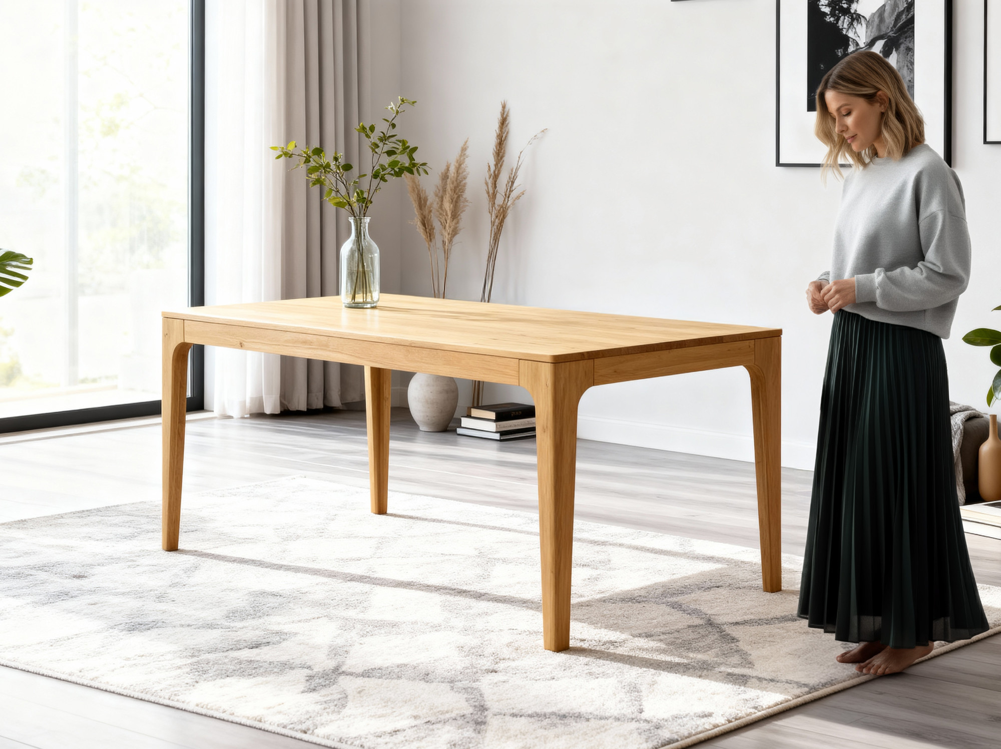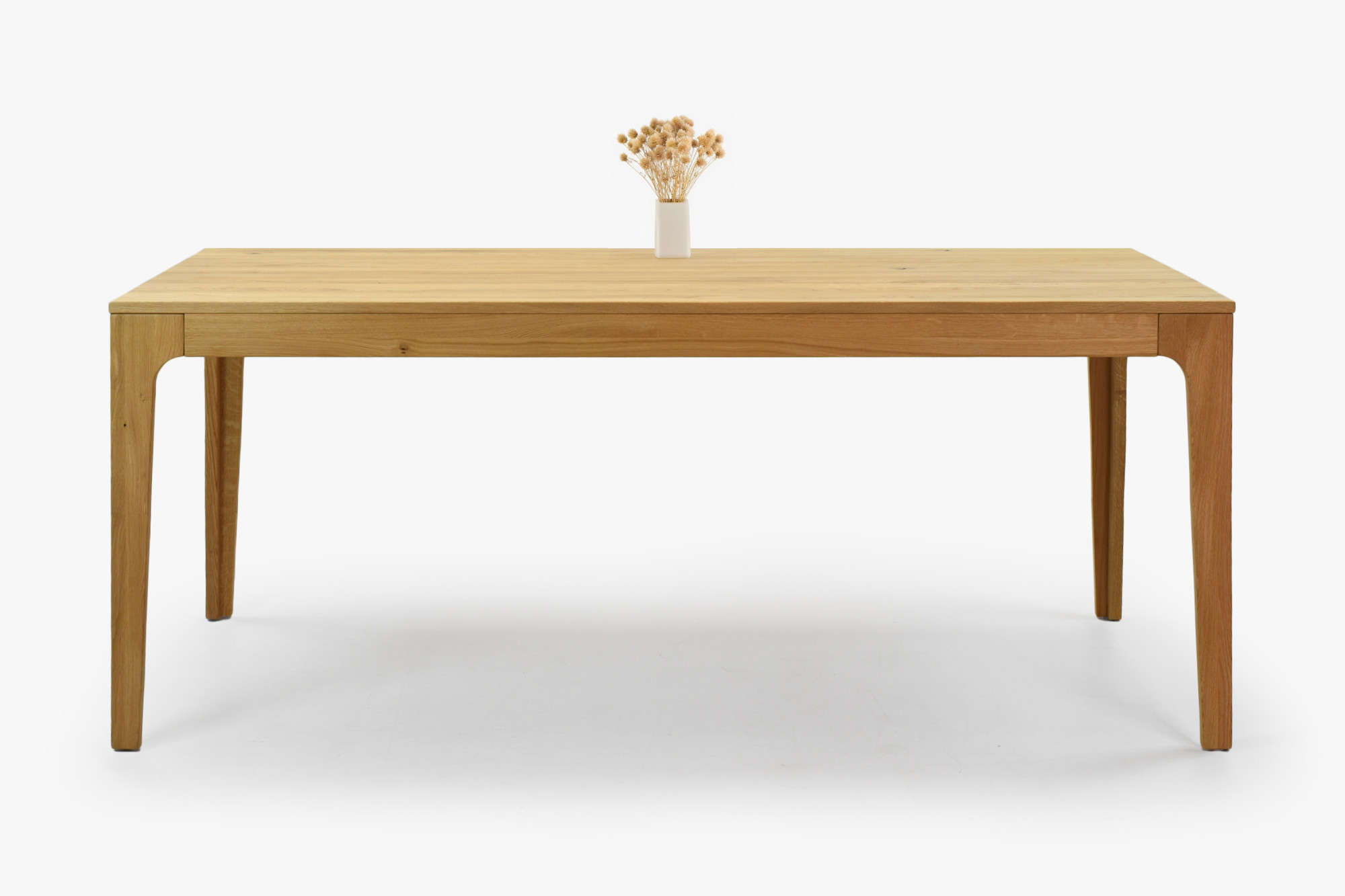 Die Oberflächenbehandlung mit dänischem Öl Woca Eiche Natural betont die Jahresstruktur und schützt das Holz vor täglicher Abnutzung, ohne seine natürliche Schönheit zu verdecken. Der Tisch wird zerlegt mit einer übersichtlichen Anleitung geliefert; die Montage dauert nur wenige Minuten und erfordert kein spezielles Werkzeug. FSC®-Zertifikat garantiert, dass die Eiche aus verantwortungsvoll bewirtschafteten Wäldern stammt. Dank klarer Linien und abgerundeter, abgeschrägter Beine fügt sich der Tisch perfekt in moderne sowie rustikale Innenräume ein und lässt sich leicht mit weiteren Produkten aus Eichenholz – von Bänken bis hin zu Kredenz – kombinieren. Außerdem kaufen Sie direkt vom Hersteller zu einem fairen Preis.